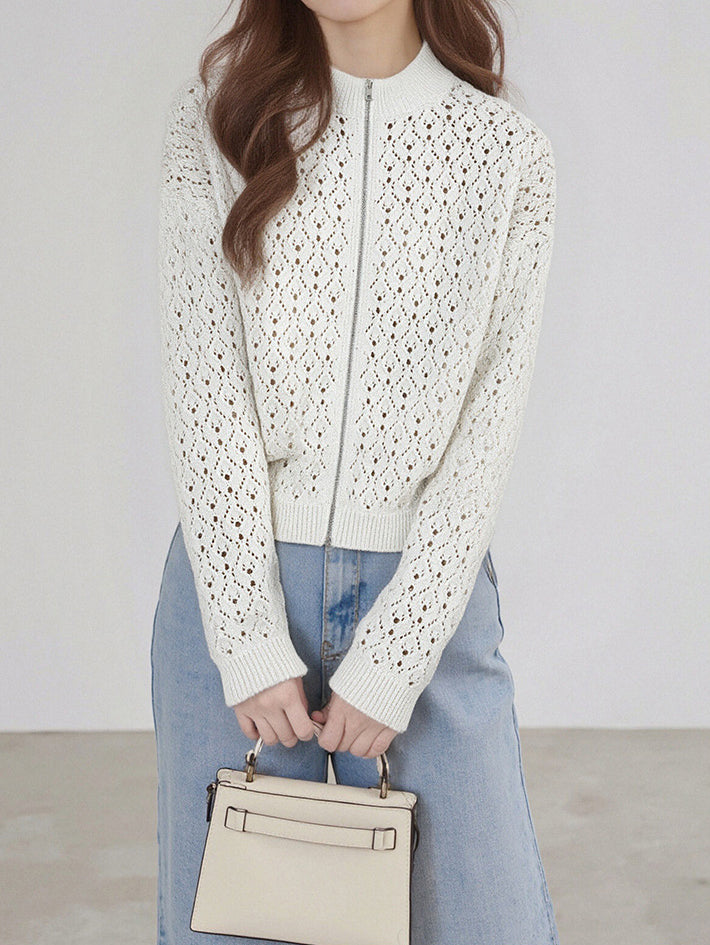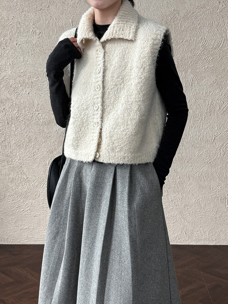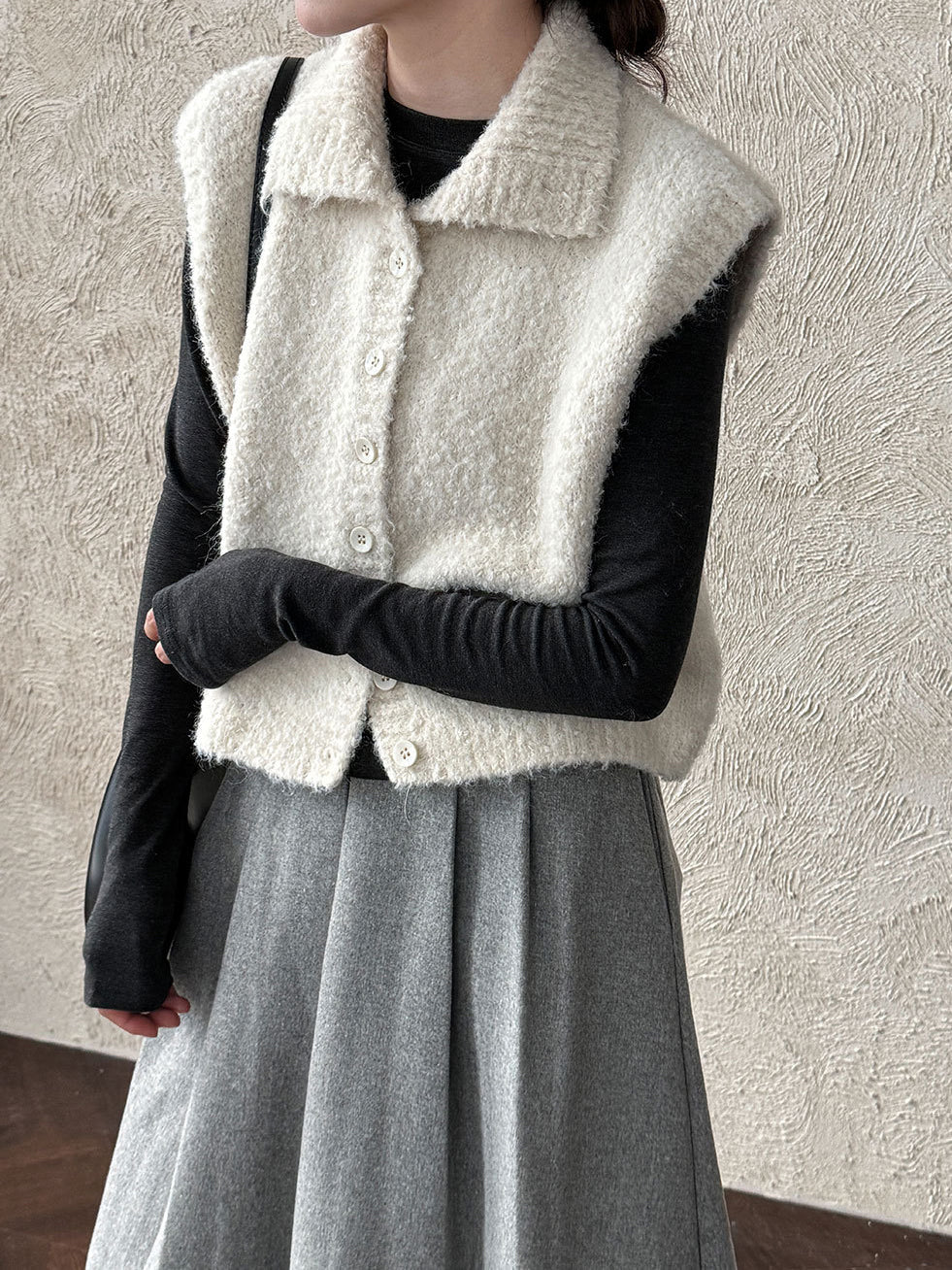 Feather yarn sleeveless cardigan with collar (4 colors)
