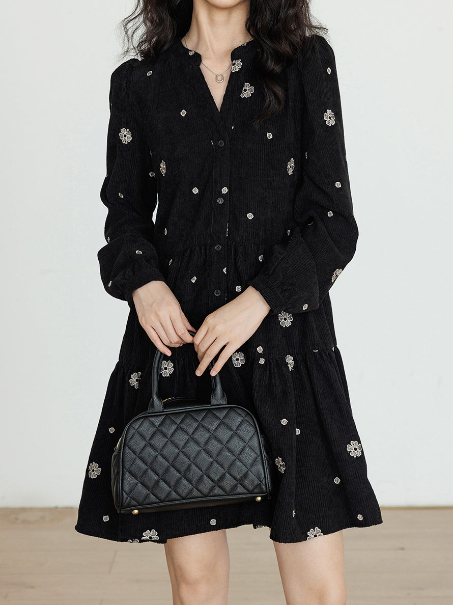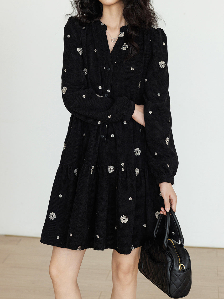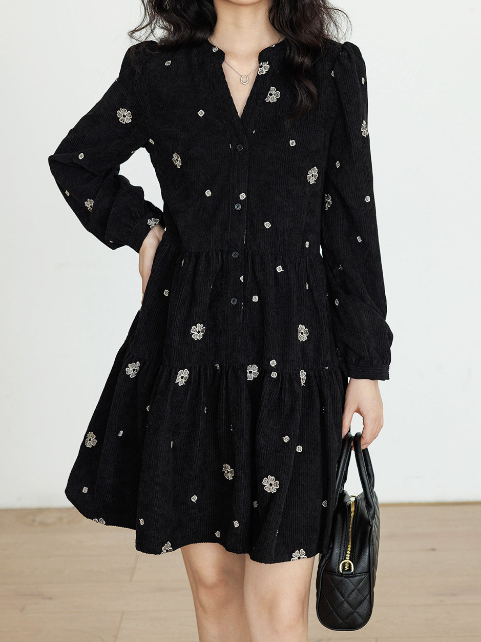 Embroidered Flower Skipper Collar Chiffon Mini Dress