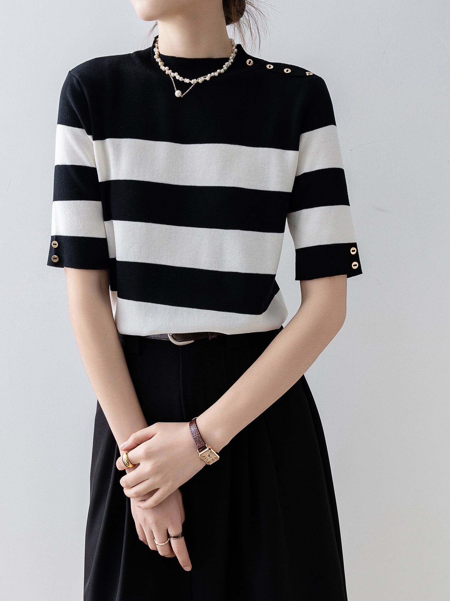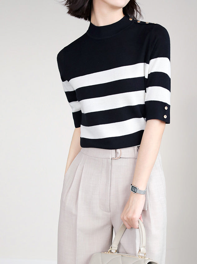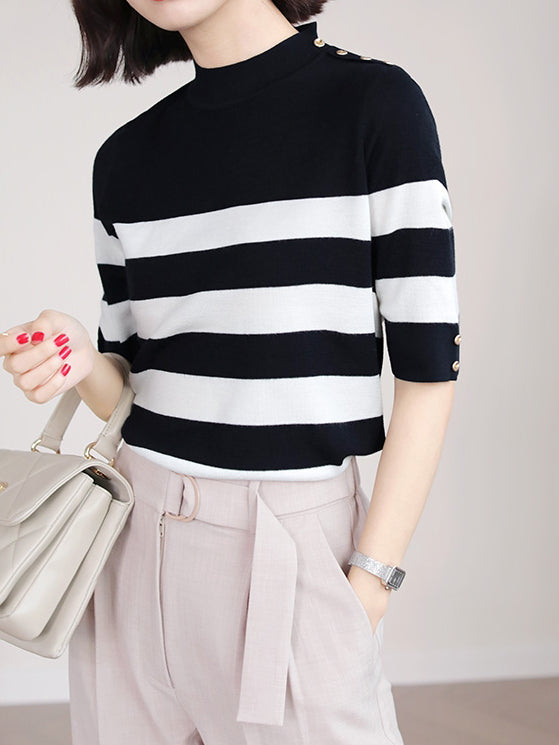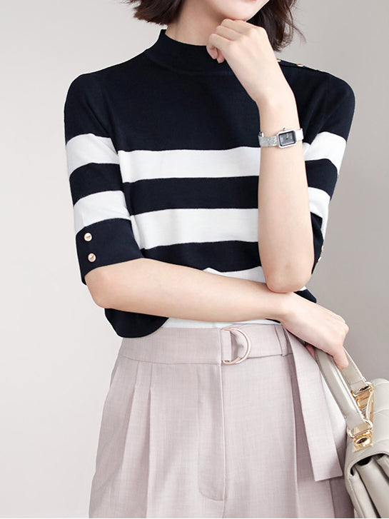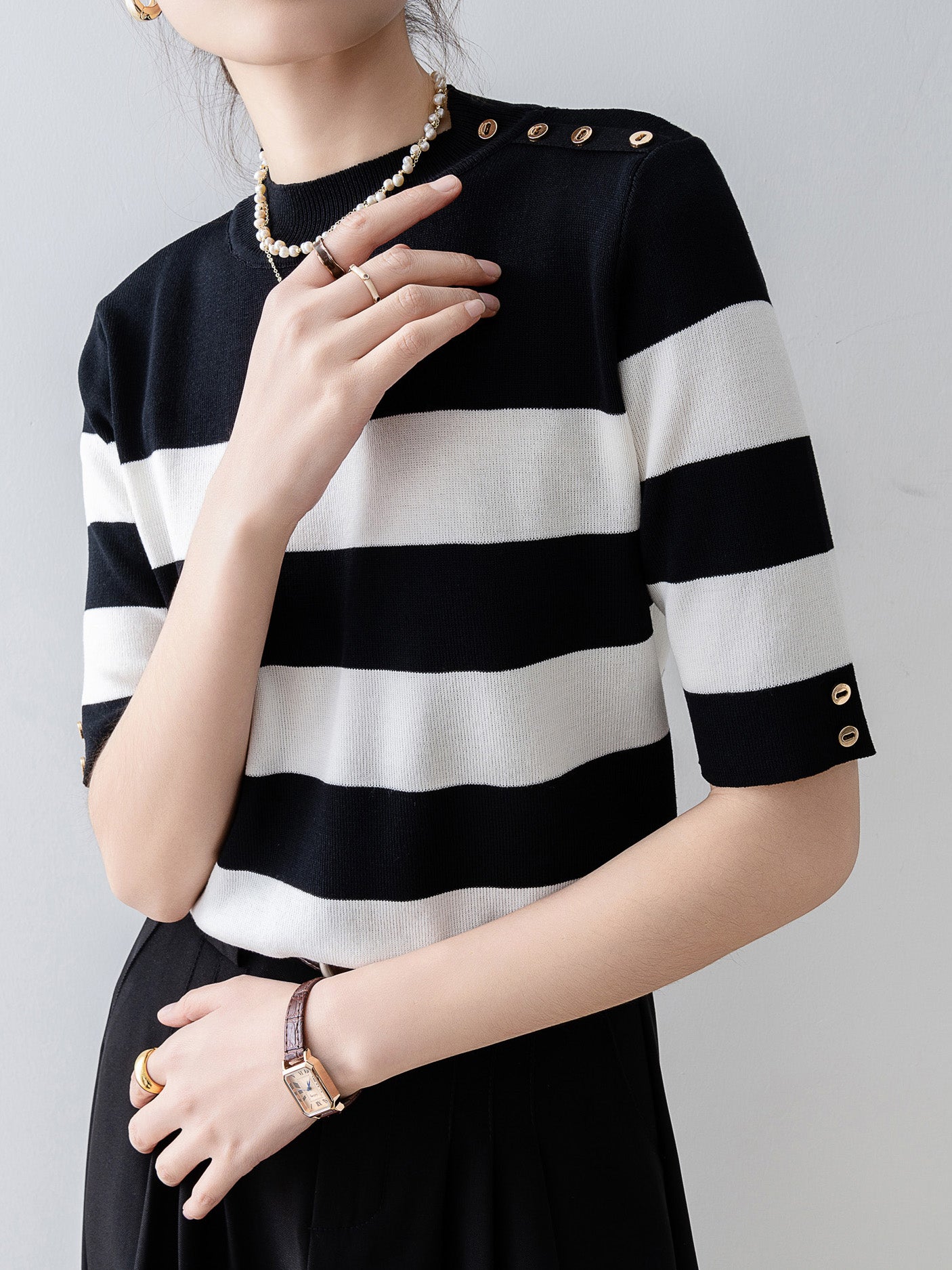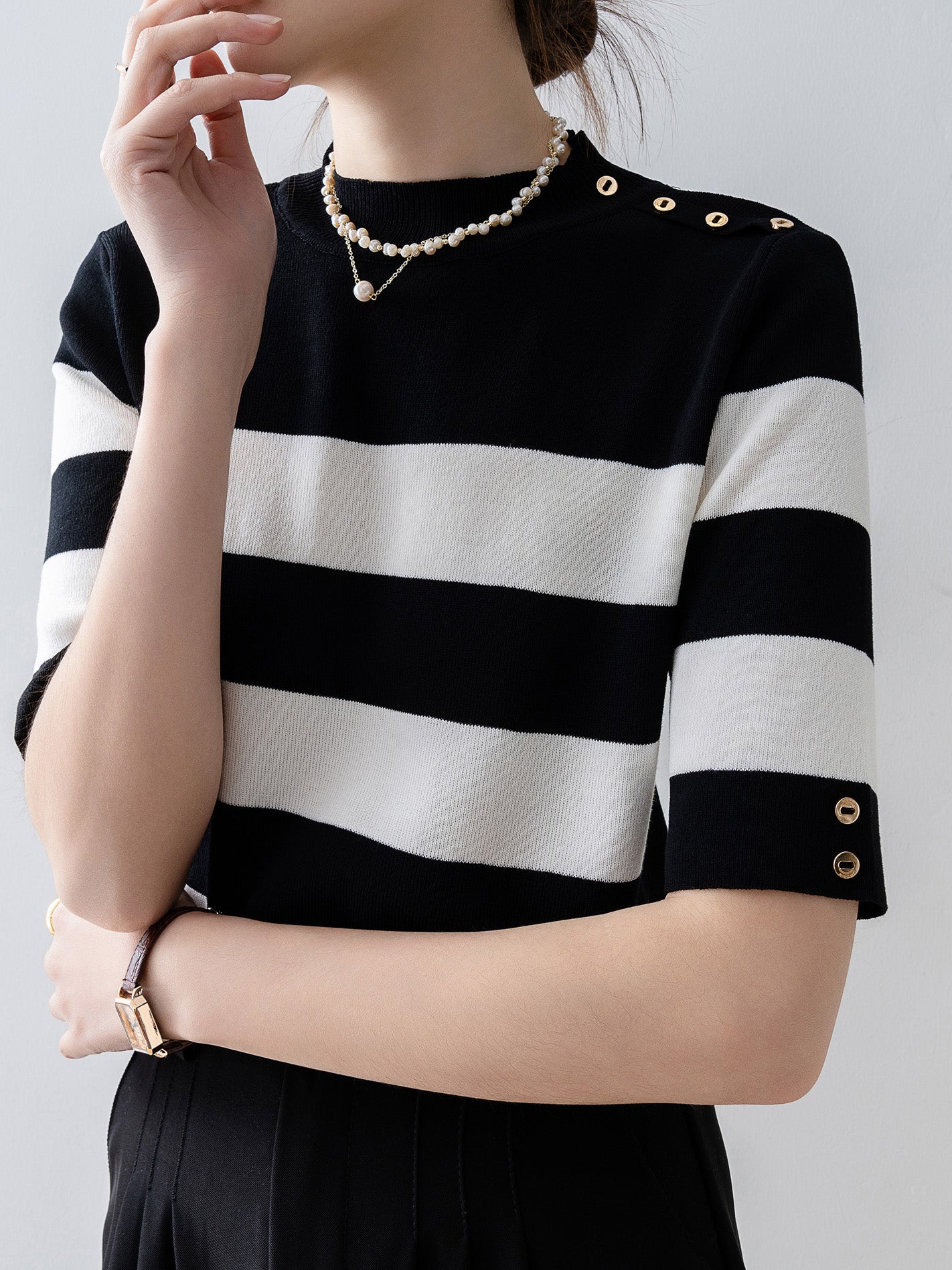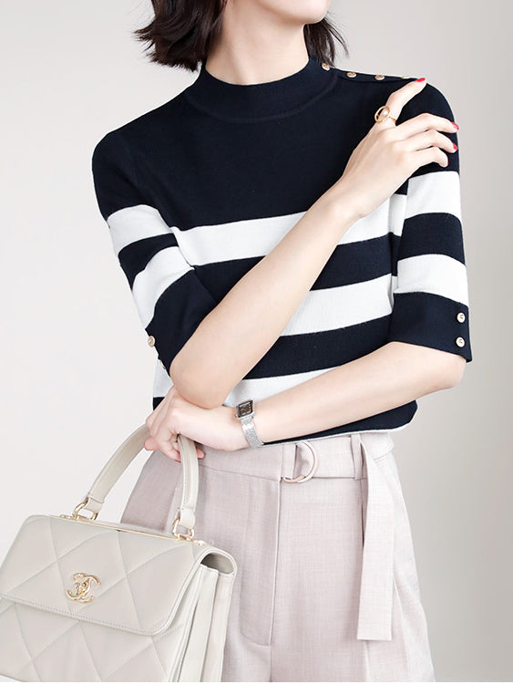 ☆The button-decorated 5-minute sleeve design creates a cute atmosphere that is characteristic of the brand.