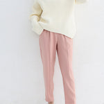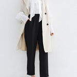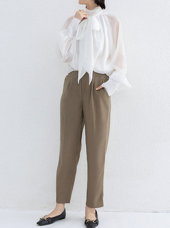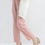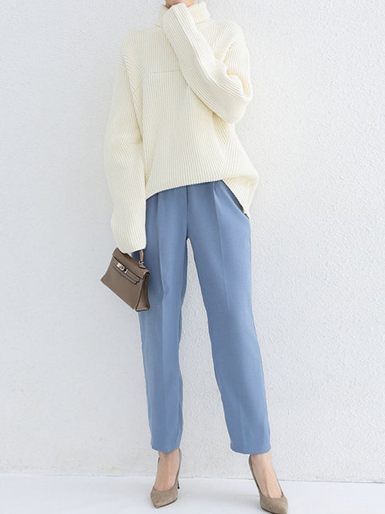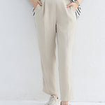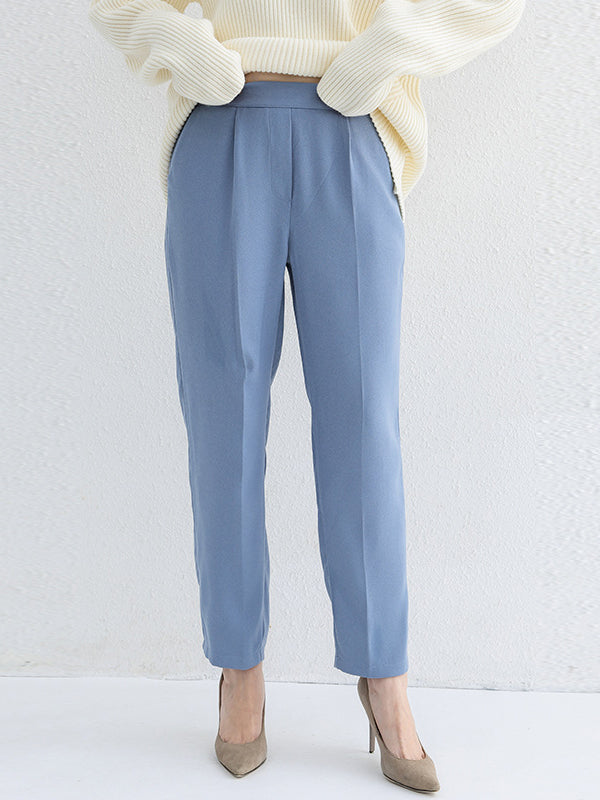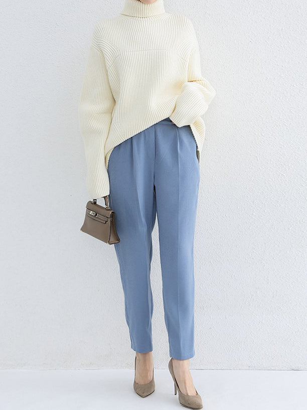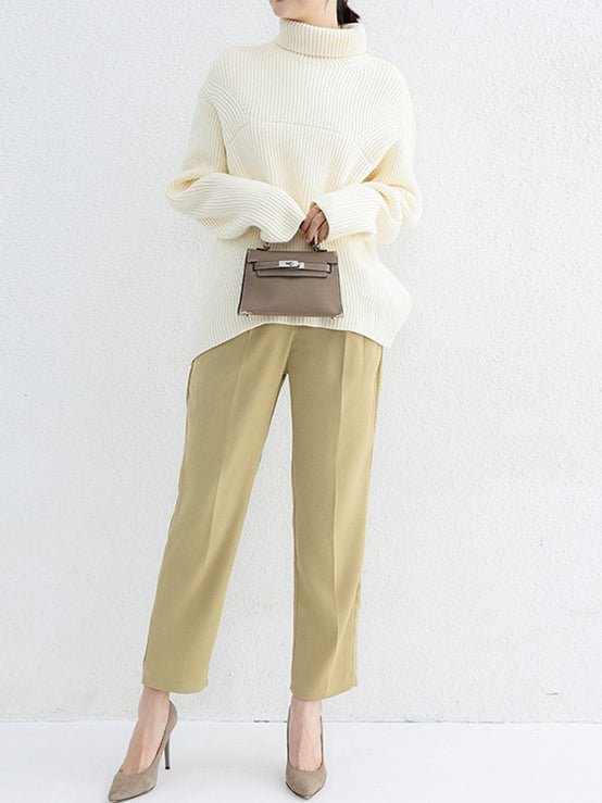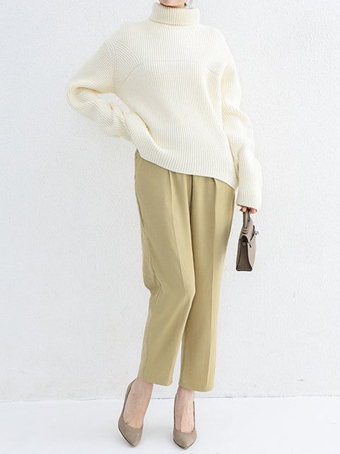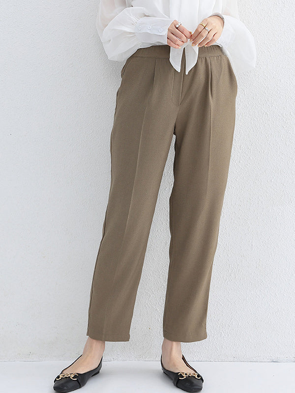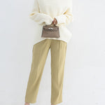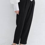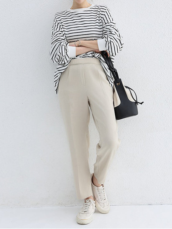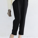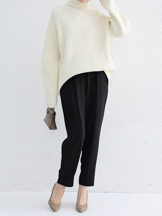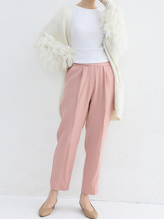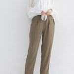 The design is neat, yet slightly loose, with a front tuck design that covers the waist and creates a beautiful leg silhouette.