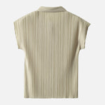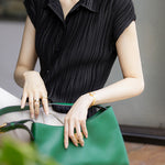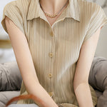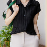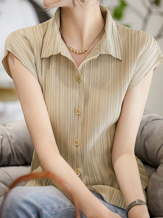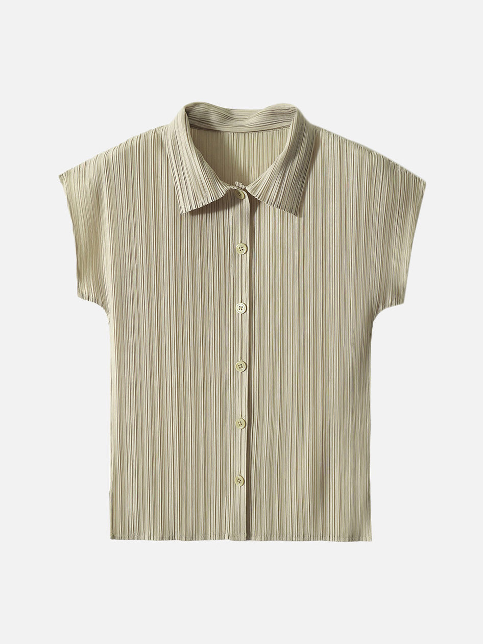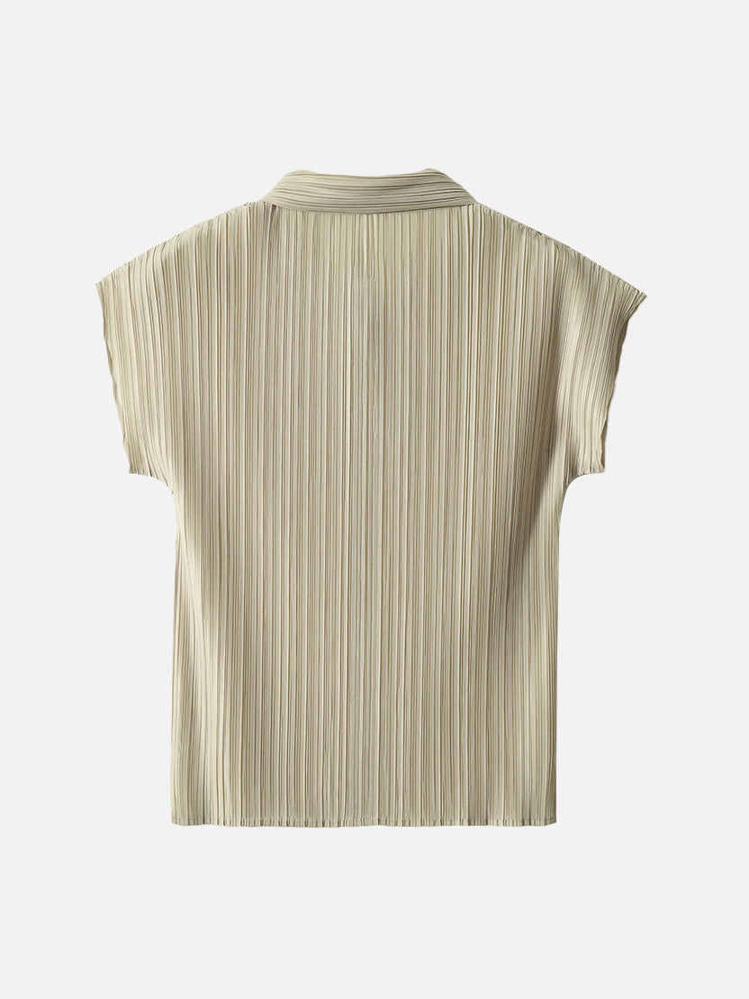 A pleated shirt that emphasizes vertical lines and creates a slimming effect.