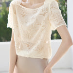 Fringe jacquard short-sleeved T-shirt