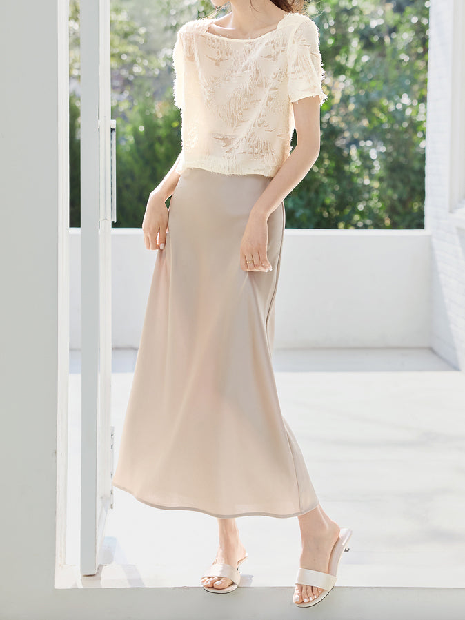 The bumpy, uneven texture of the puffed jacquard material creates an elegant atmosphere.