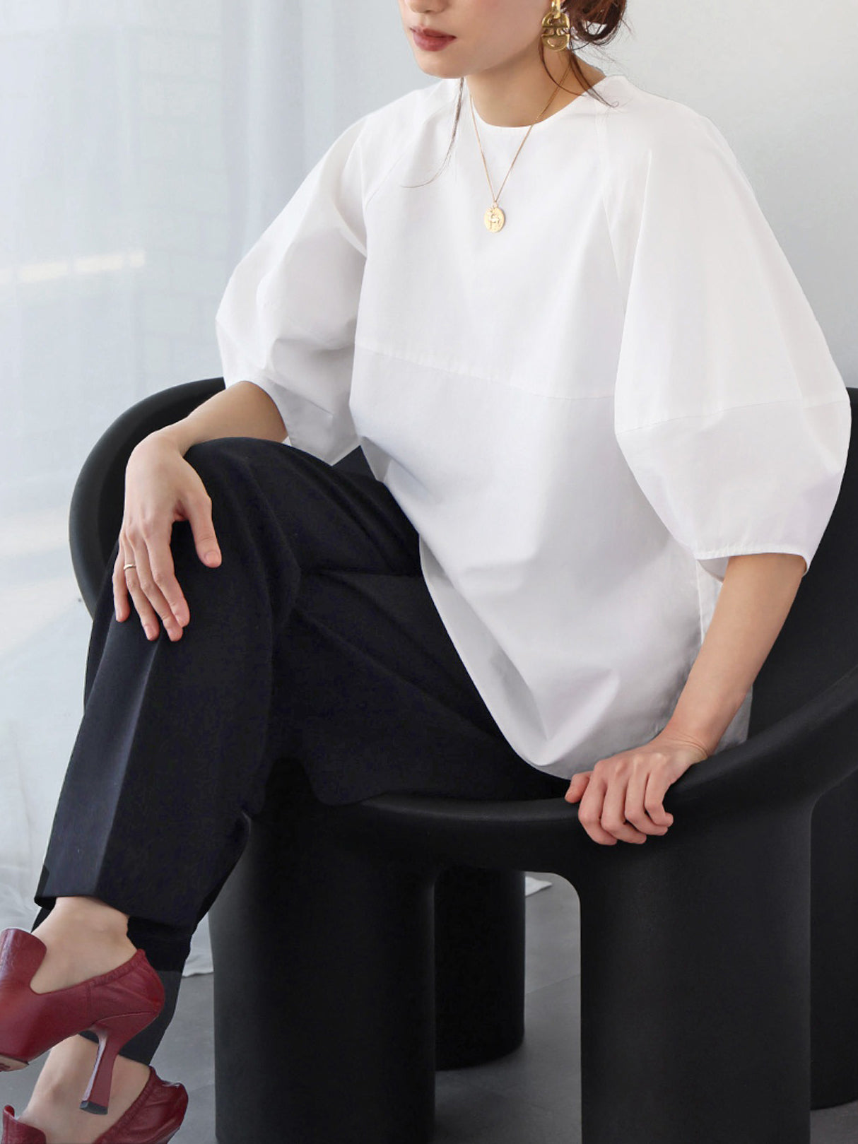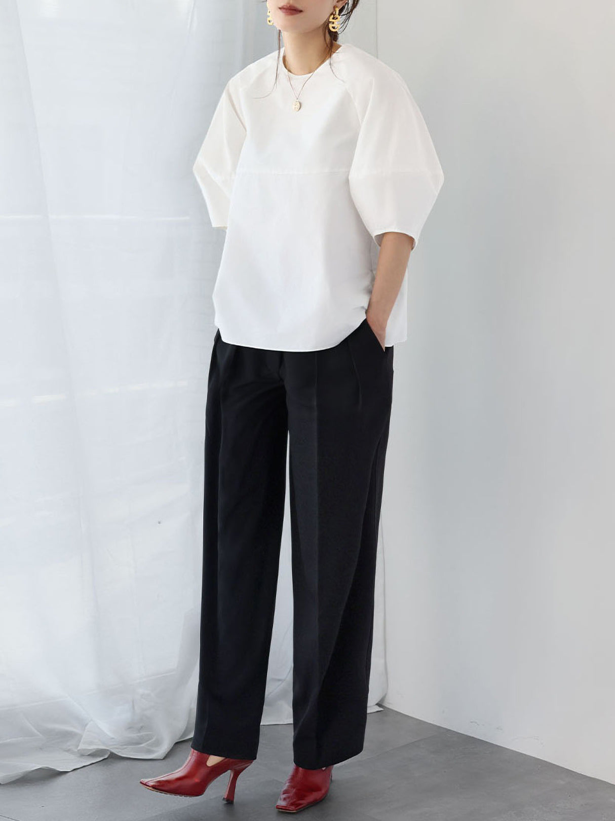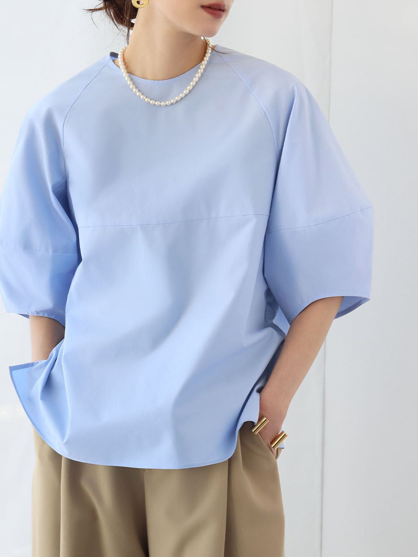 The sleeves are stylish, but the body is simple, so it can be worn with any bottoms and can be worn throughout the year.