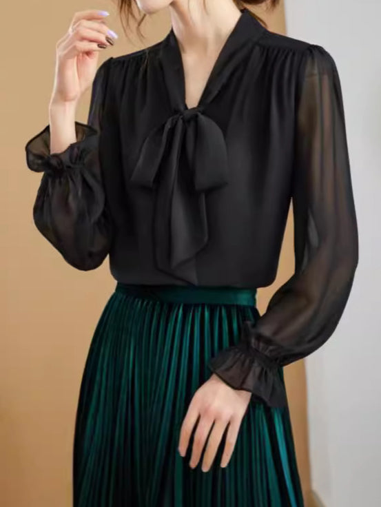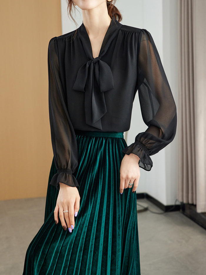A sheer top with just the right amount of transparency, giving it an elegant and mature look.
