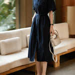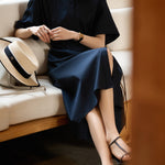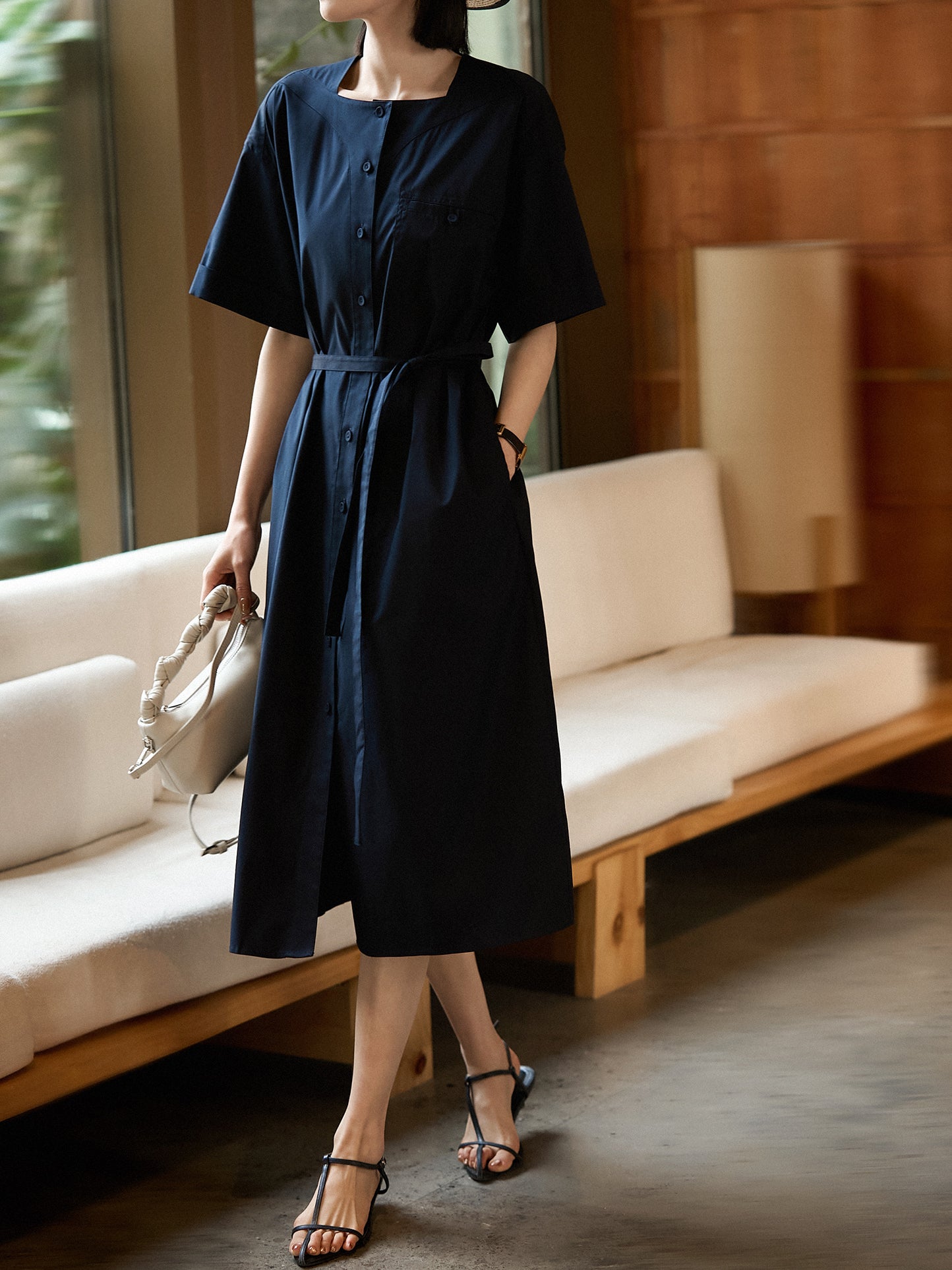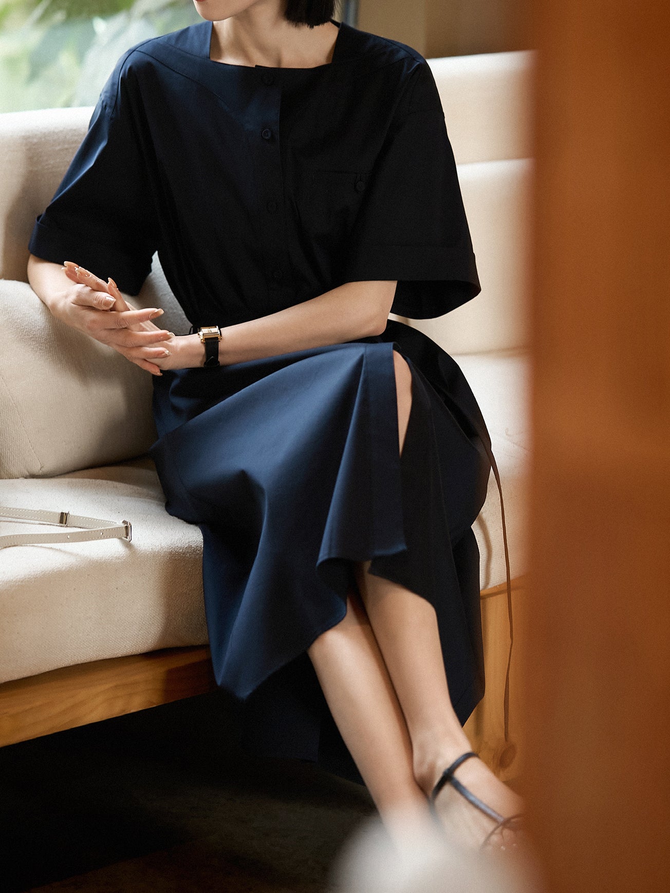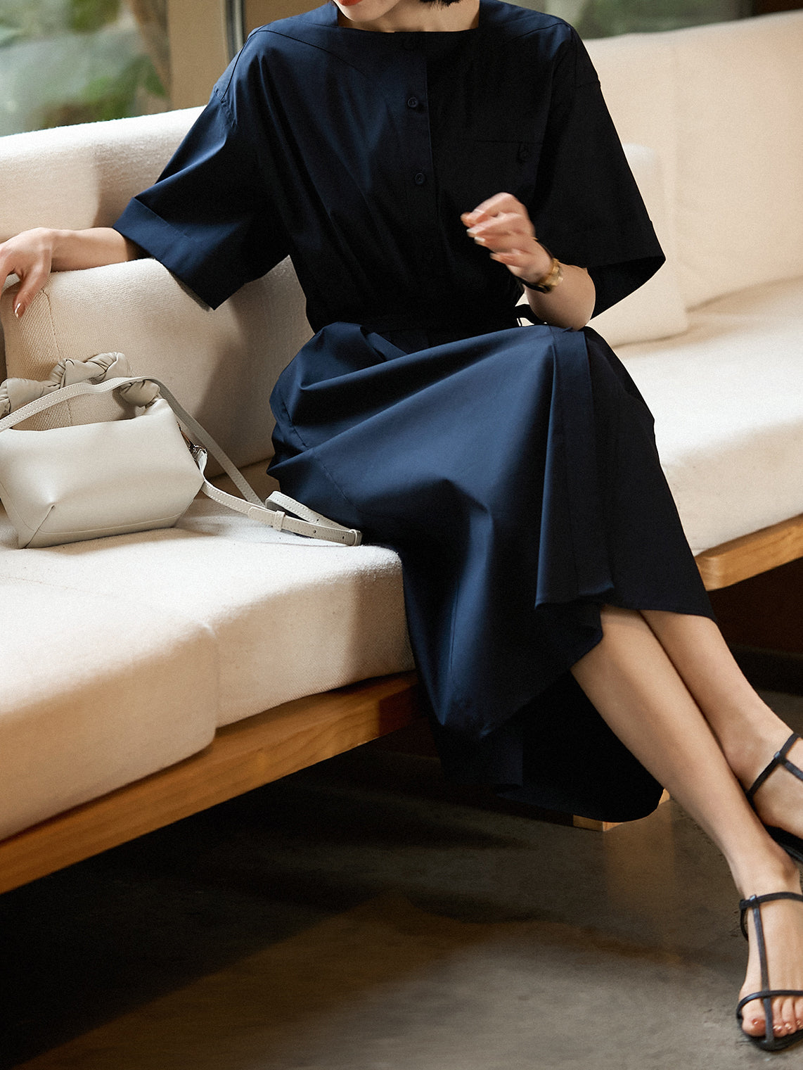 ☆The buckle belt made of the same fabric can be used to mark the waist, and the fit and flare silhouette also creates a slimming effect.