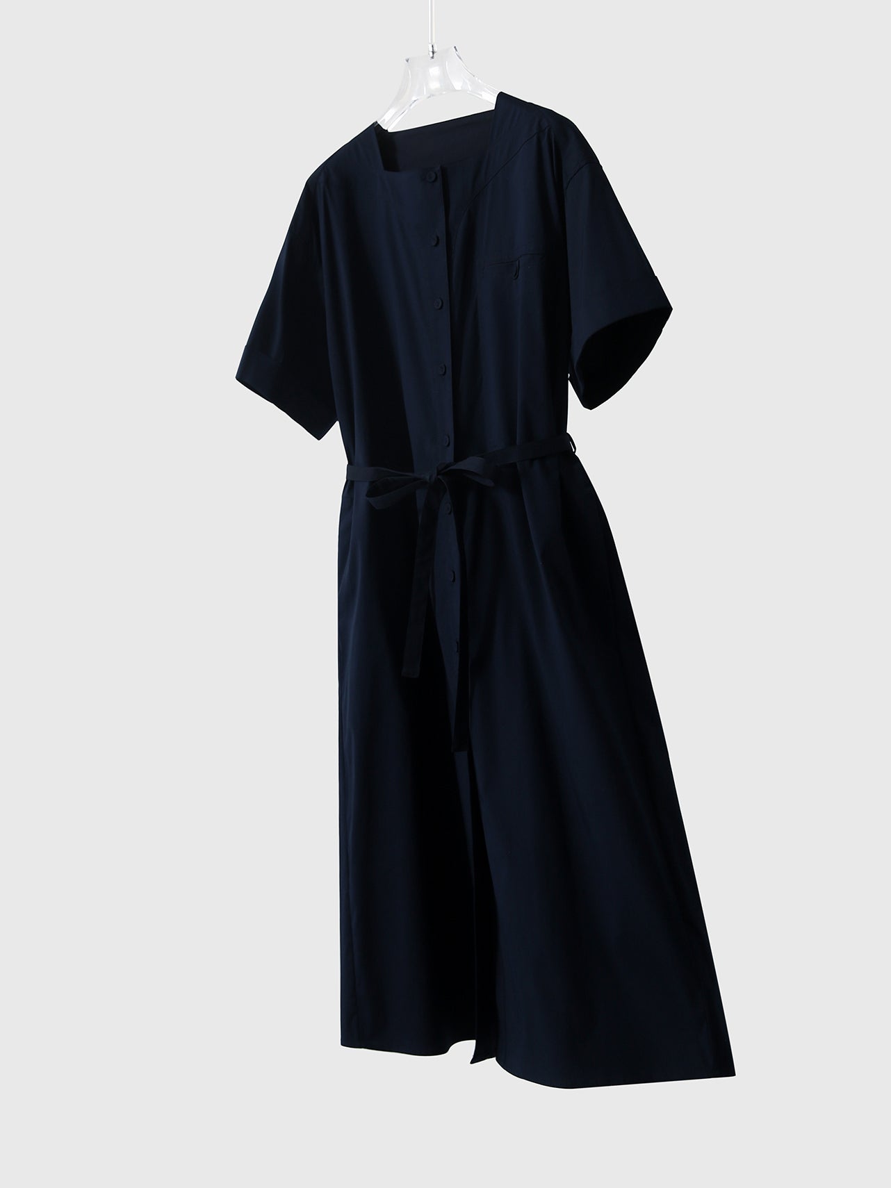 Although it is one tone, it is accented with buttons and a waist ribbon, giving it a glamorous feel.