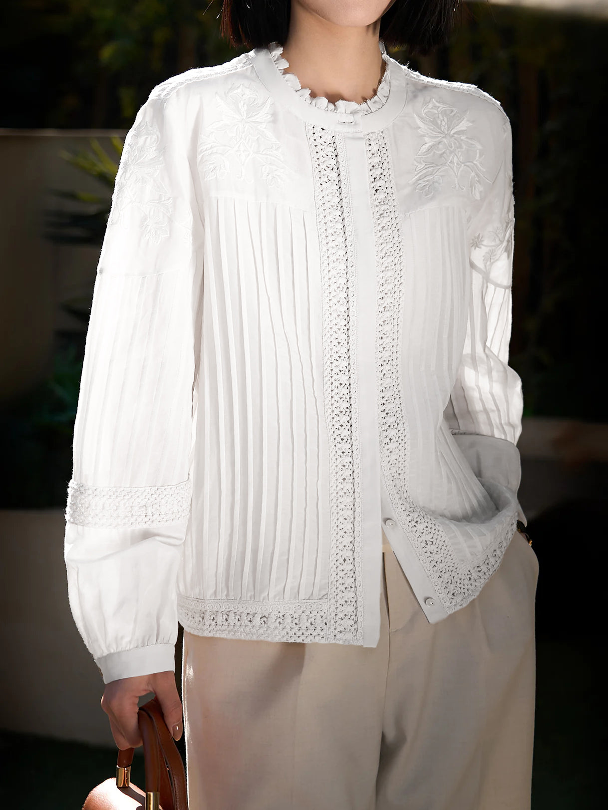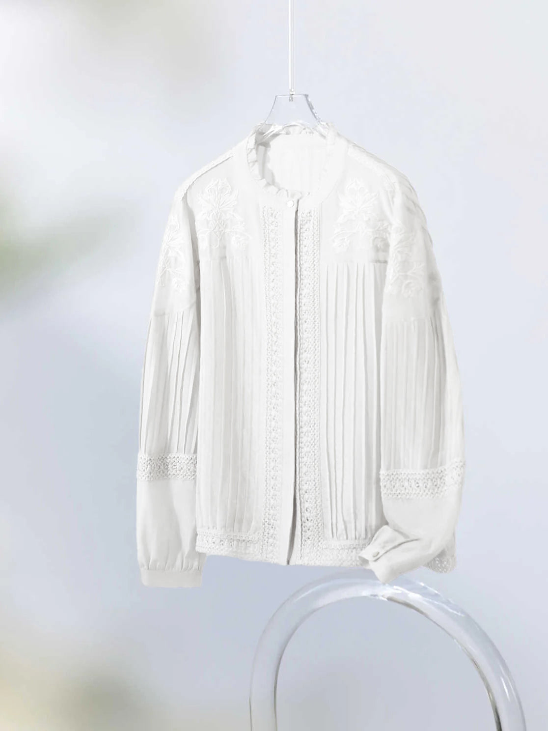 Embroidered pin tuck romantic lace blouse
