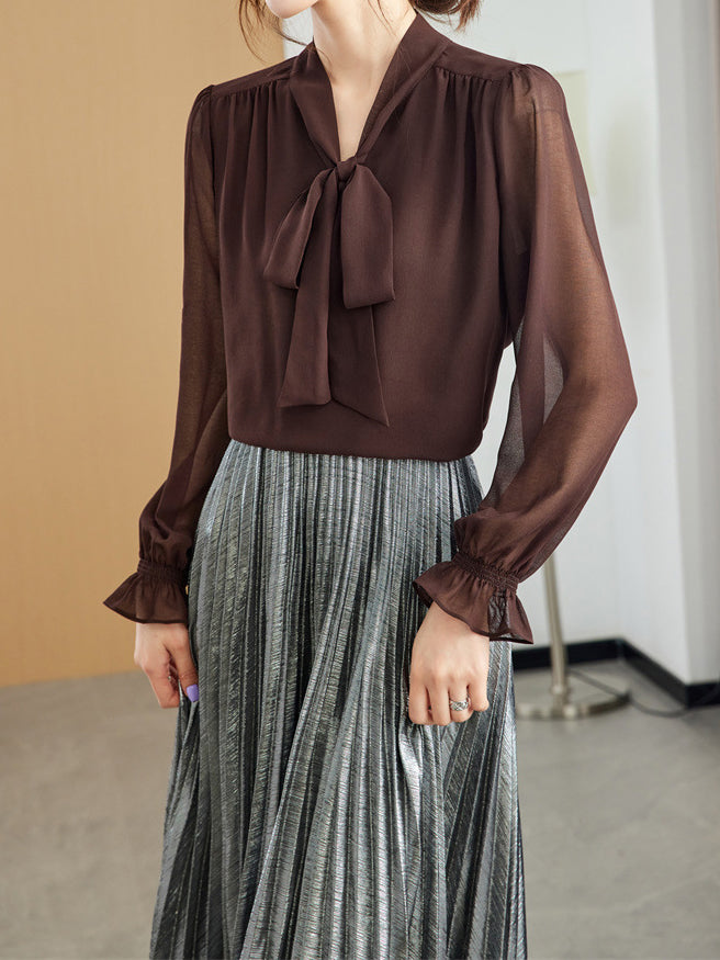 Sheer bowtie blouse in 2 colors