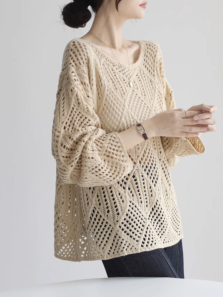 V-neck sheer crochet knit in 5 colors
