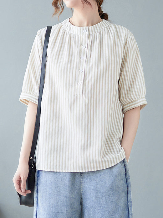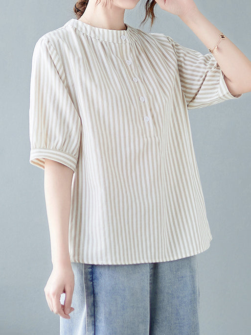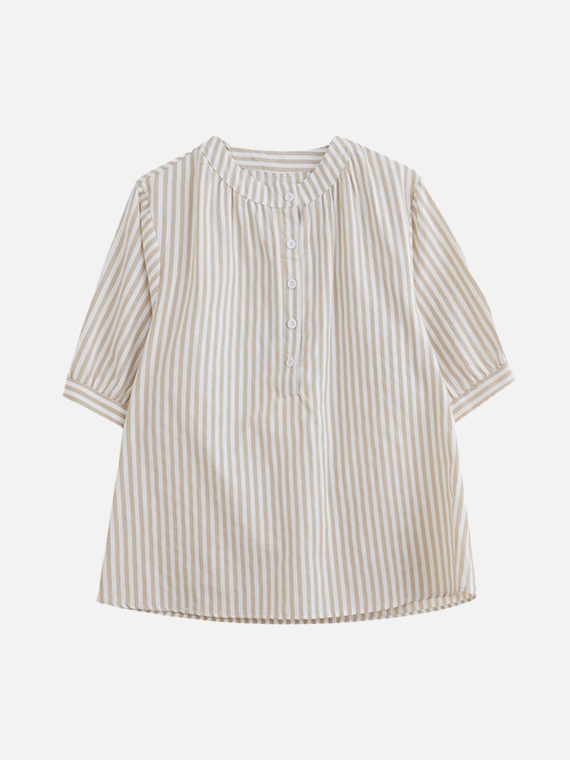 Band collar striped blouse in 3 colors