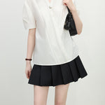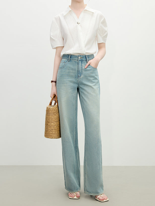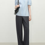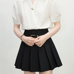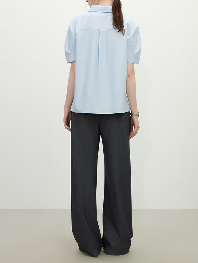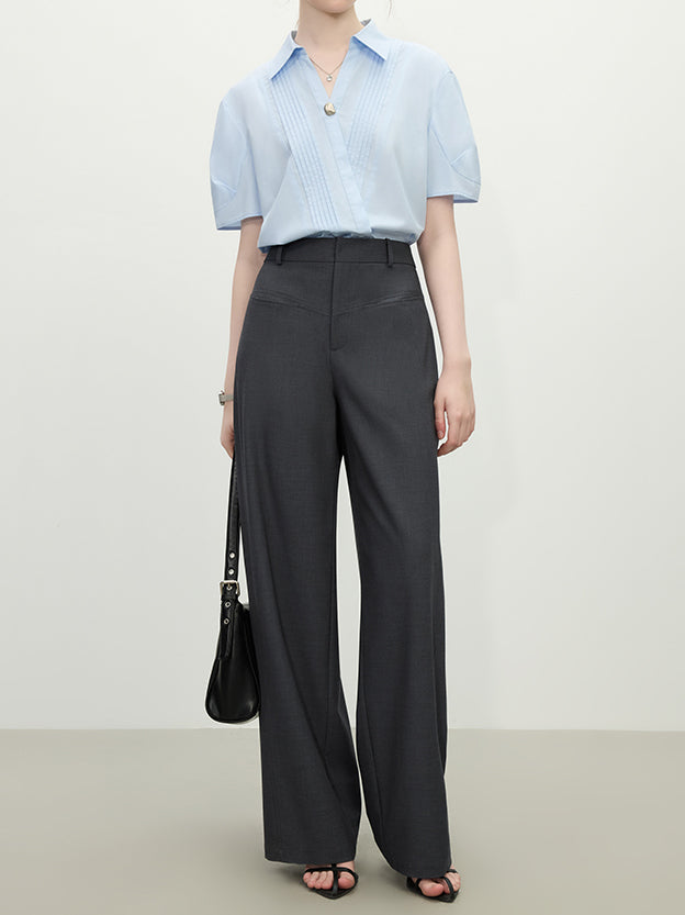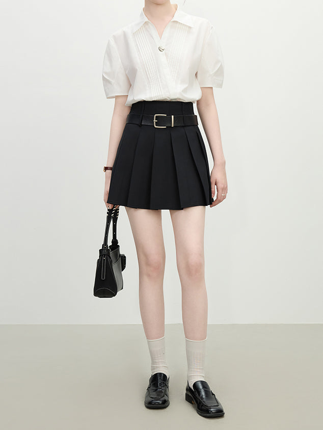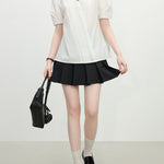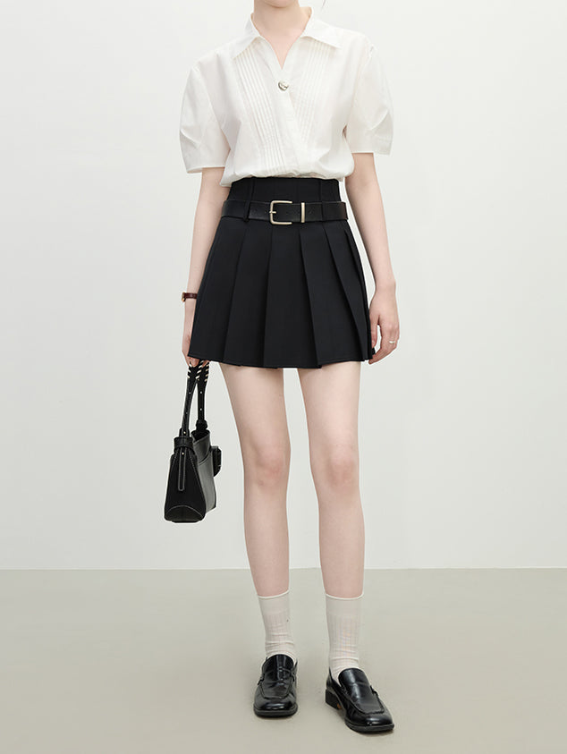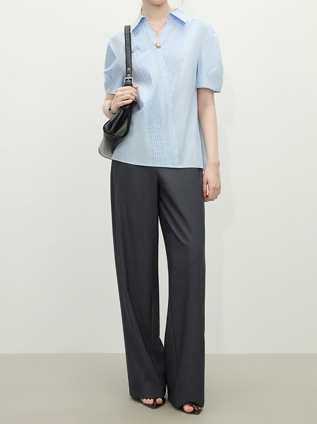 A puff sleeve blouse featuring delicate pin tucks and a cache-coeur design.