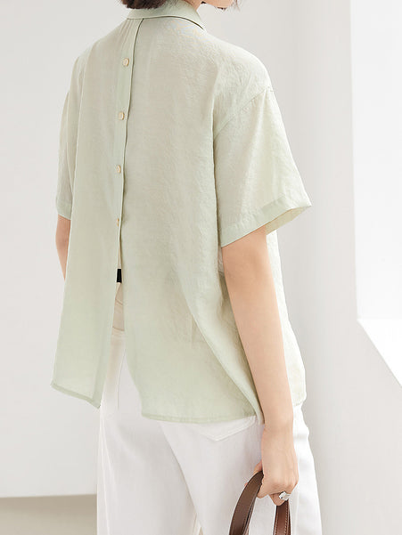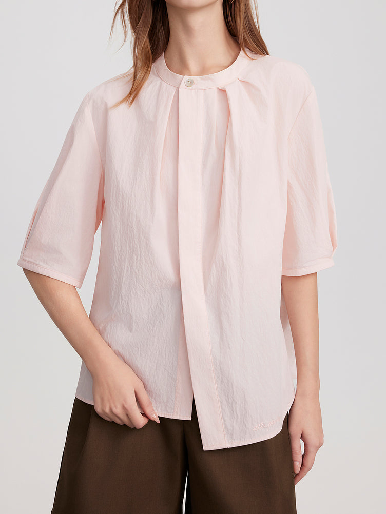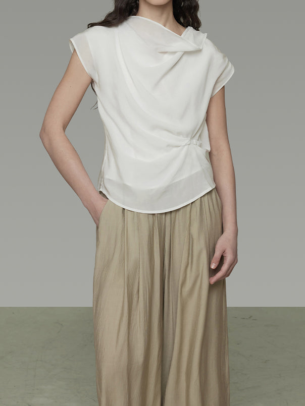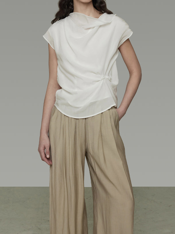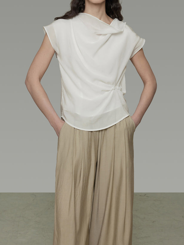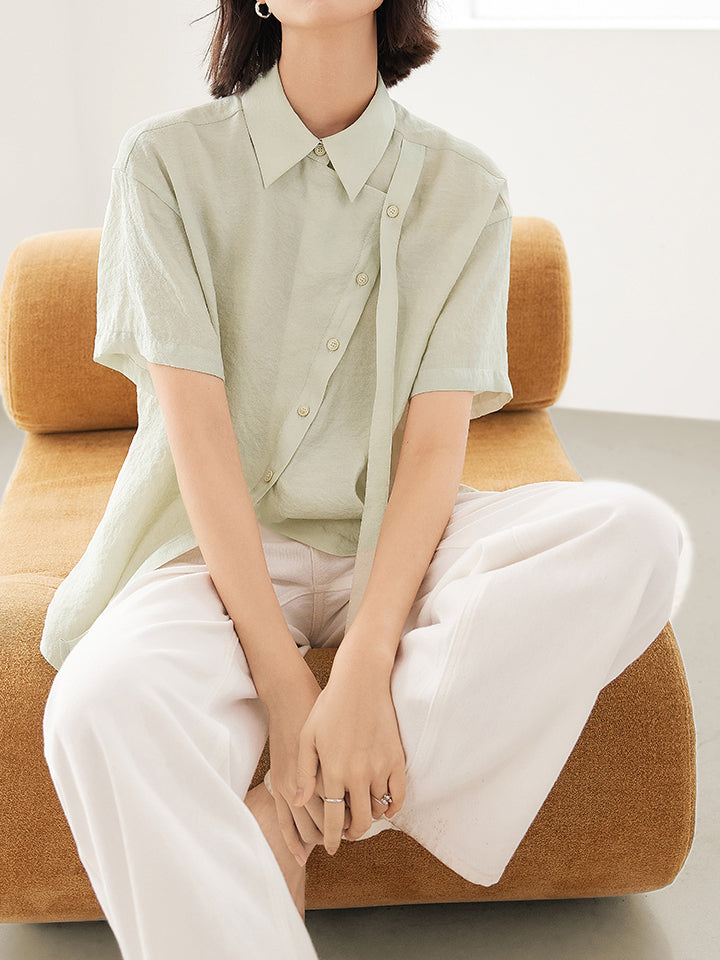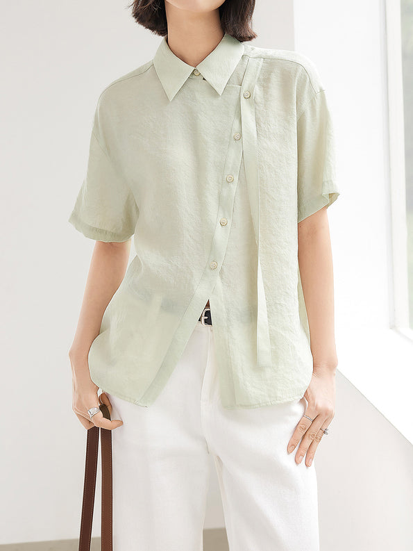 Front tuck asymmetric button ribbon shirt in 2 colors
