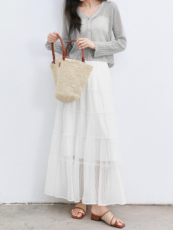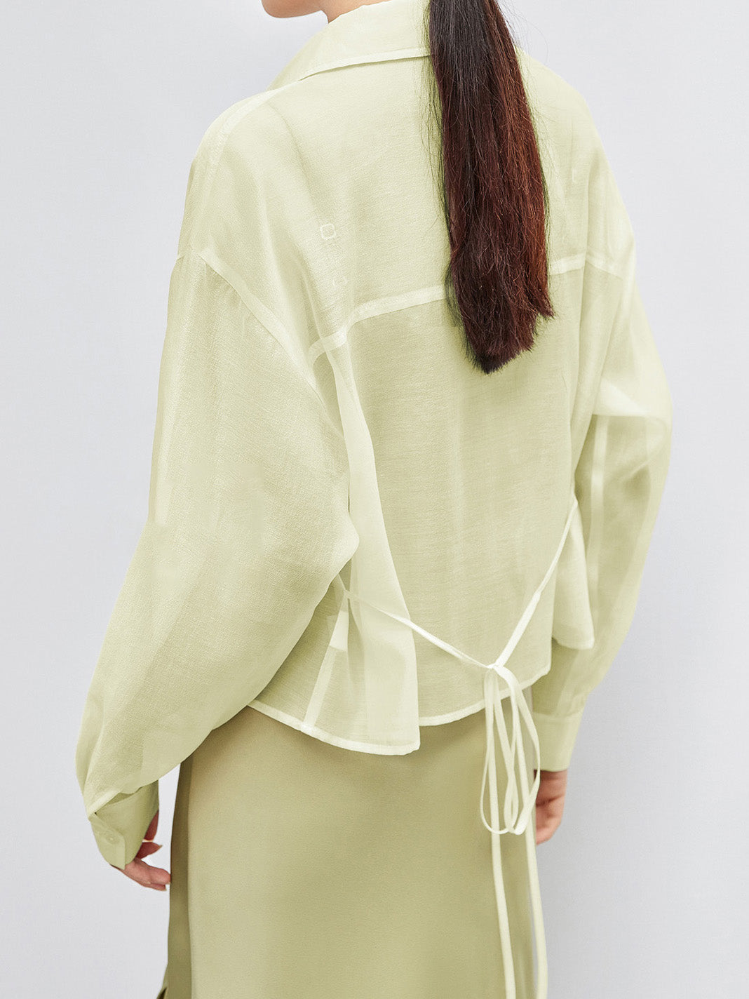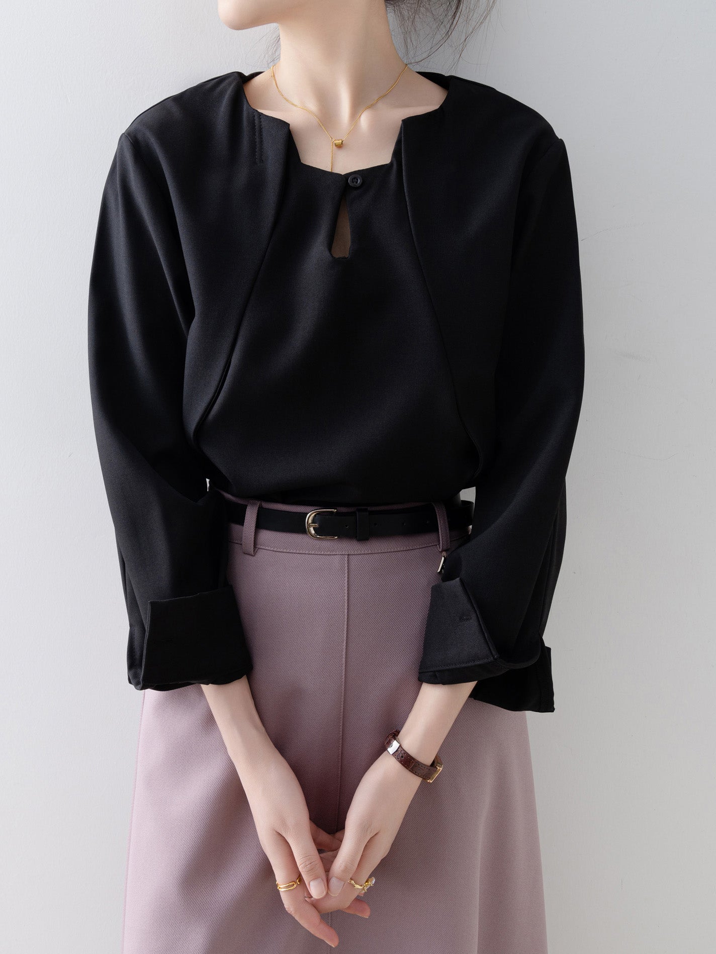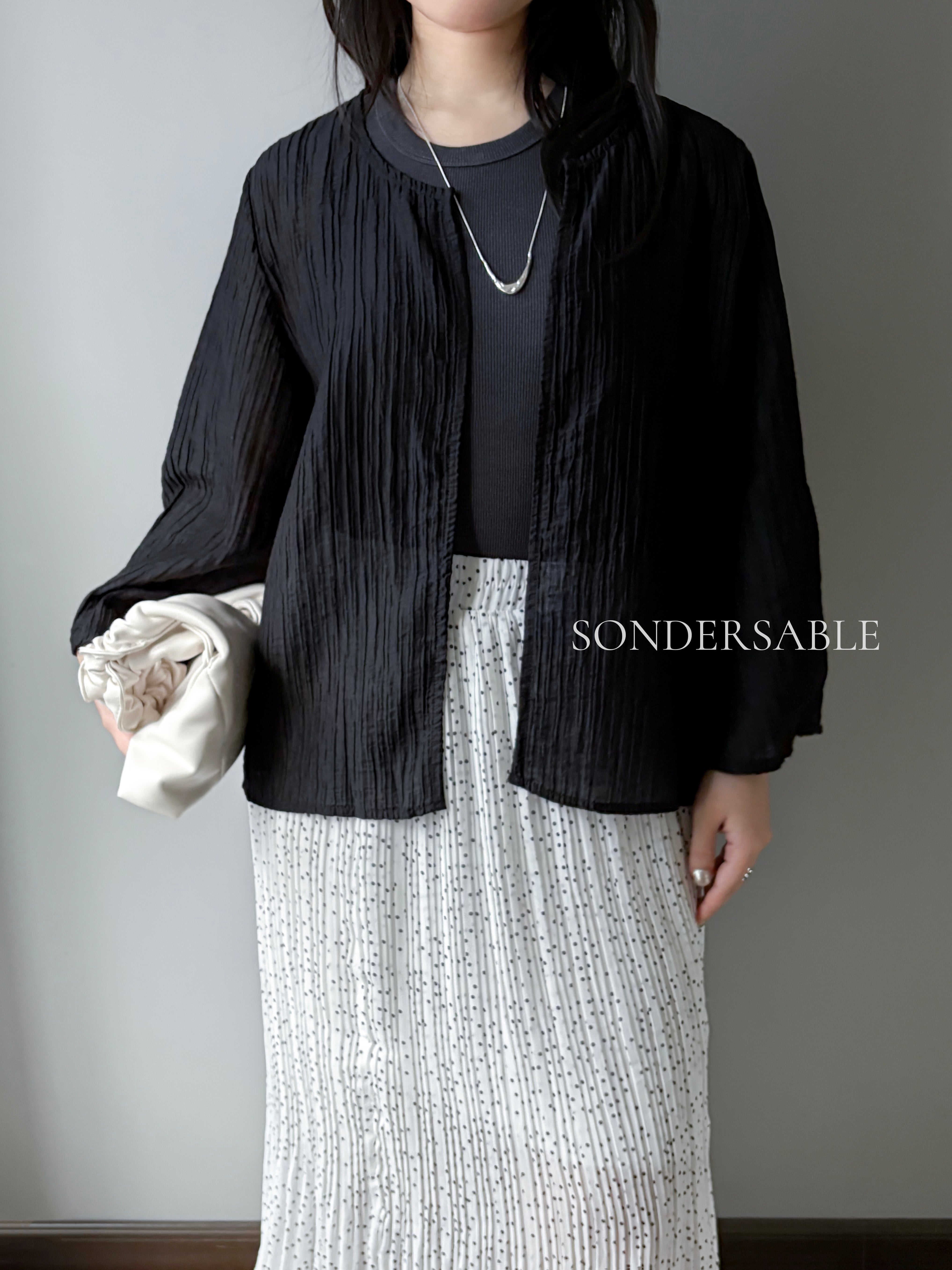 [New colors added] Sheer pin tuck wrap blouse in 4 colors