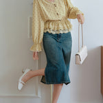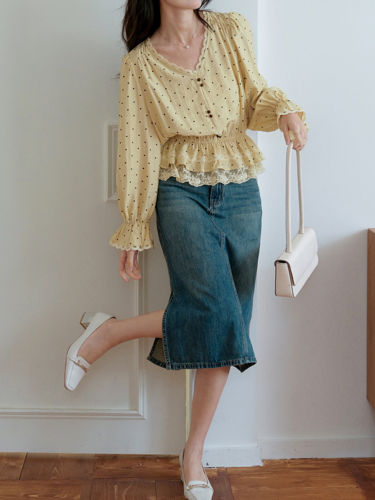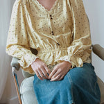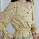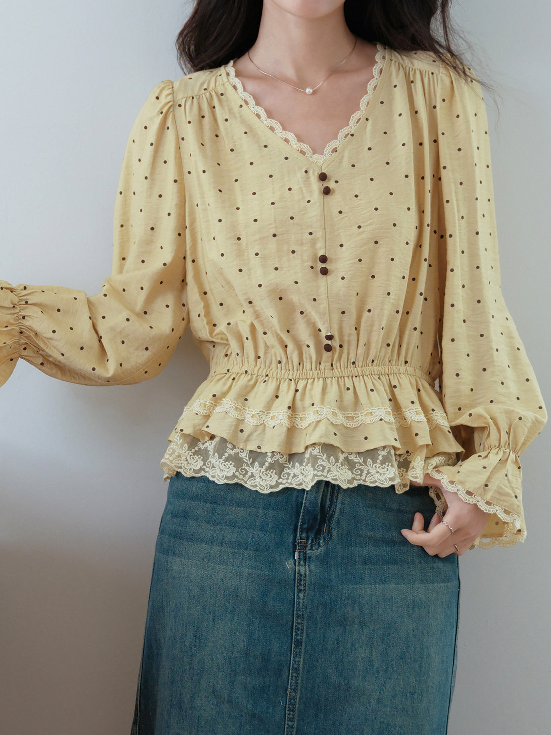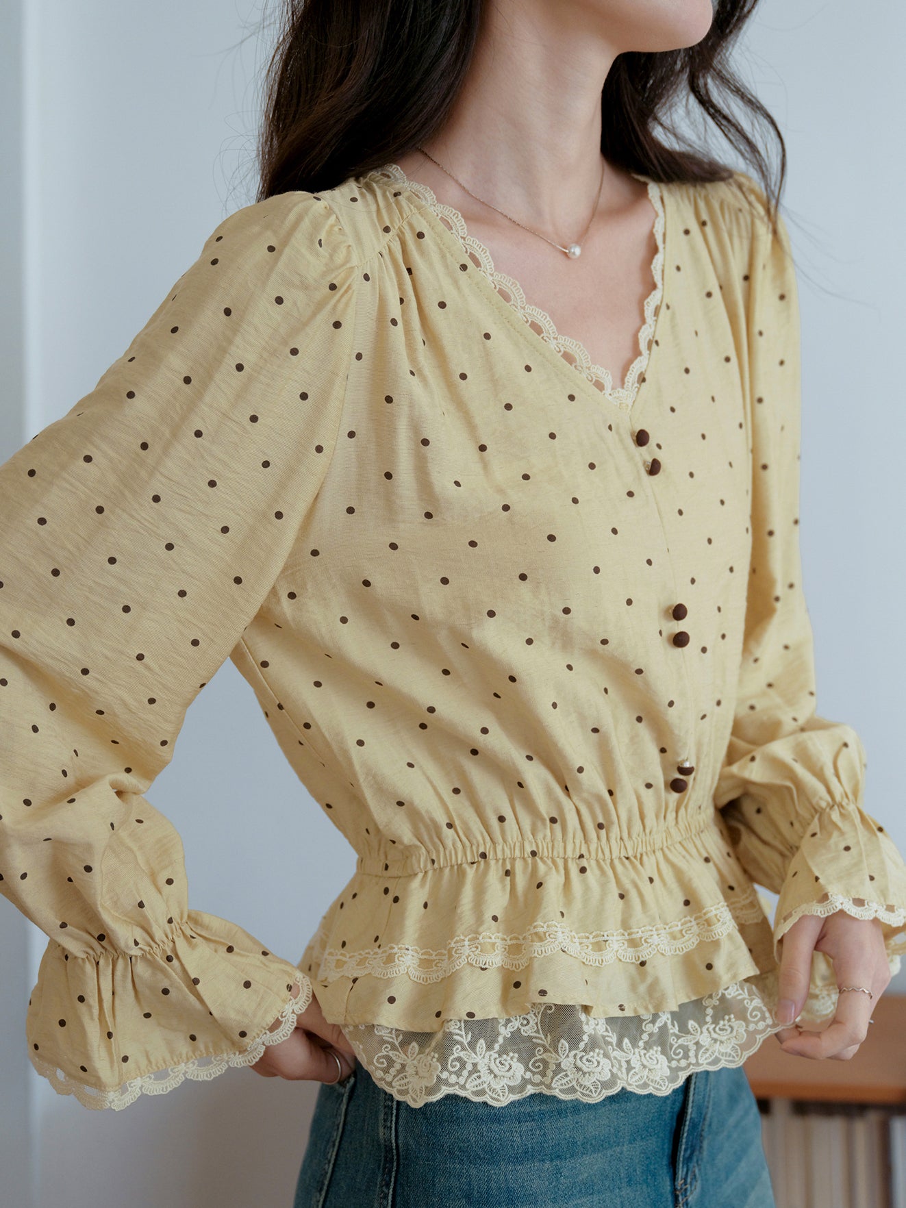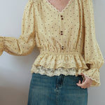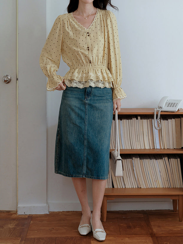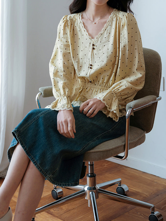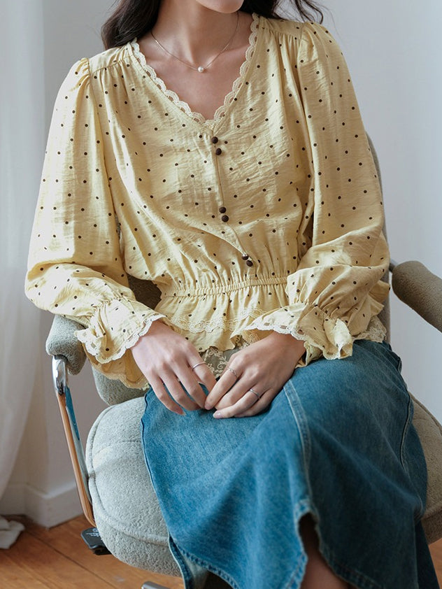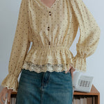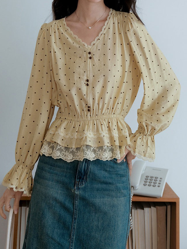Lace hem docking dot blouse