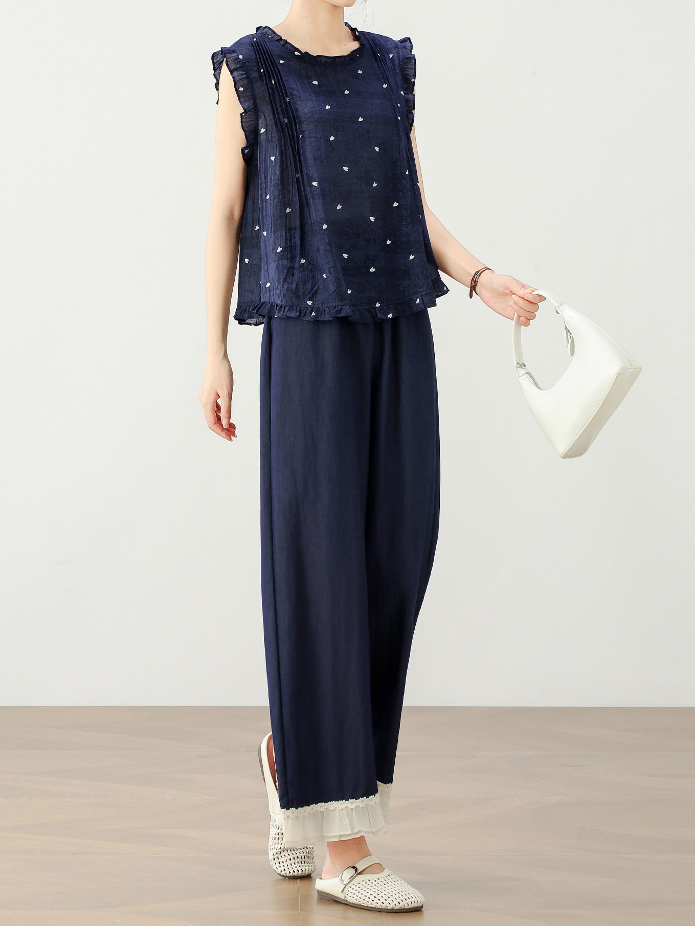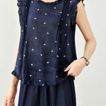 A cute sleeveless blouse with a trendy polka dot pattern that is perfect for adults.