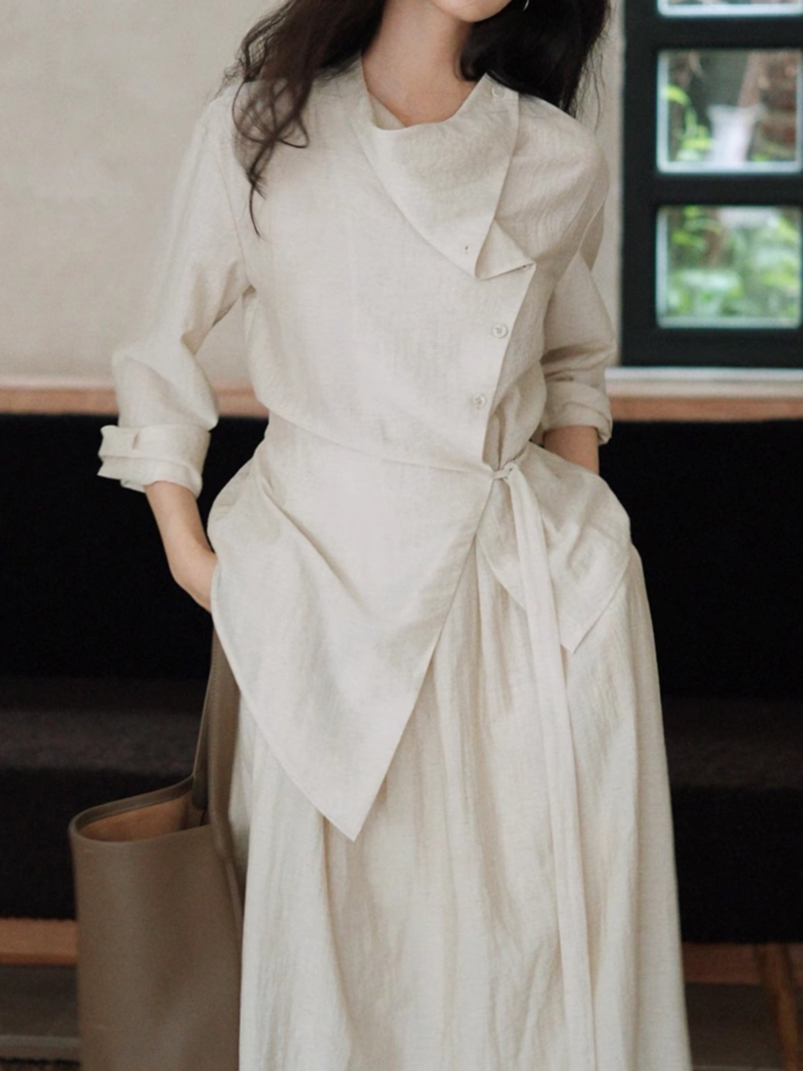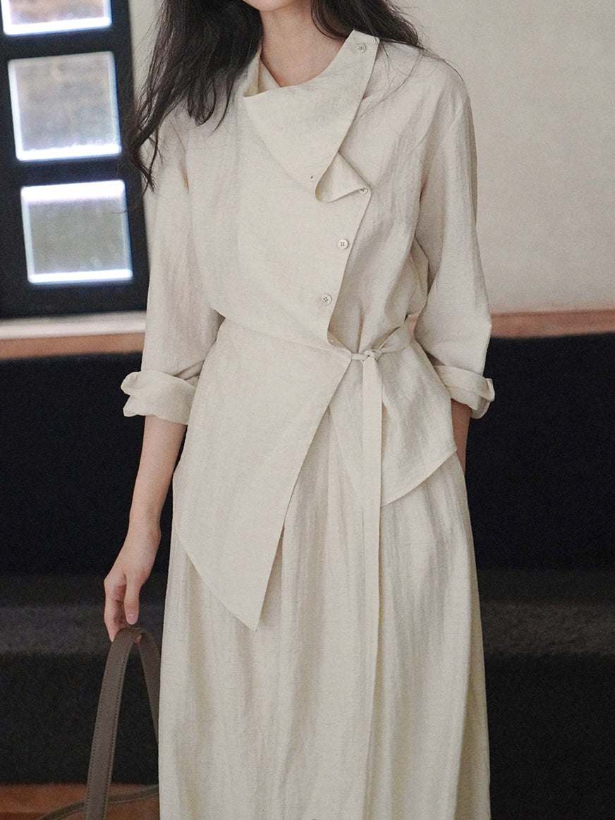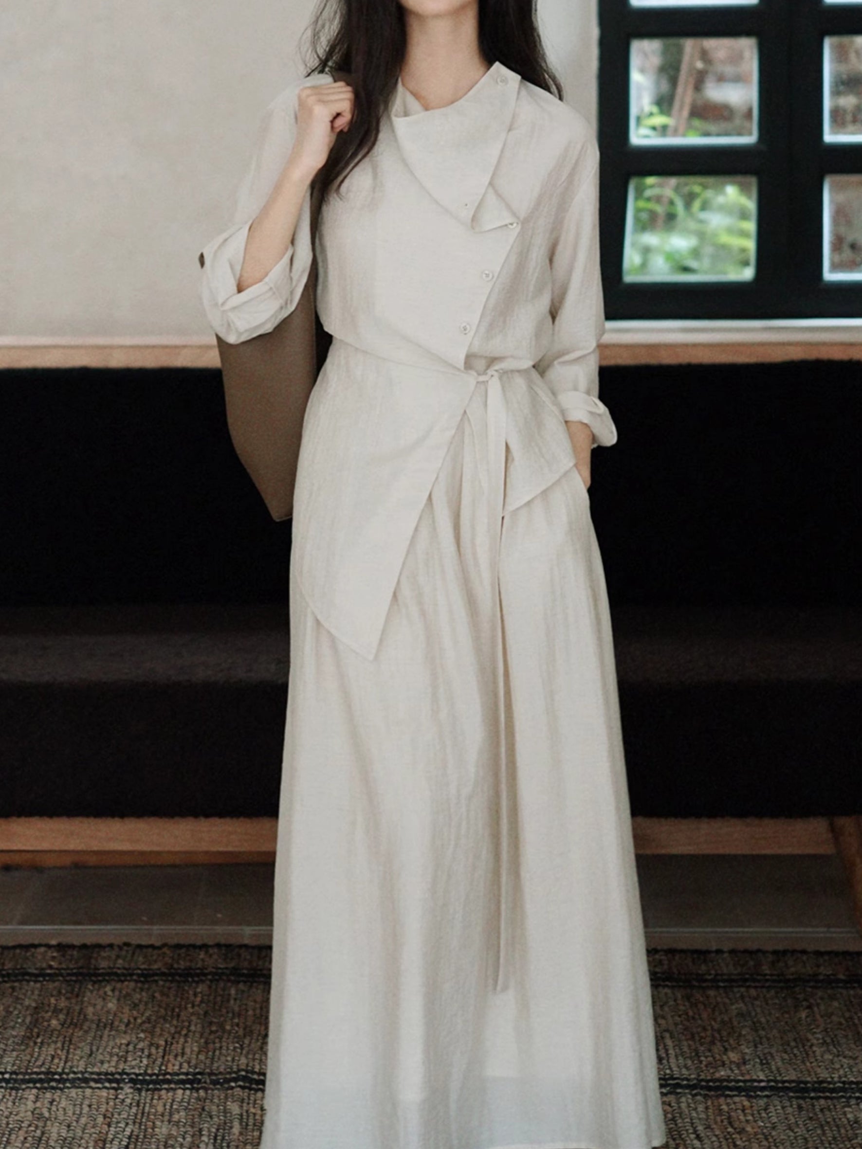 Asymmetrical Button Design Vest + Wide Pants Set (3 Colors)