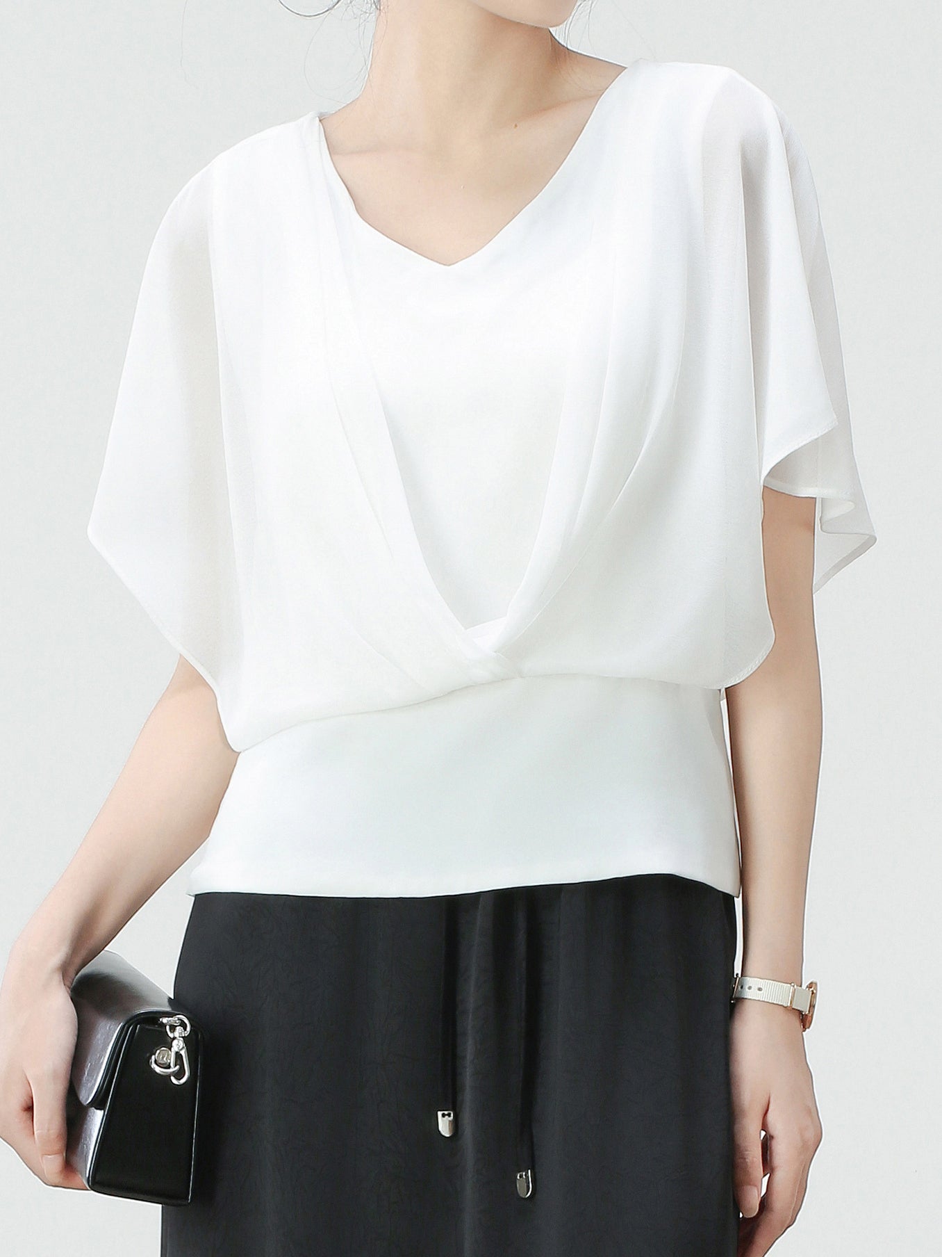 V-neck sheer flare chiffon blouse in 2 colors