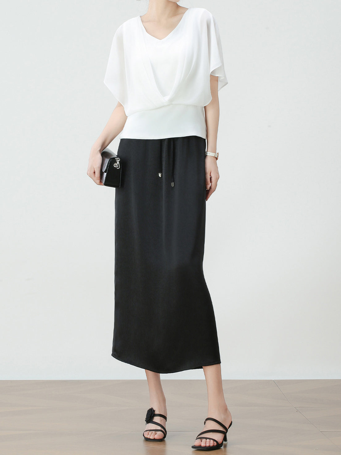 Sheer Tencel Drawstring Shirt + Satin Gloss Camisole Dress Set (2 Colors)