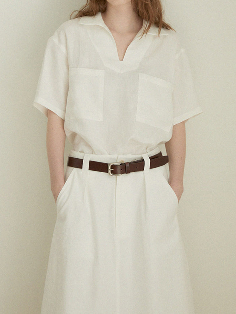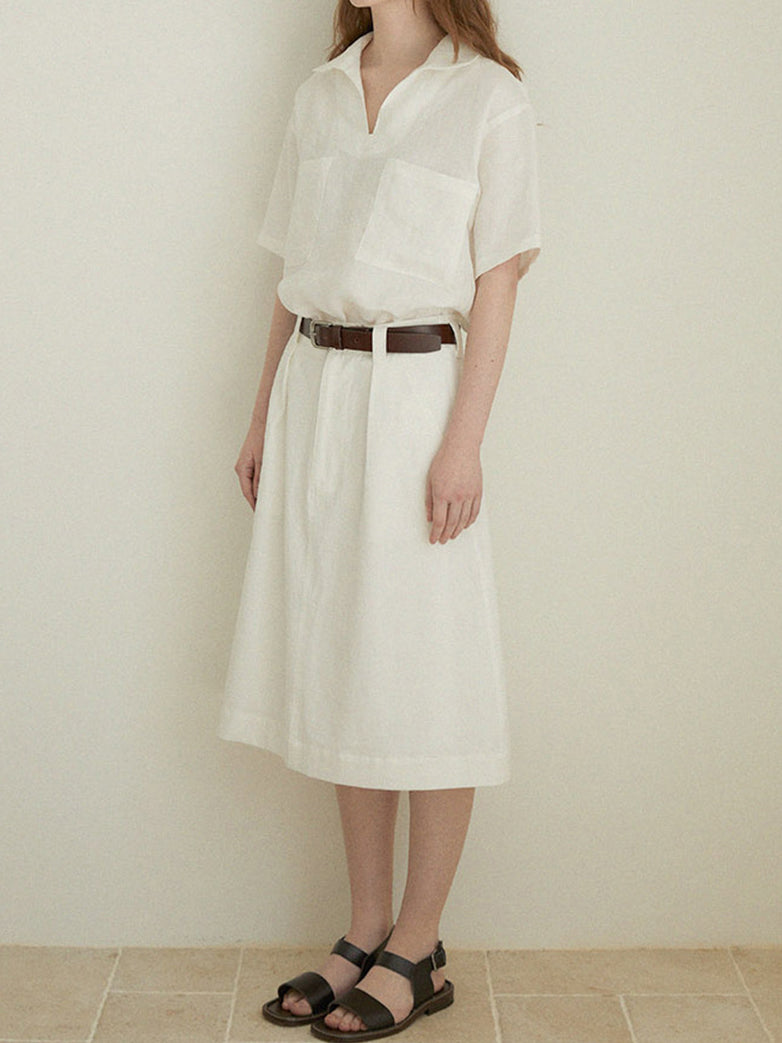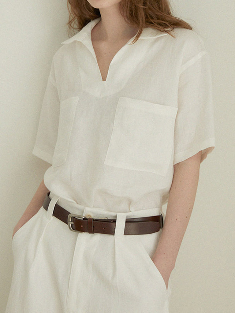 Keyhole neck pocket linen shirt (2 colors)