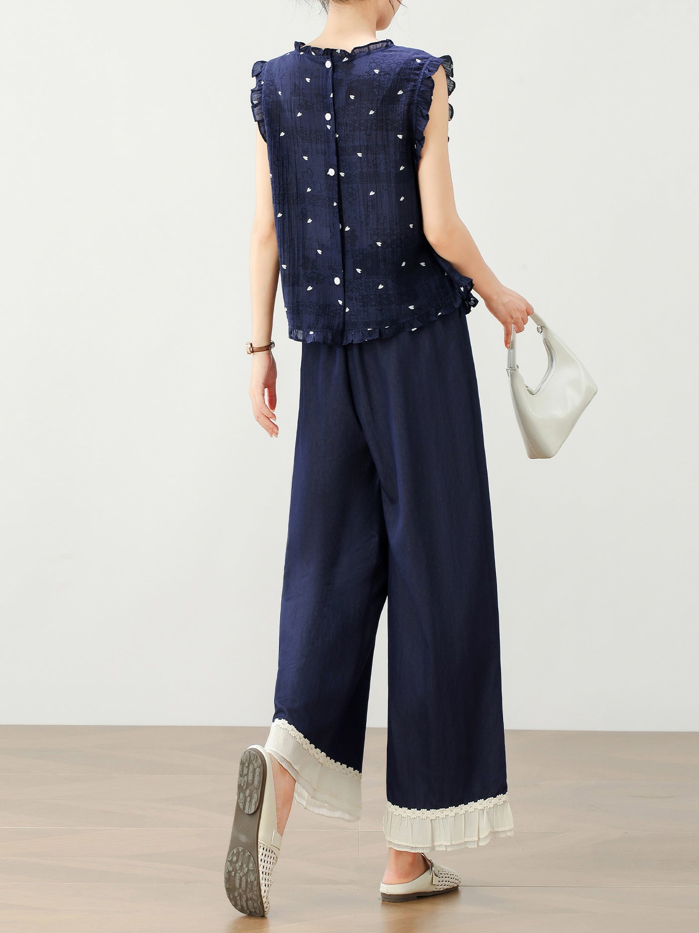 Lace hem docking dot blouse