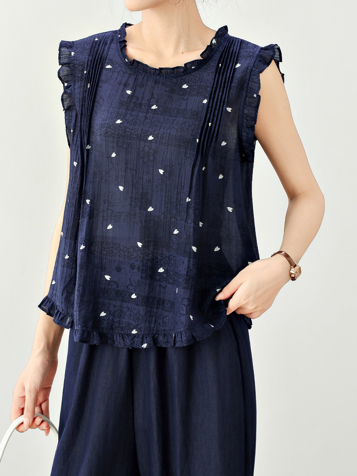 Side pintuck dot blouse