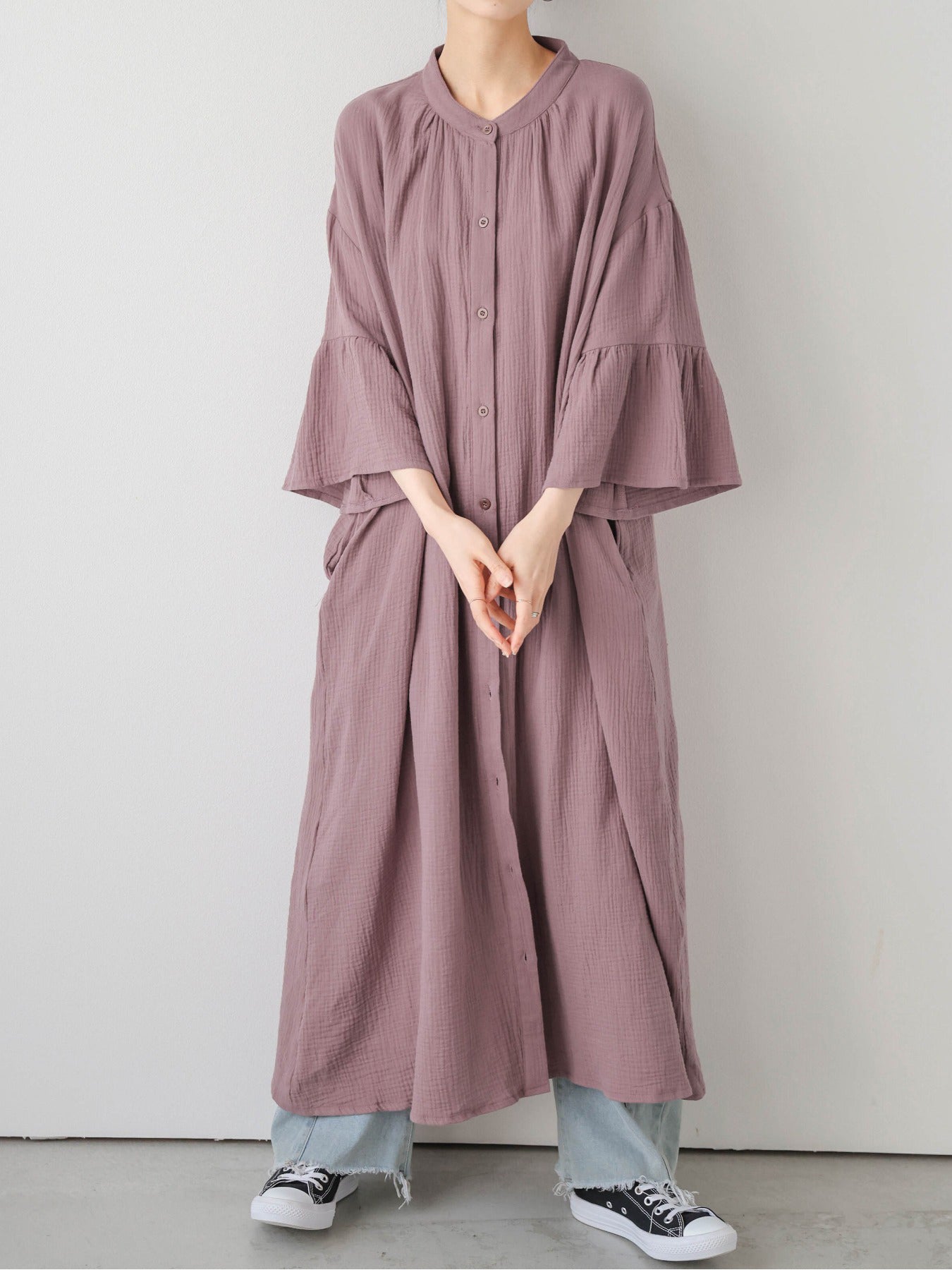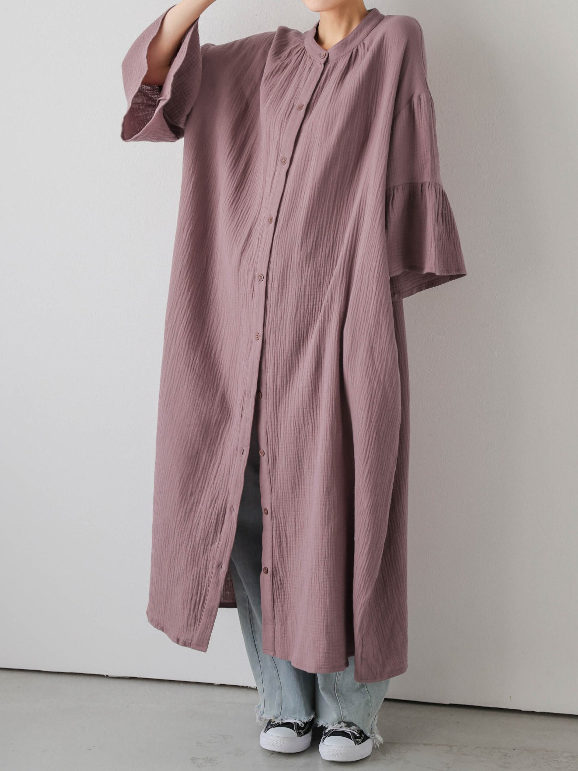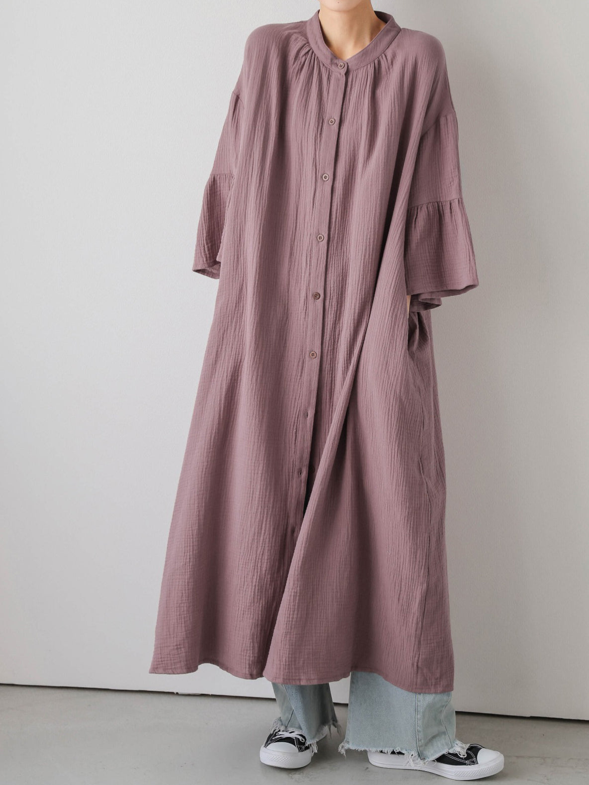 Flare Sleeve Long Shirt Dress (4 Colors)