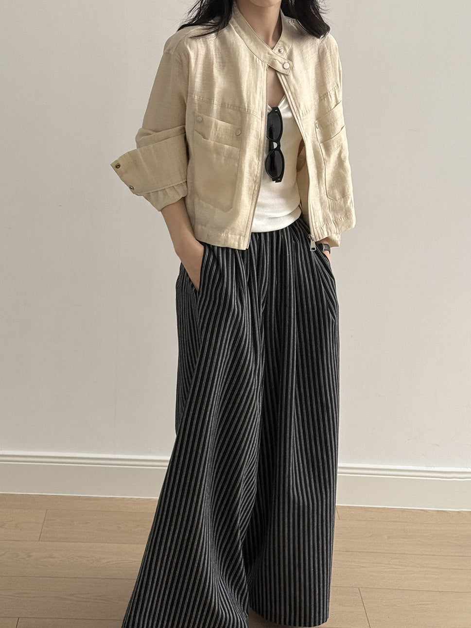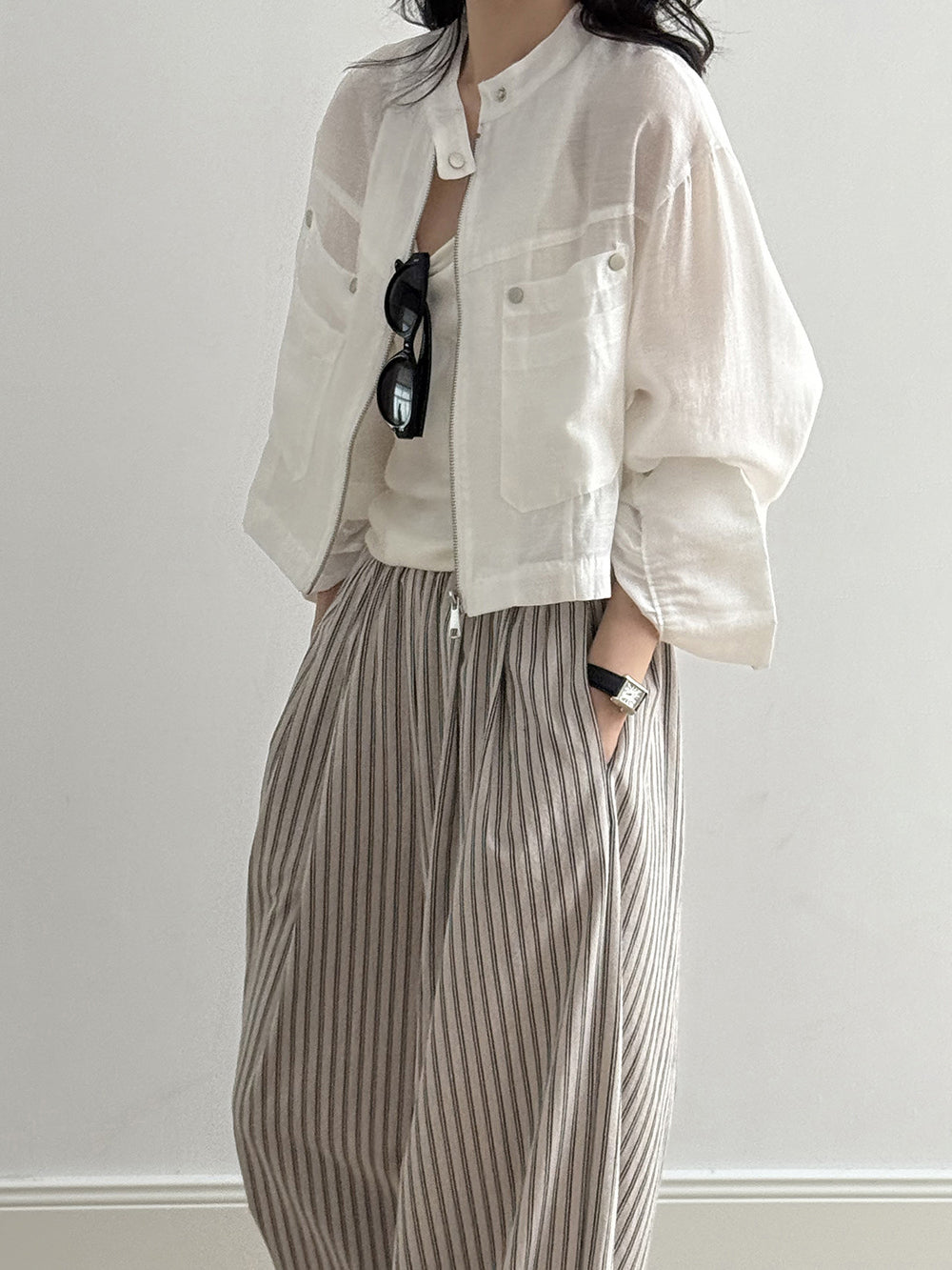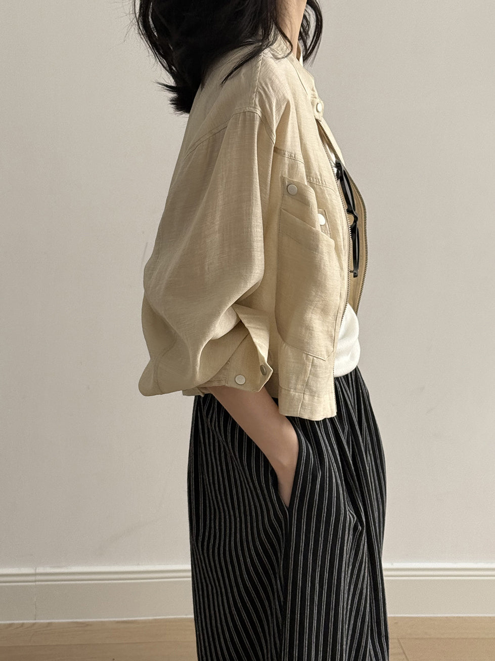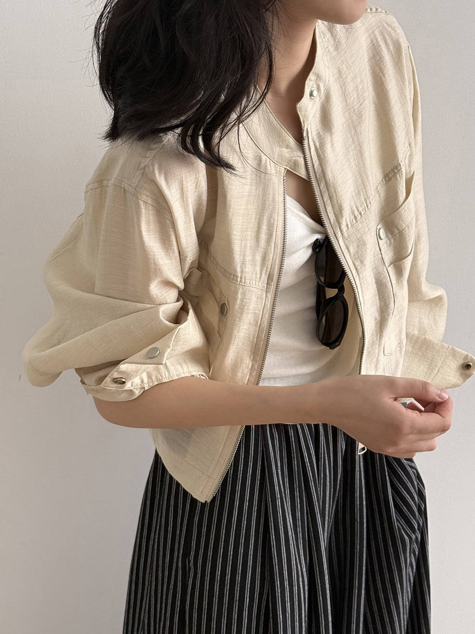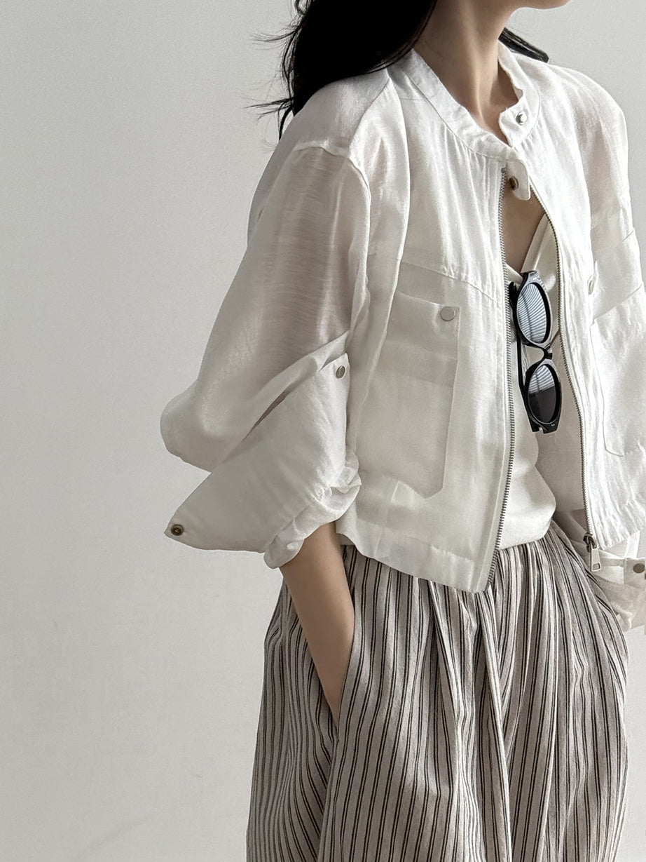 Band Collar Pocket Blouson (2 colors)