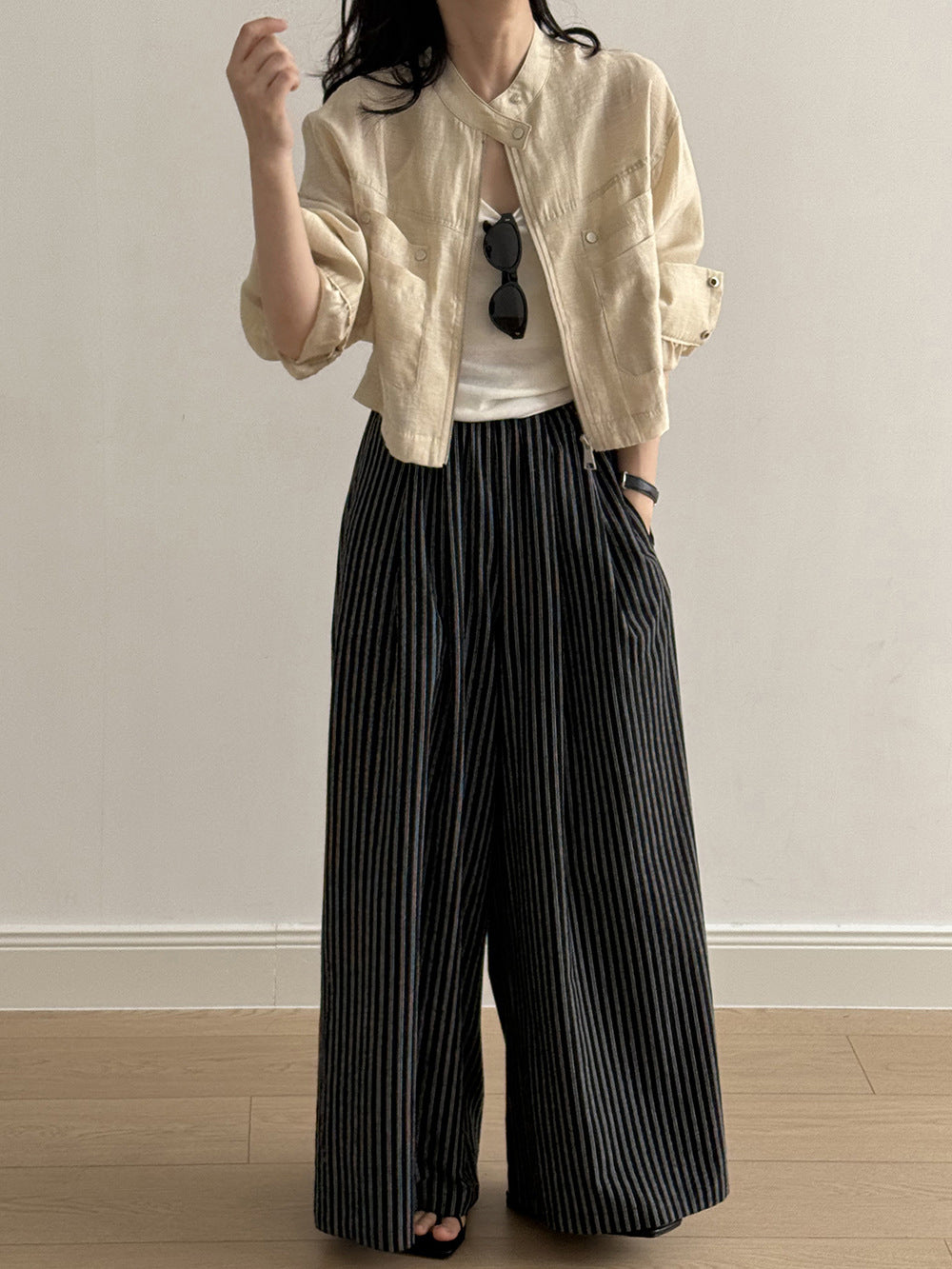 ☆The band collar design gives a sharp impression and enhances the clean atmosphere.