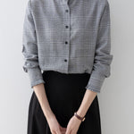Frill band collar check shirt