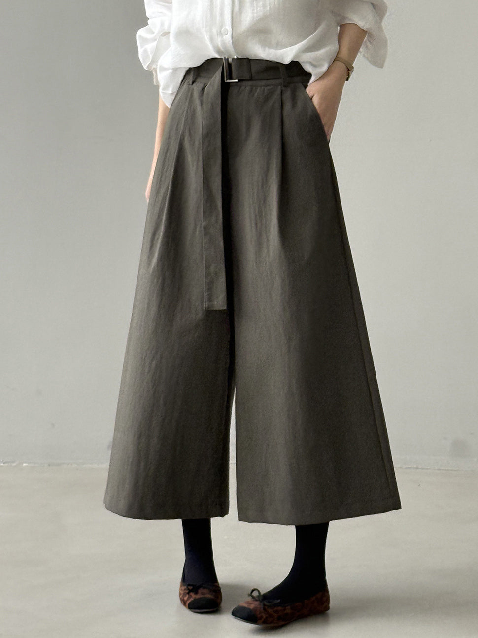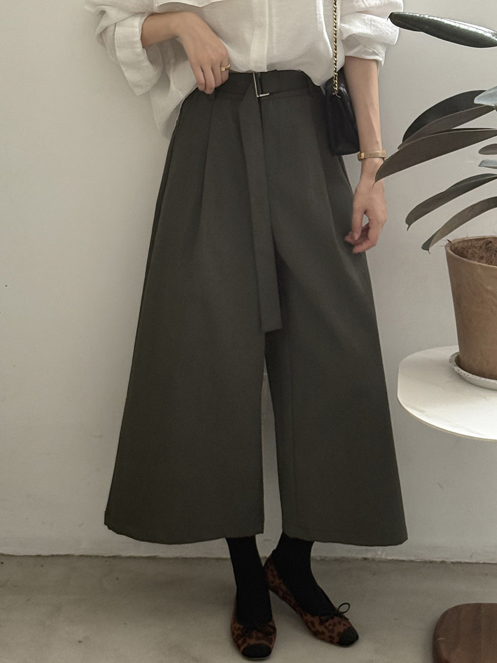 Buckle Belt 8-Length Wide Pants (3 Colors)