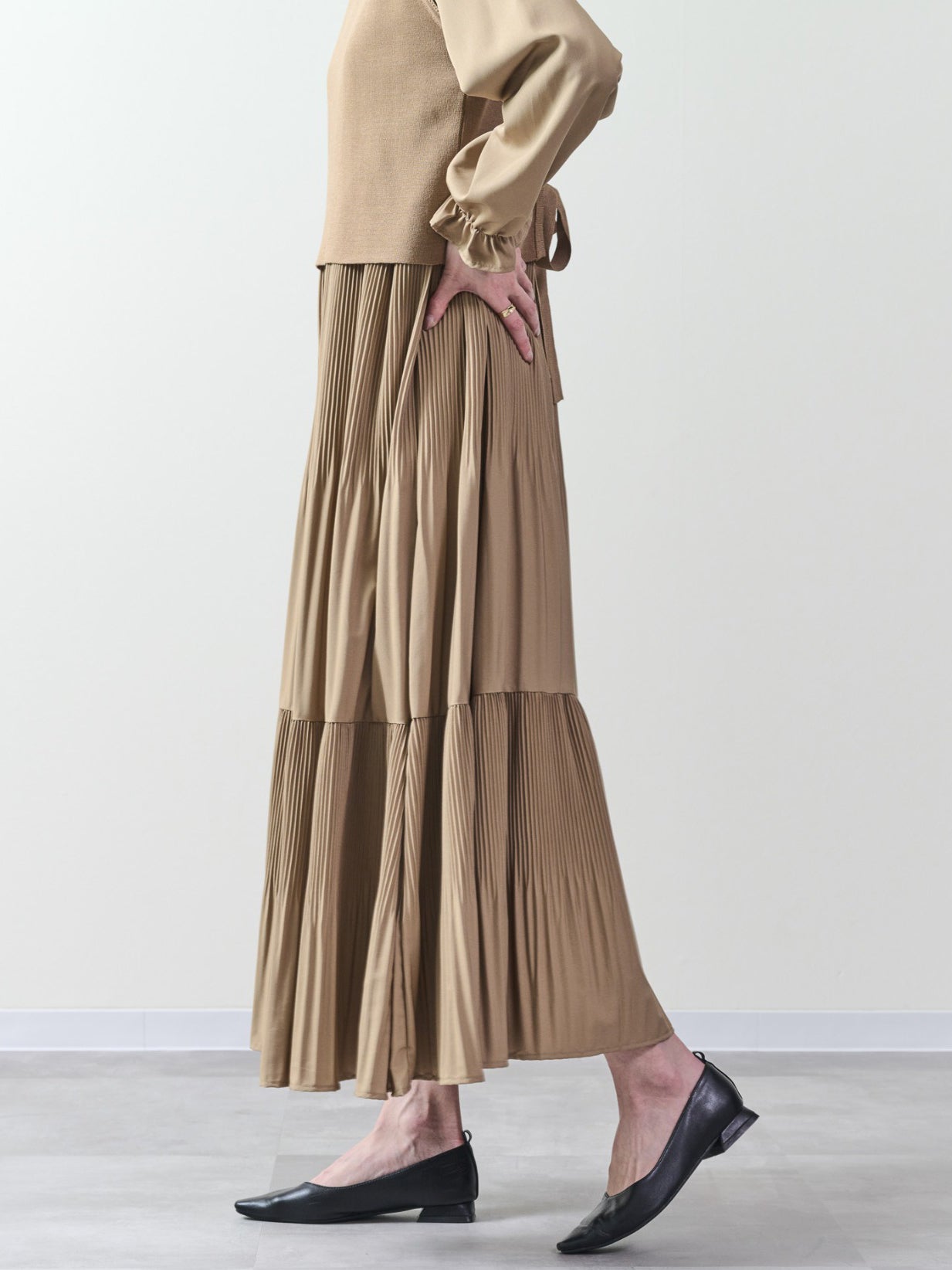 軽やかなプリーツとバランスの良いコンパクトな丈感のベストが魅力的です。