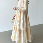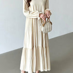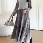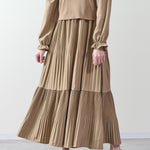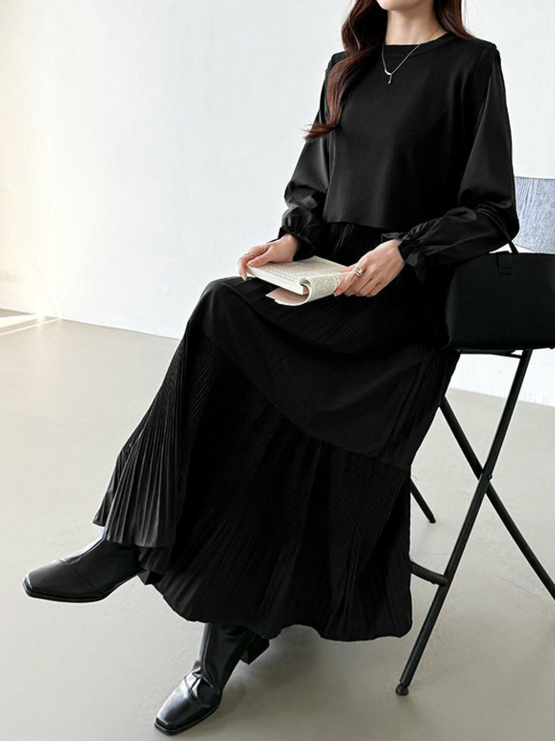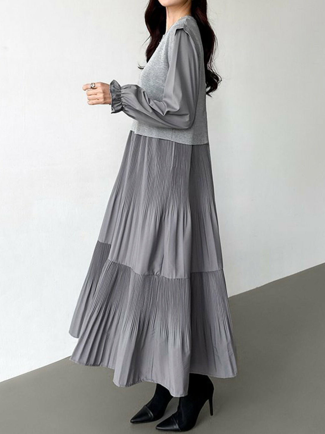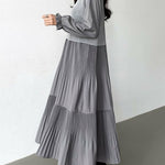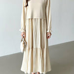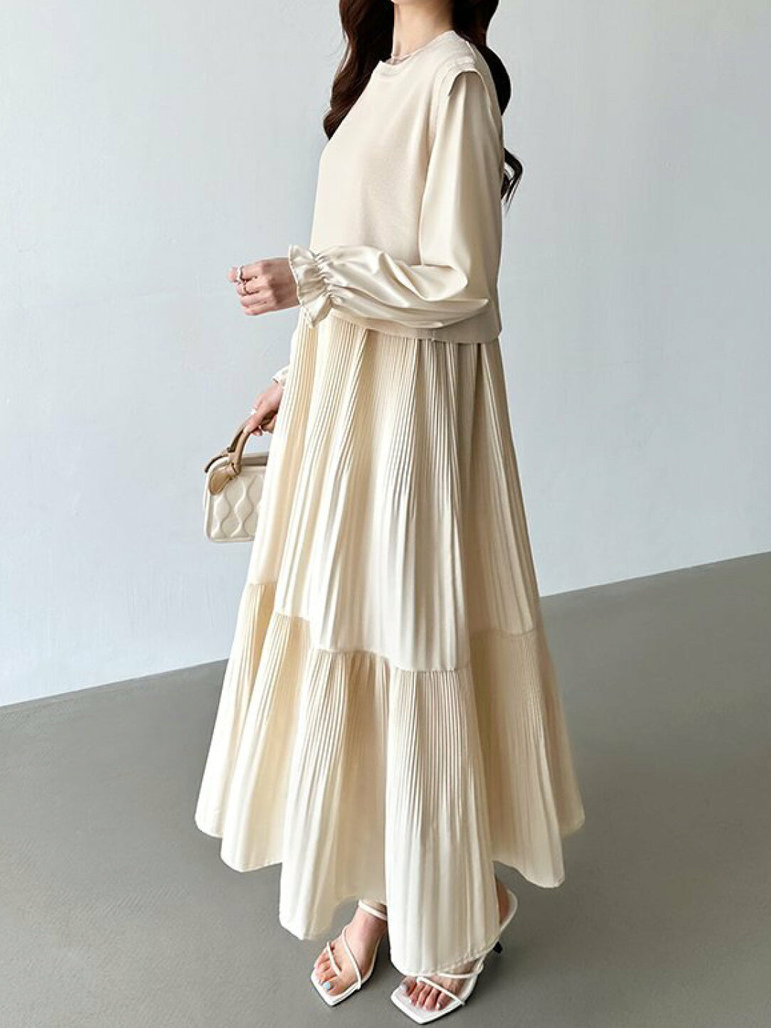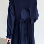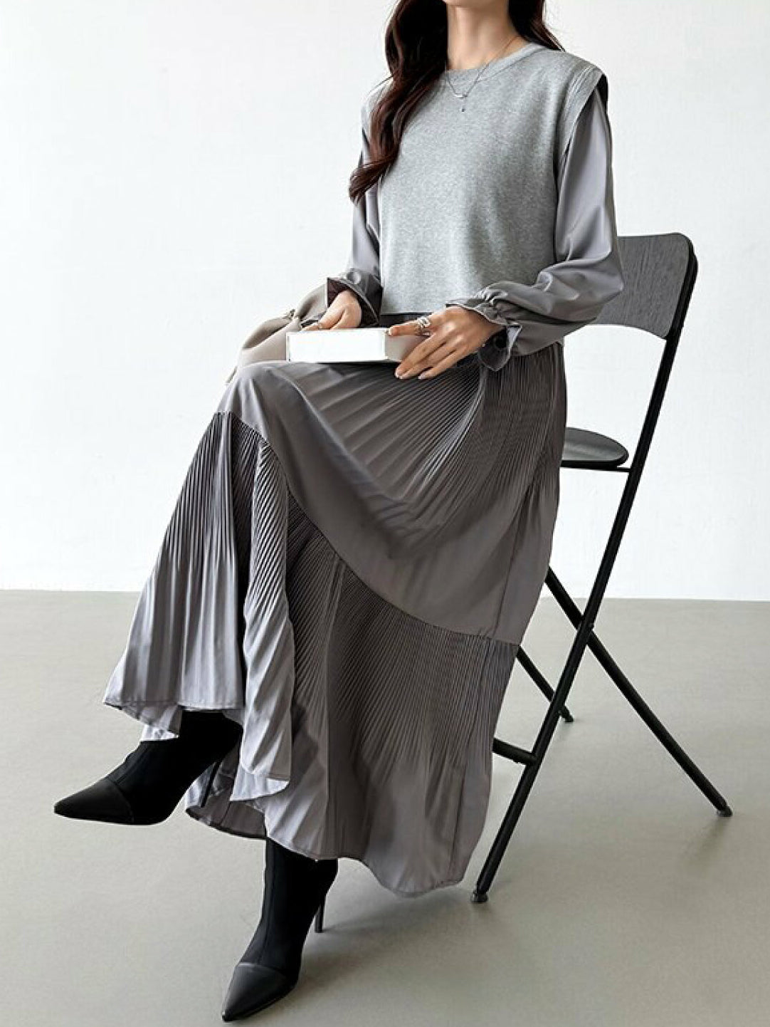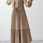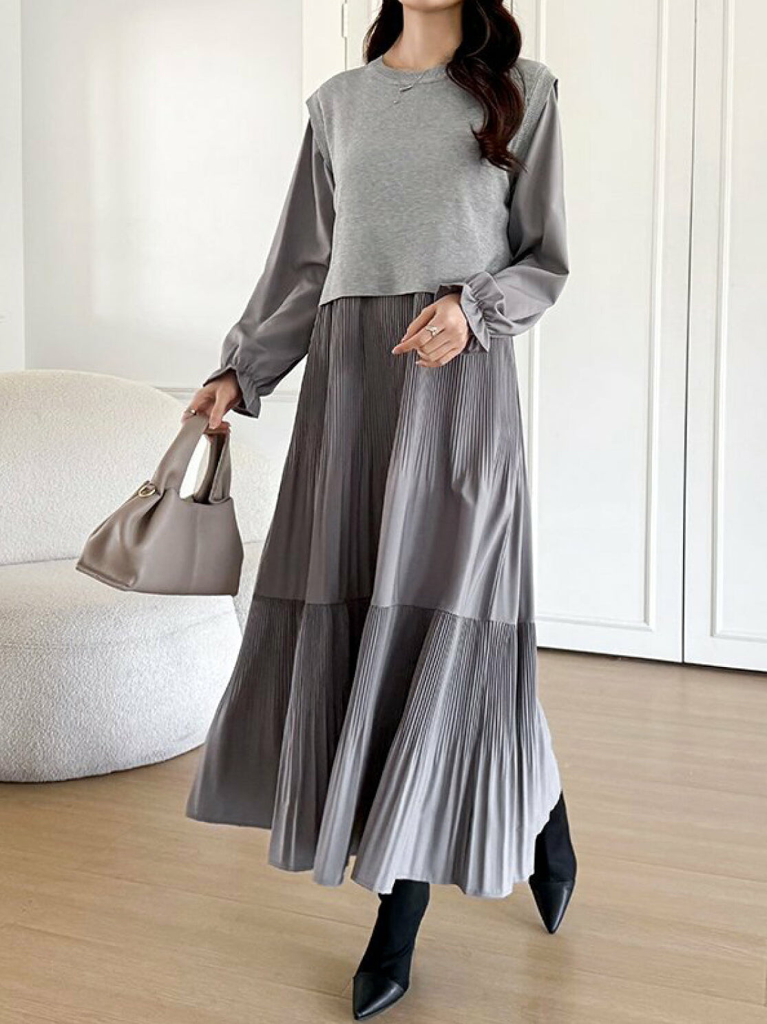 Back Ribbon Knit Vest + Pleated Dress Set (5 Colors)