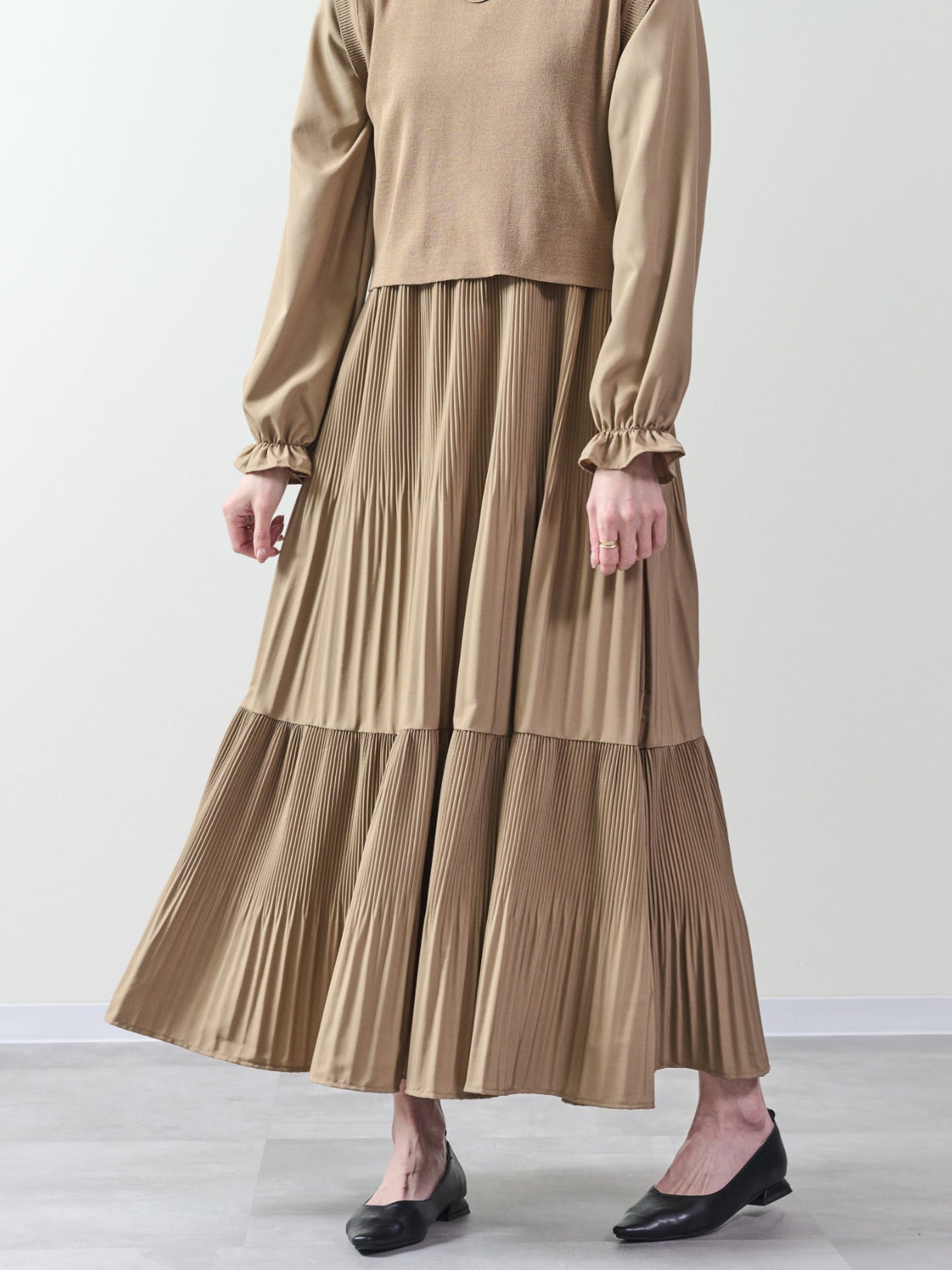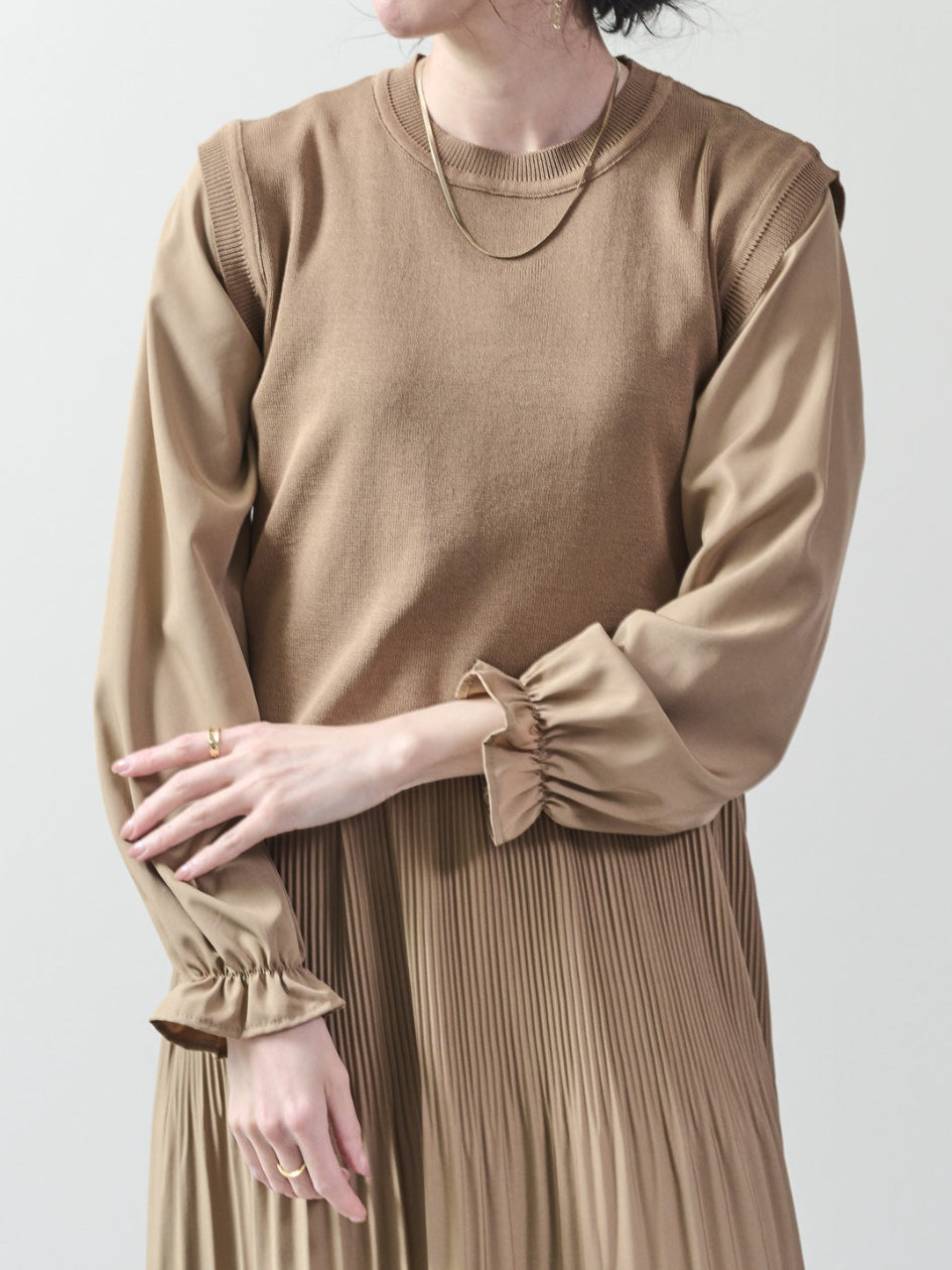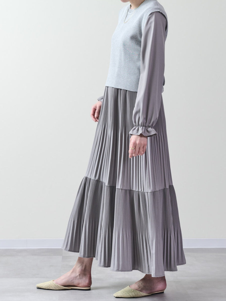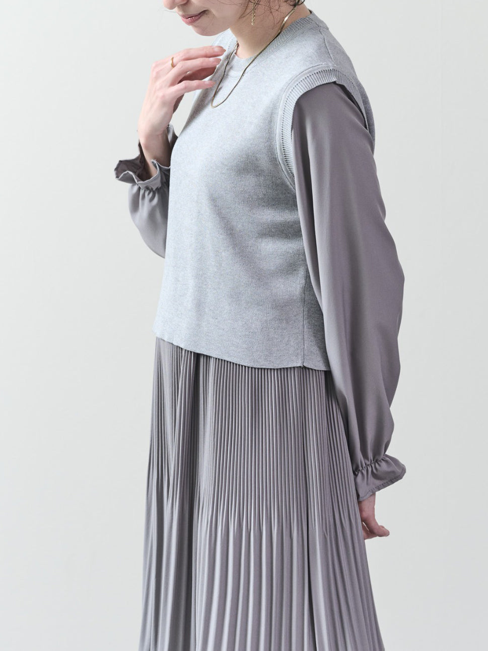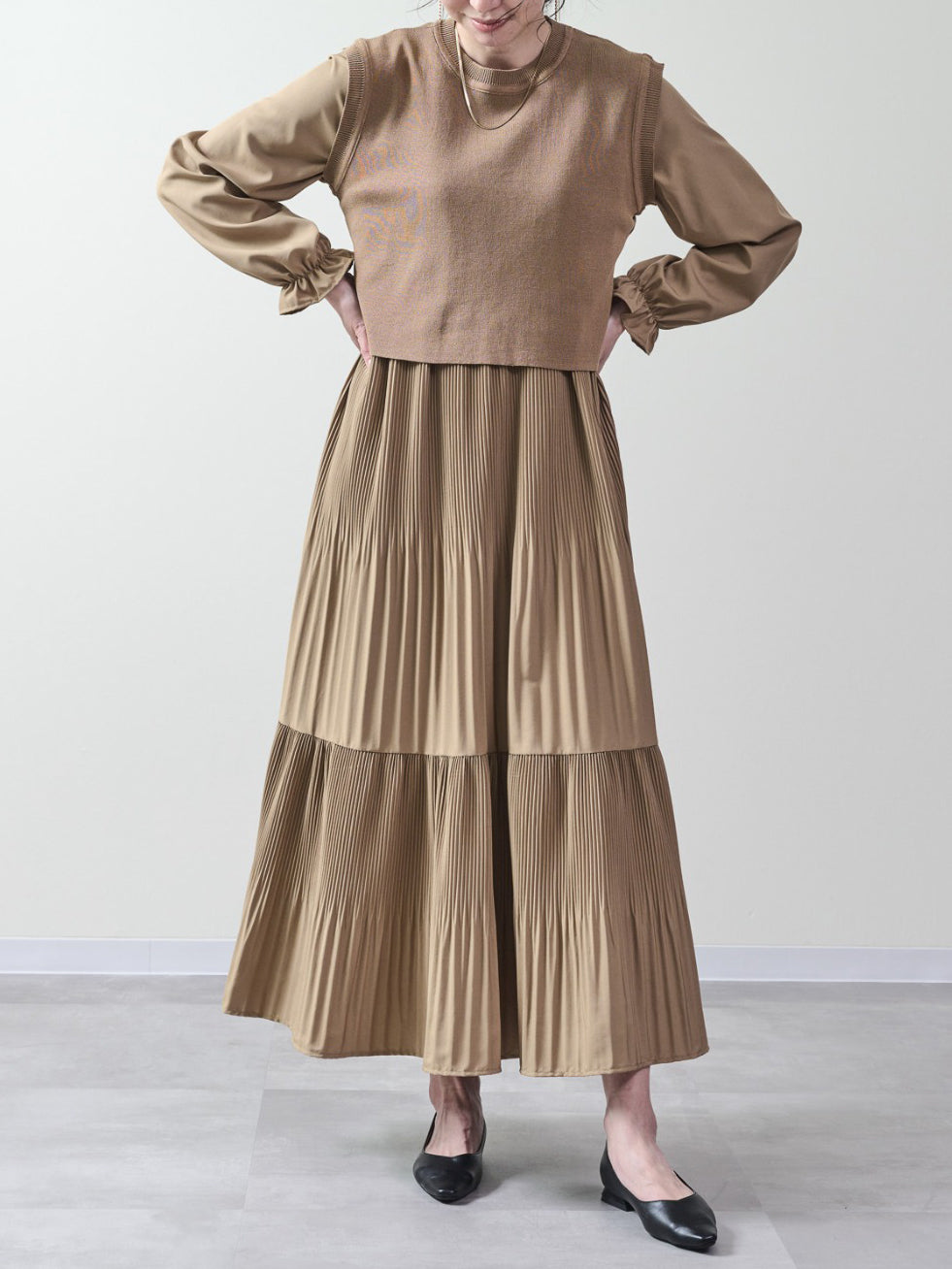 ・セットとして着用してはもちろんですが、ワンピースとニットベストはそれぞれ単品で着回しできコーデの幅がぐんと広がります。