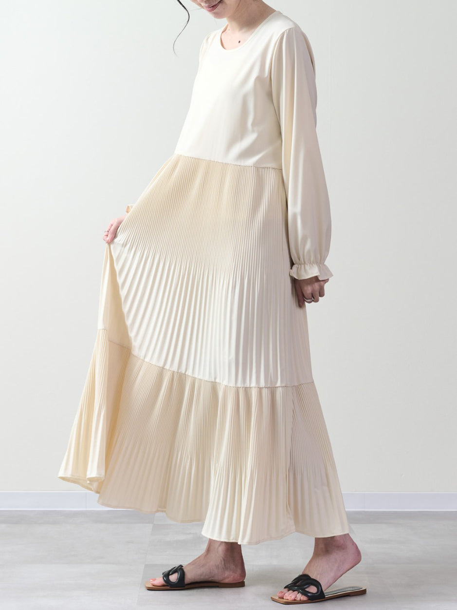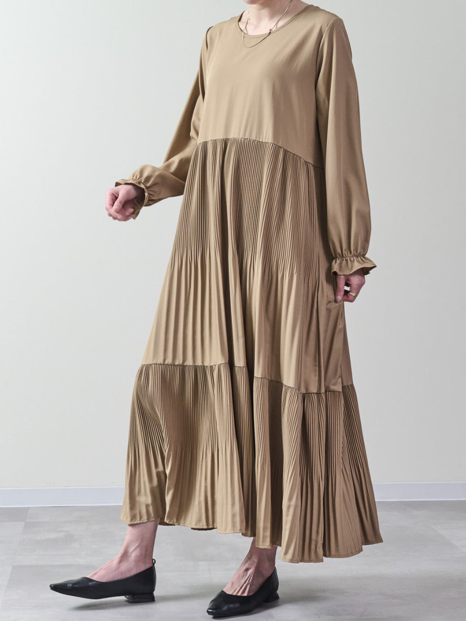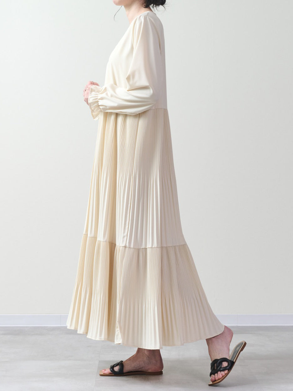 ☆ワンピース部分は大小のプリーツが揺れるたびに美しく、ふんわりとしたキャンディスリーブが女性らしさ◎