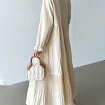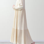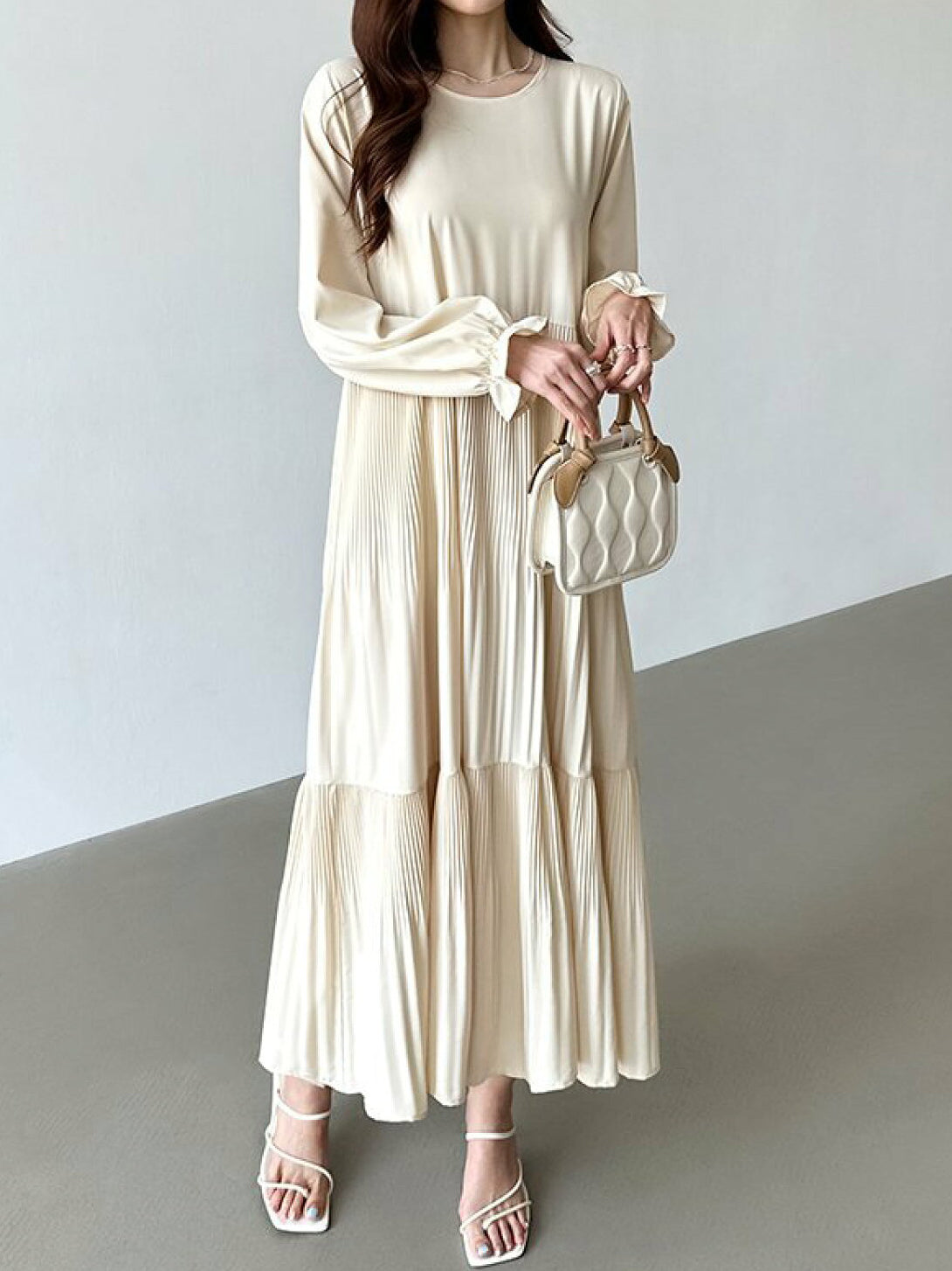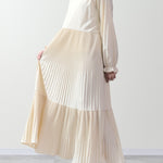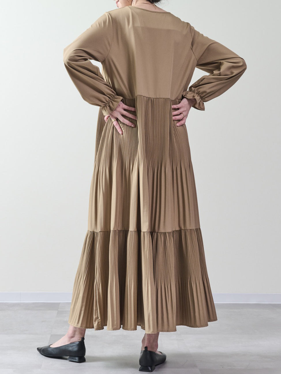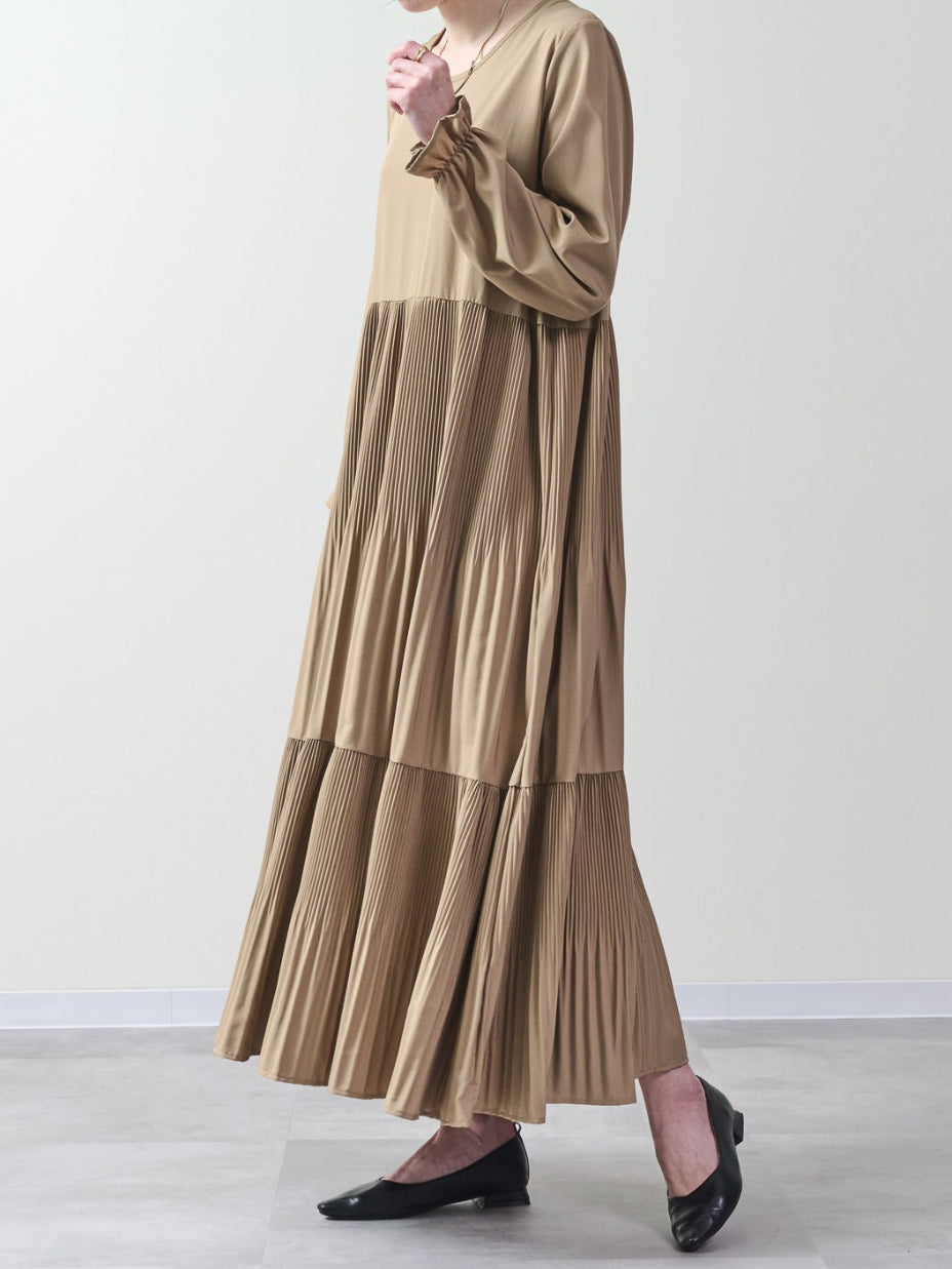 ☆ワンピース部分は大小のプリーツが揺れるたびに美しく、ふんわりとしたキャンディスリーブが女性らしさ◎
