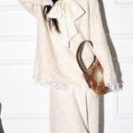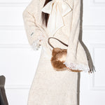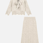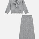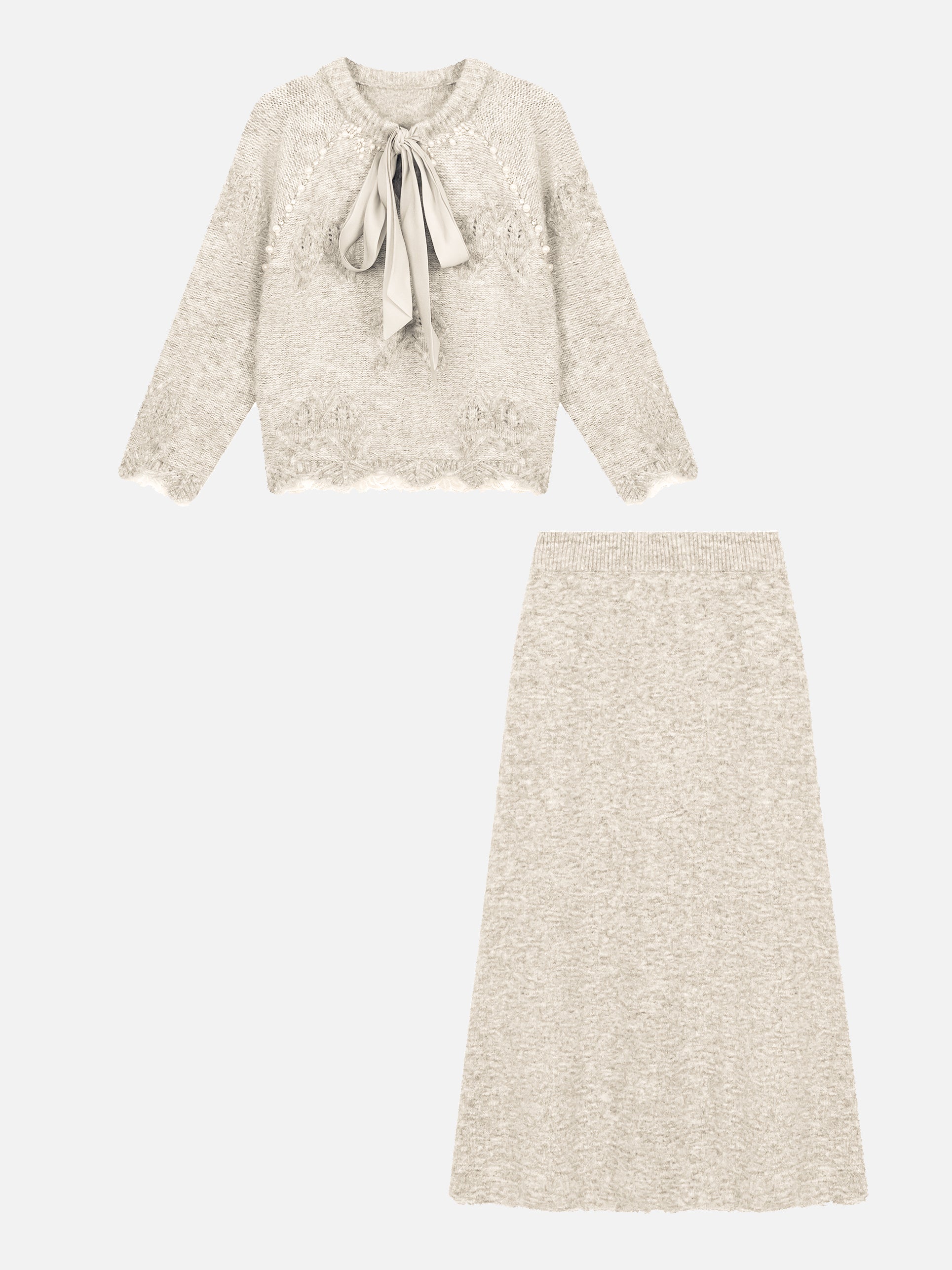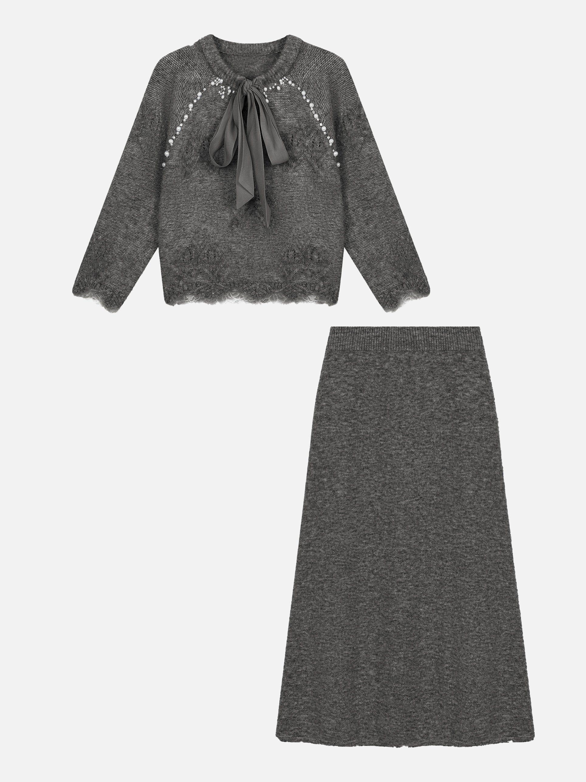 Ribbon design pearl lace knit + knit skirt set (3 colors)