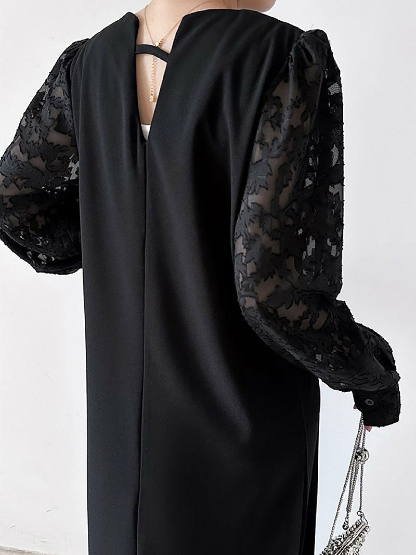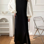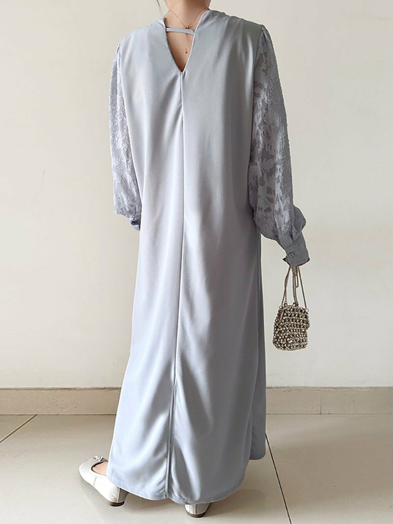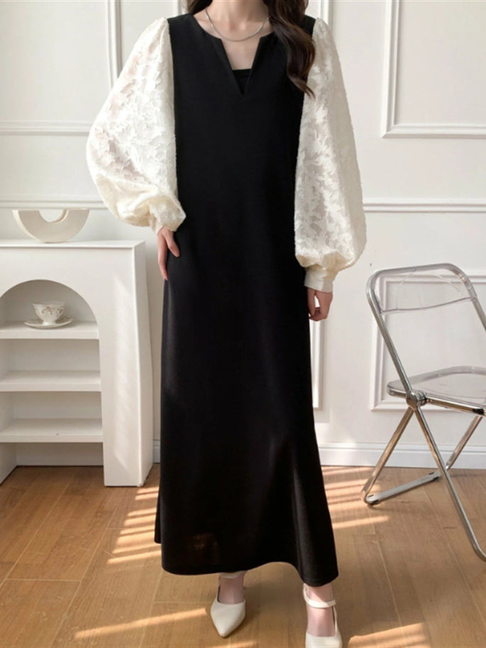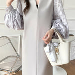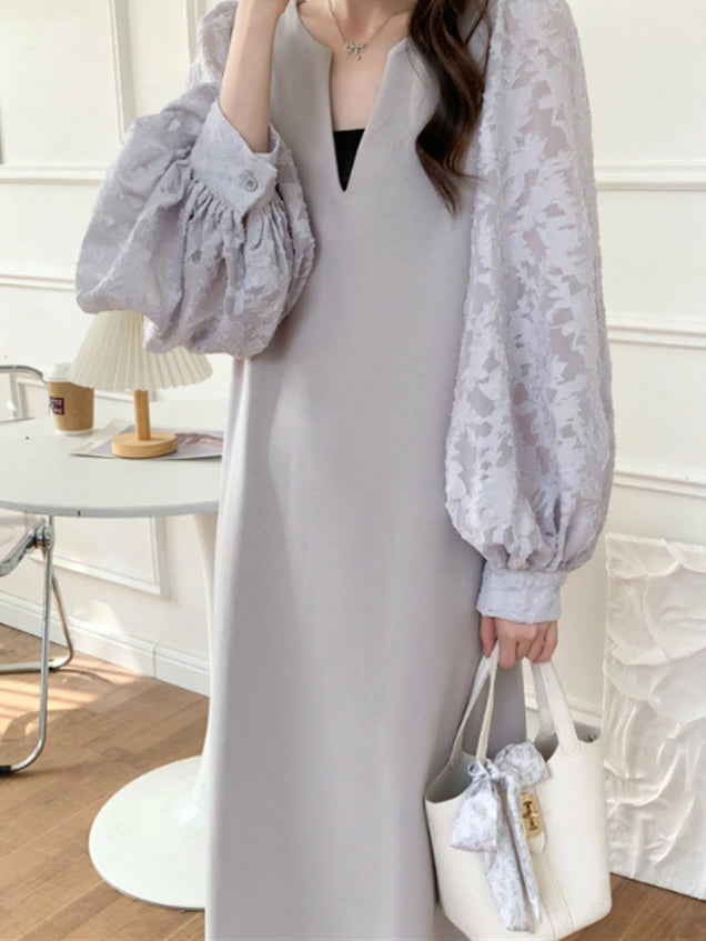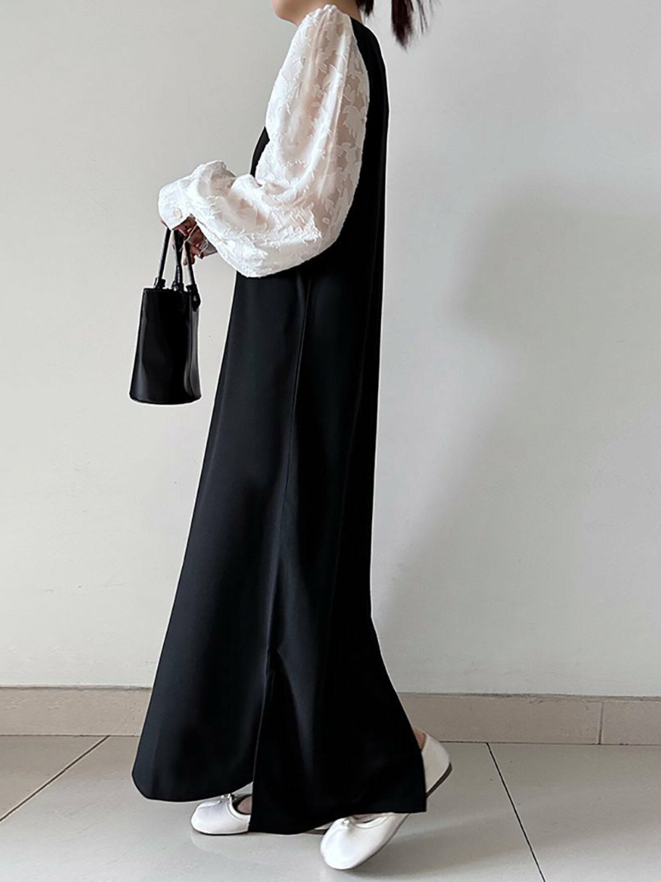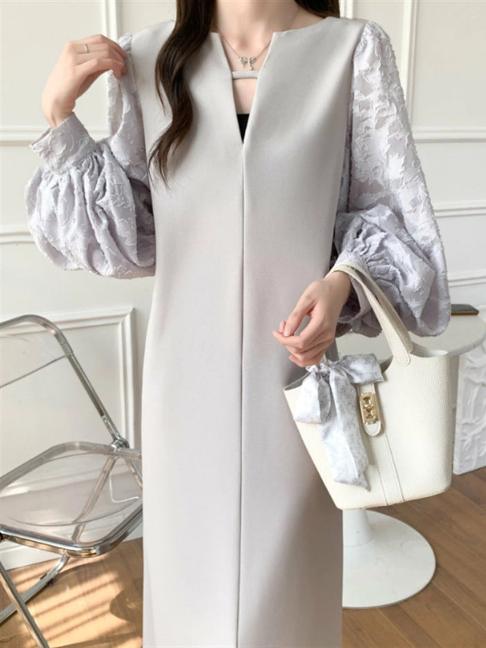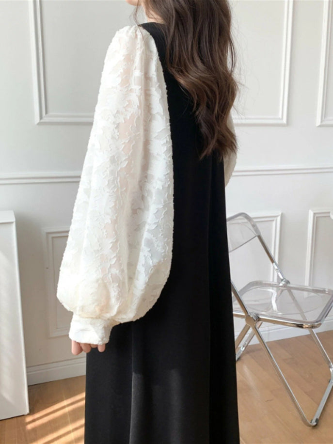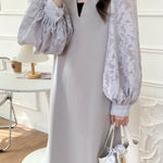 Two-way front and back jacquard voluminous sleeve long dress in three colors