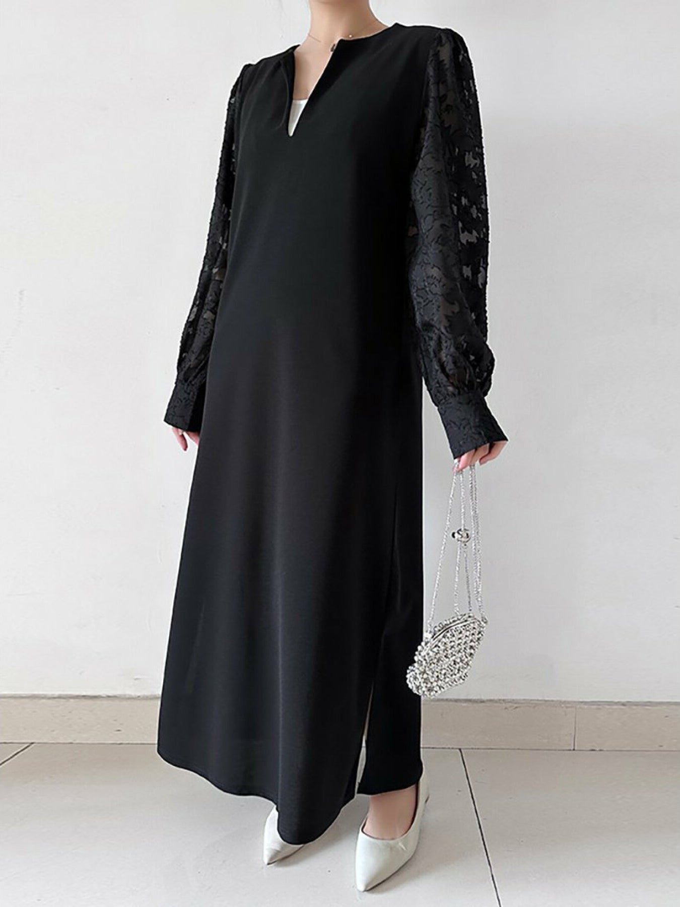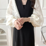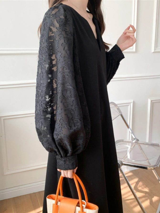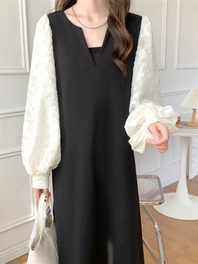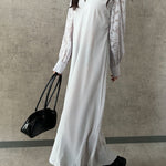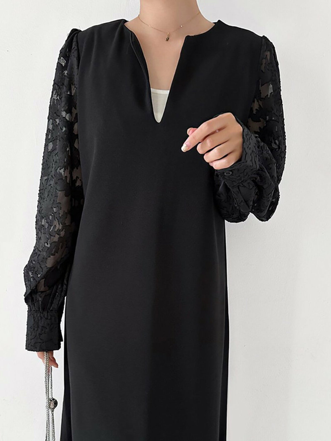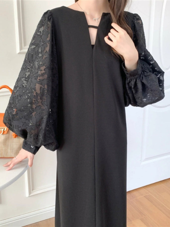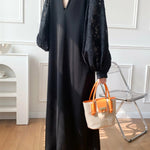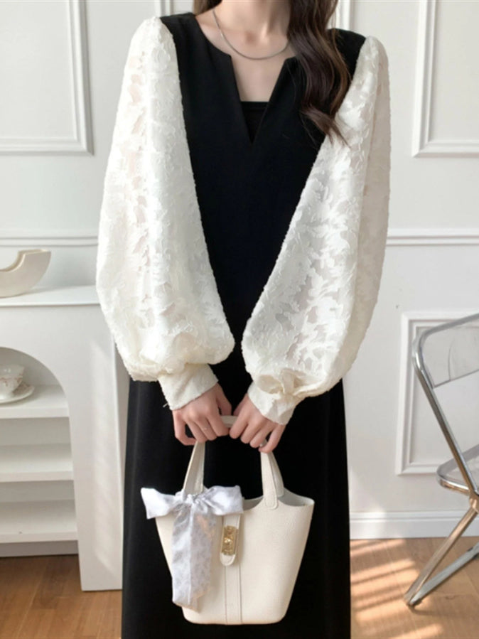 Two-way front and back jacquard voluminous sleeve long dress in three colors