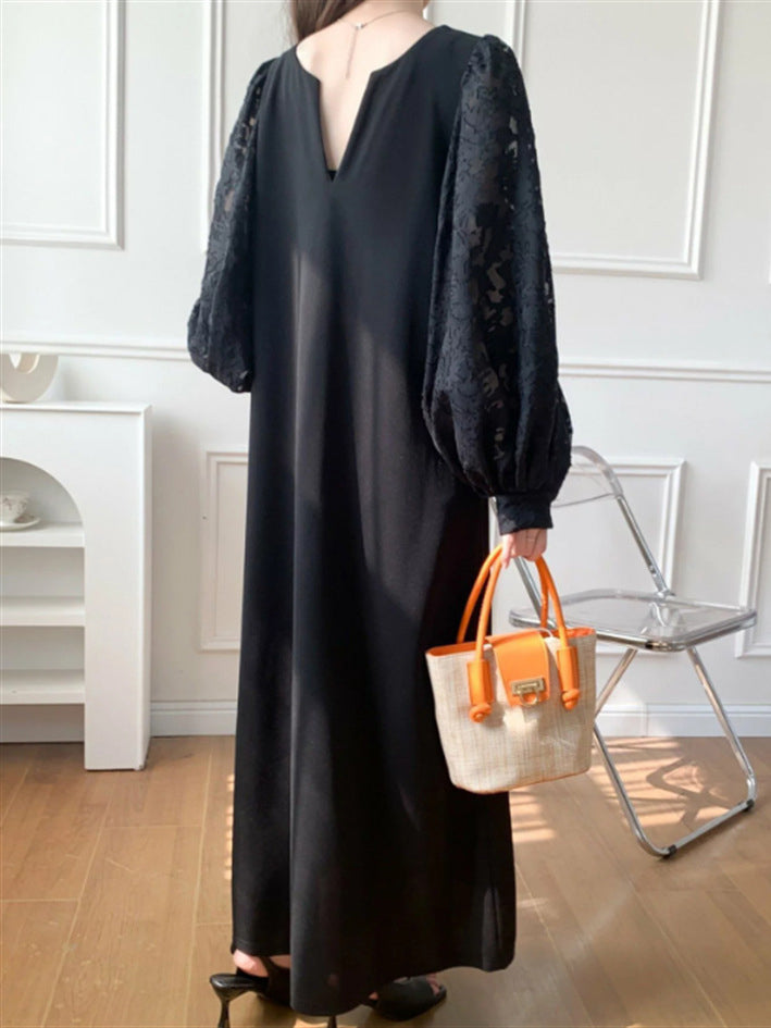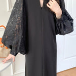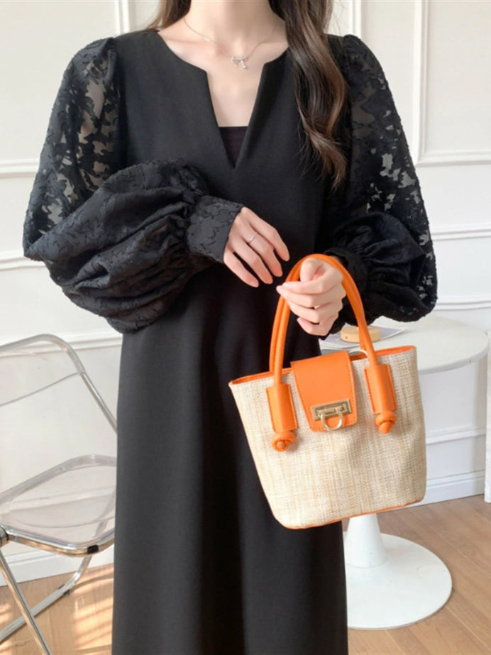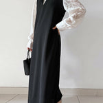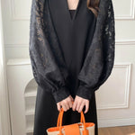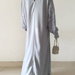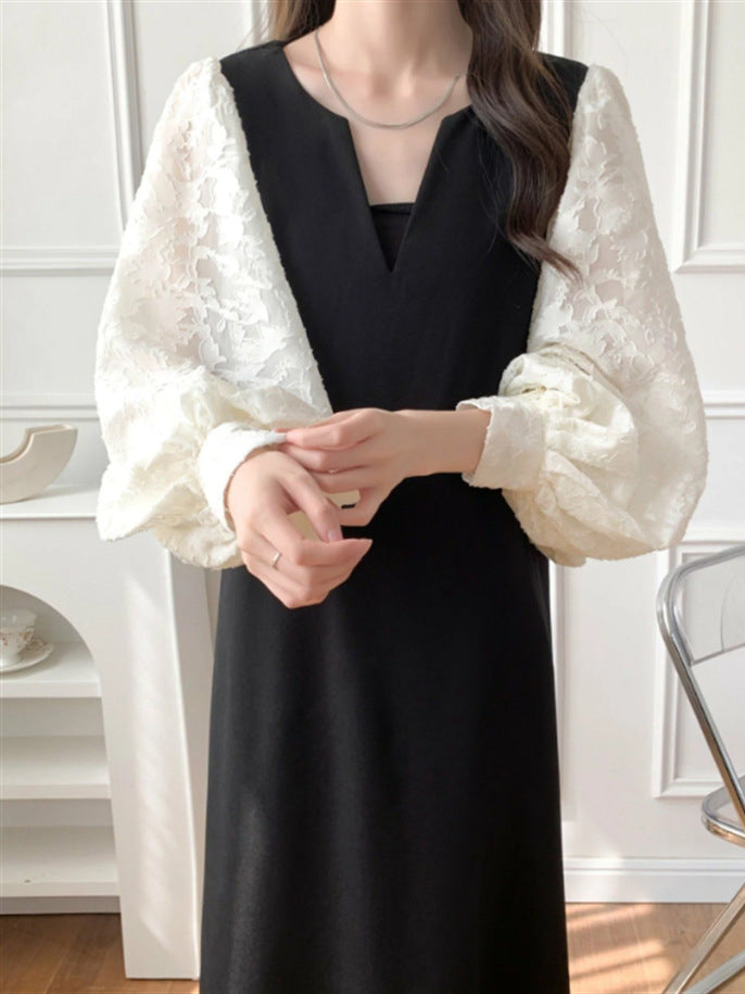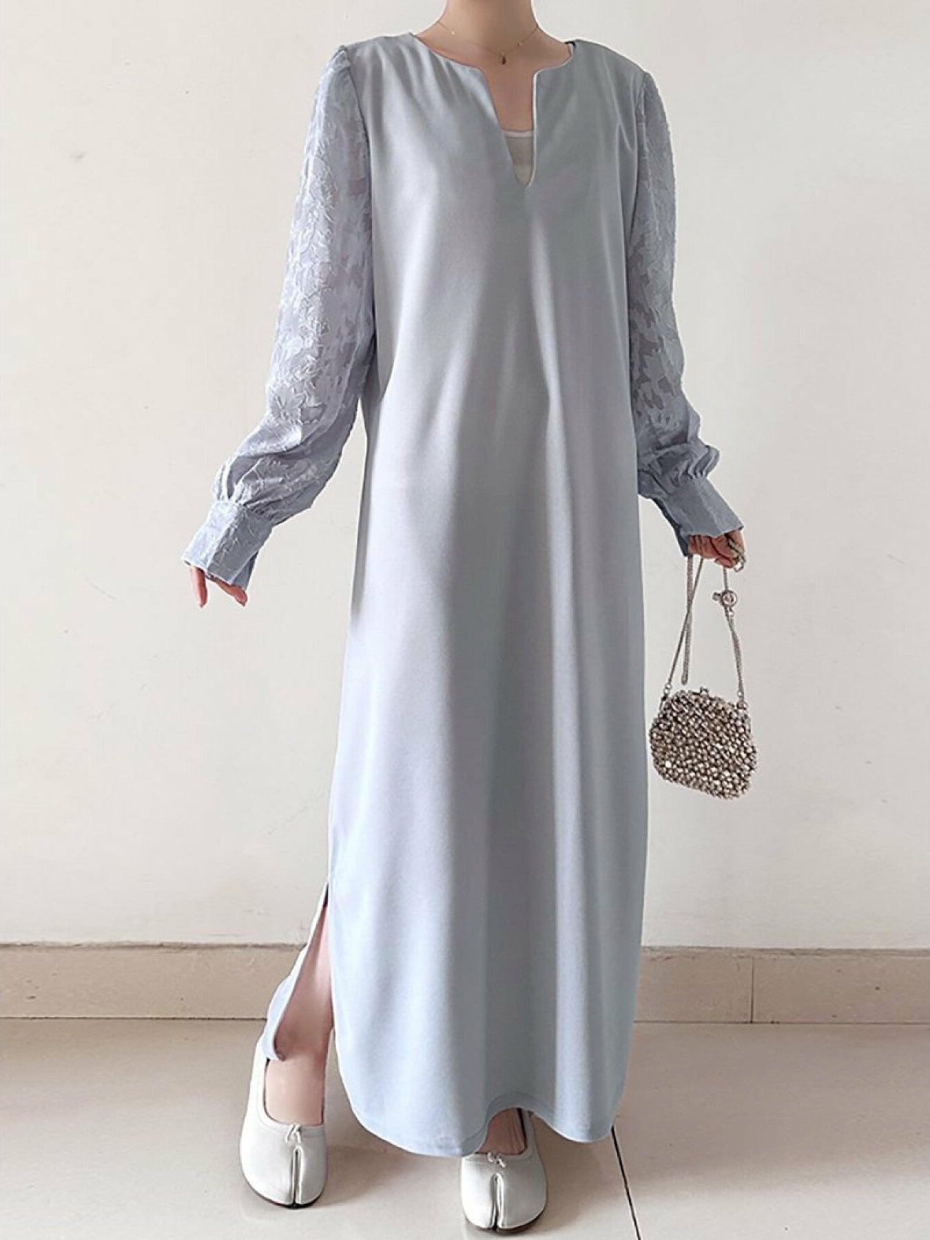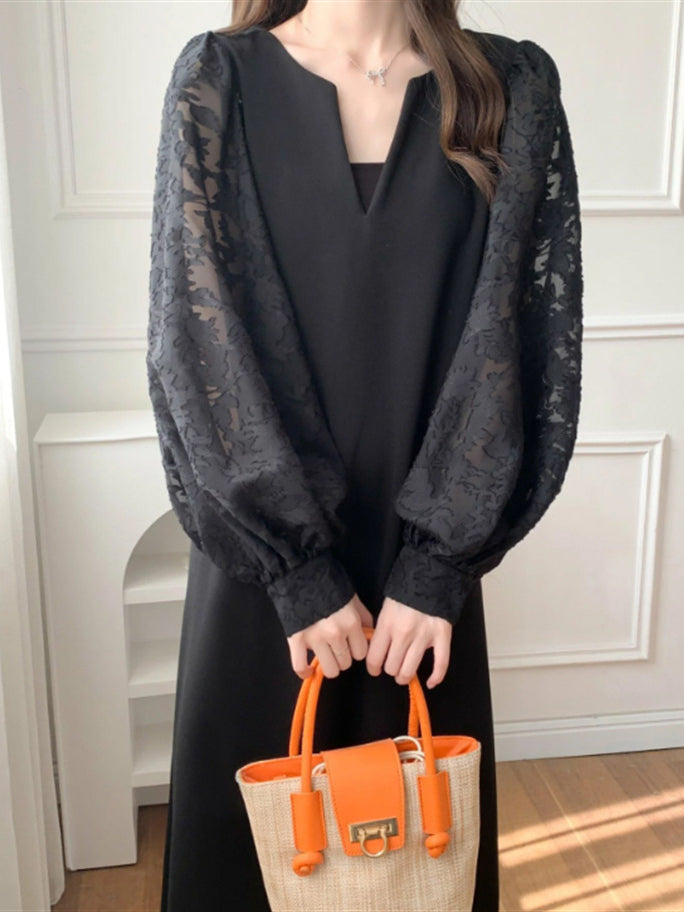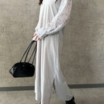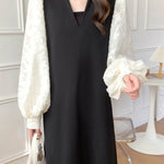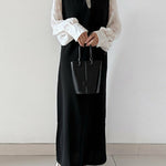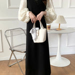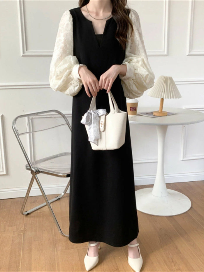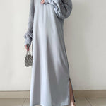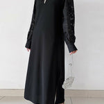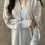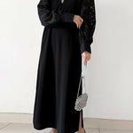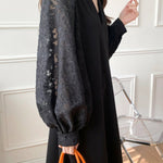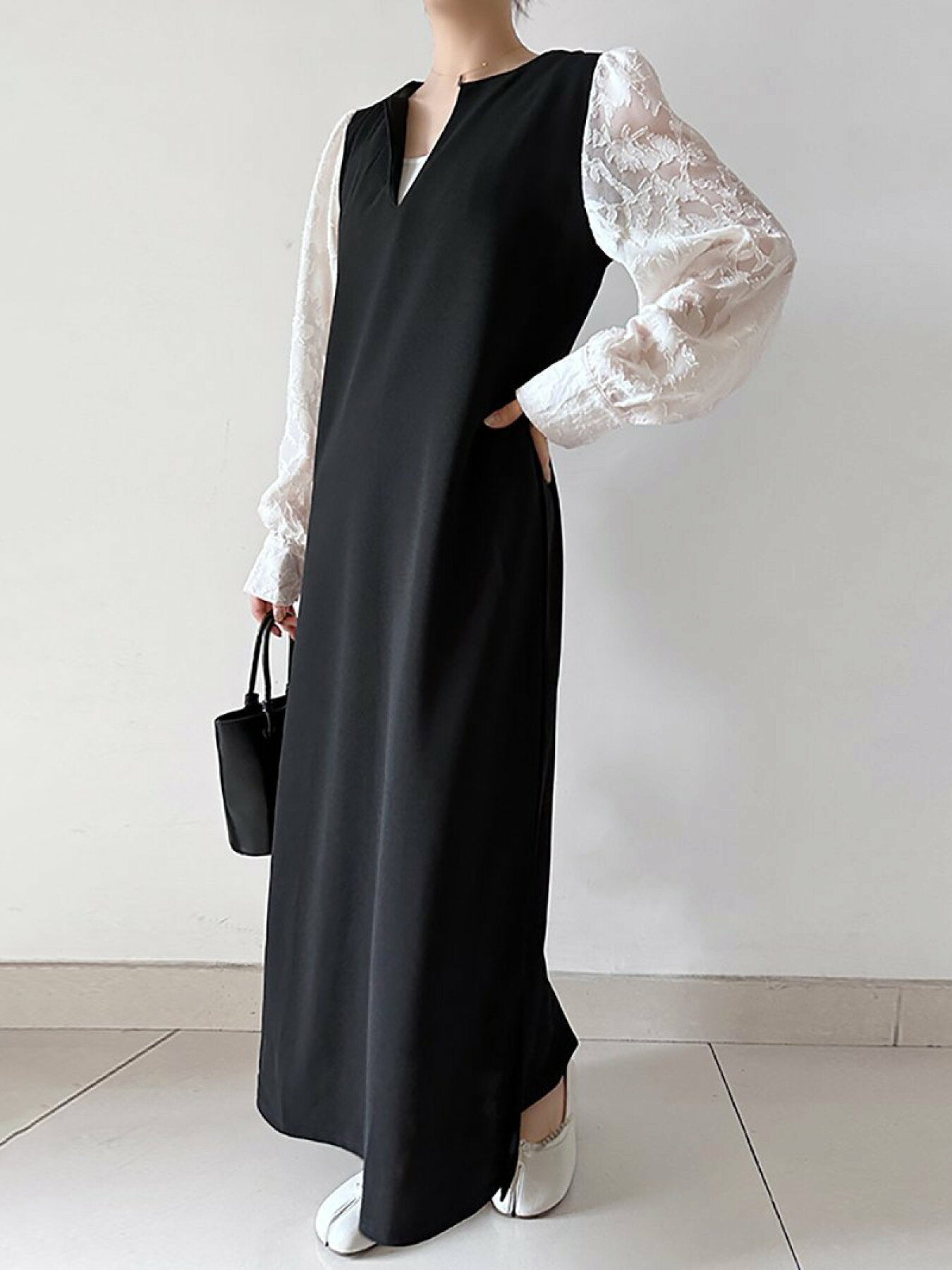 Two-way front and back jacquard voluminous sleeve long dress in three colors