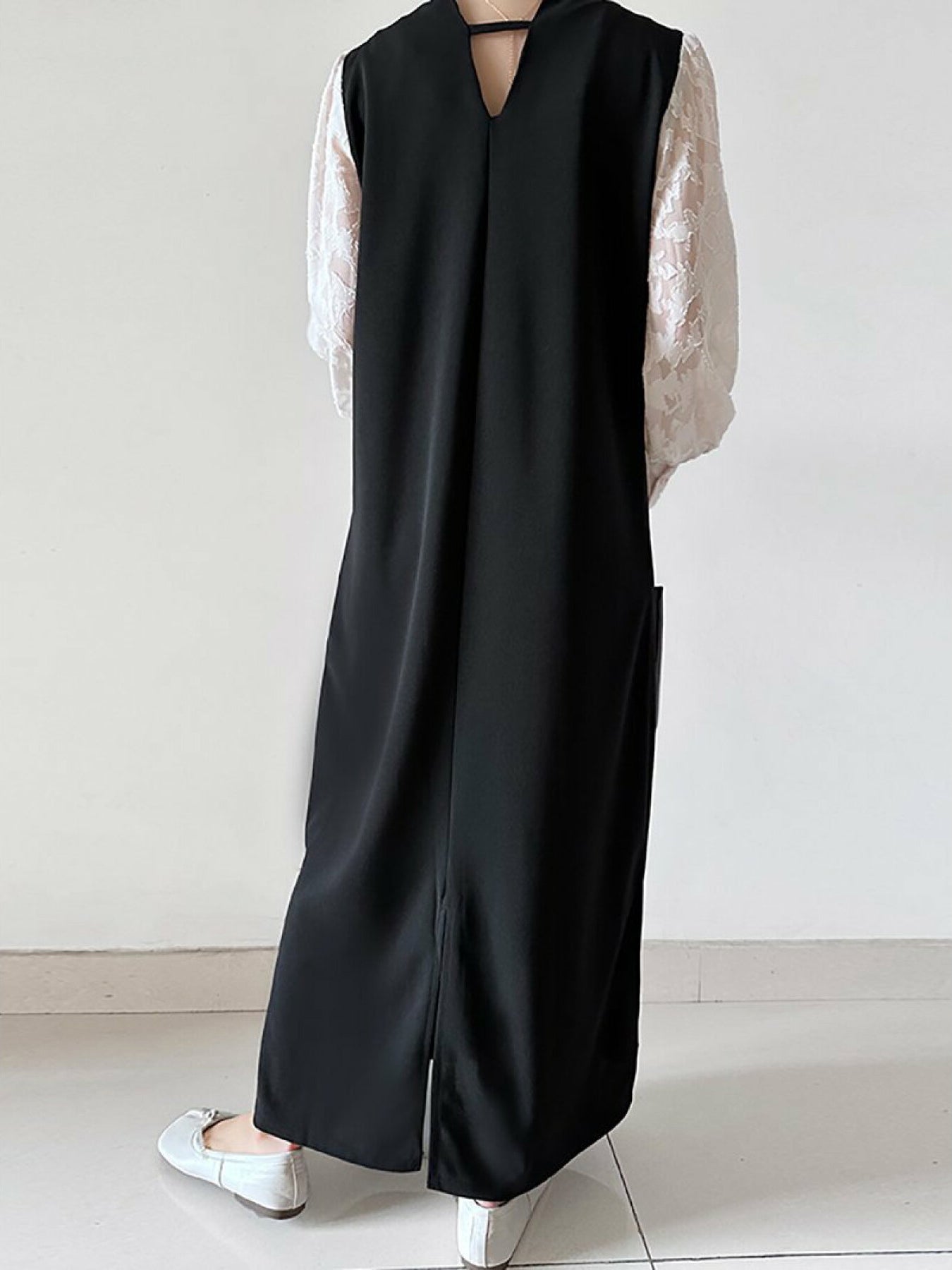 Introducing a dress that can be worn in two ways, front and back , and can be used for special occasions, with different material sleeves as the highlight.