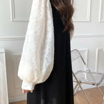 We paid particular attention to the texture and volume of the sleeves, and adjusted them so that they have a voluminous, fluffy feel when worn.