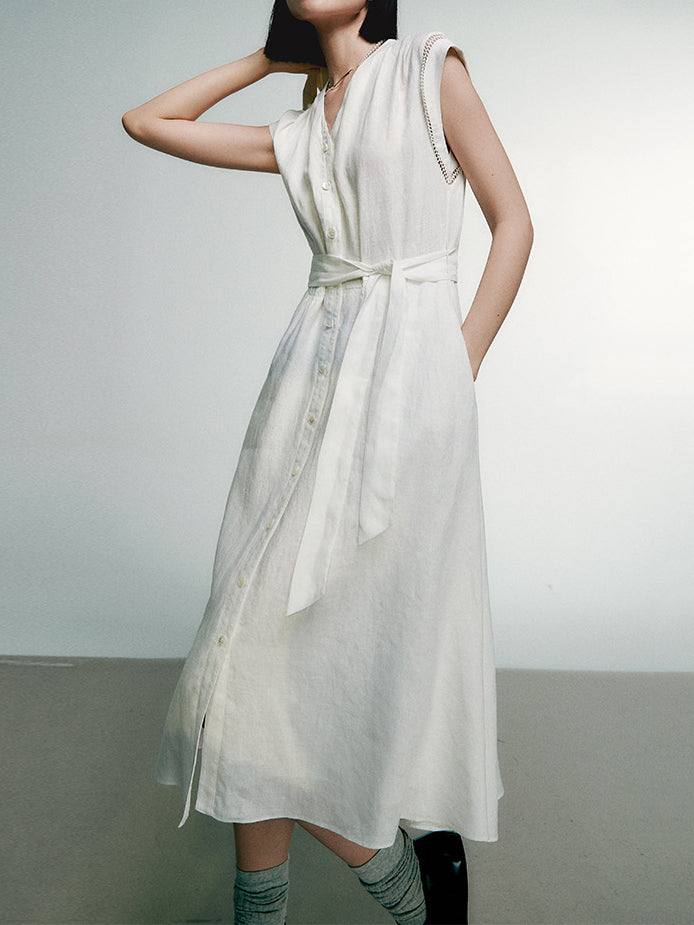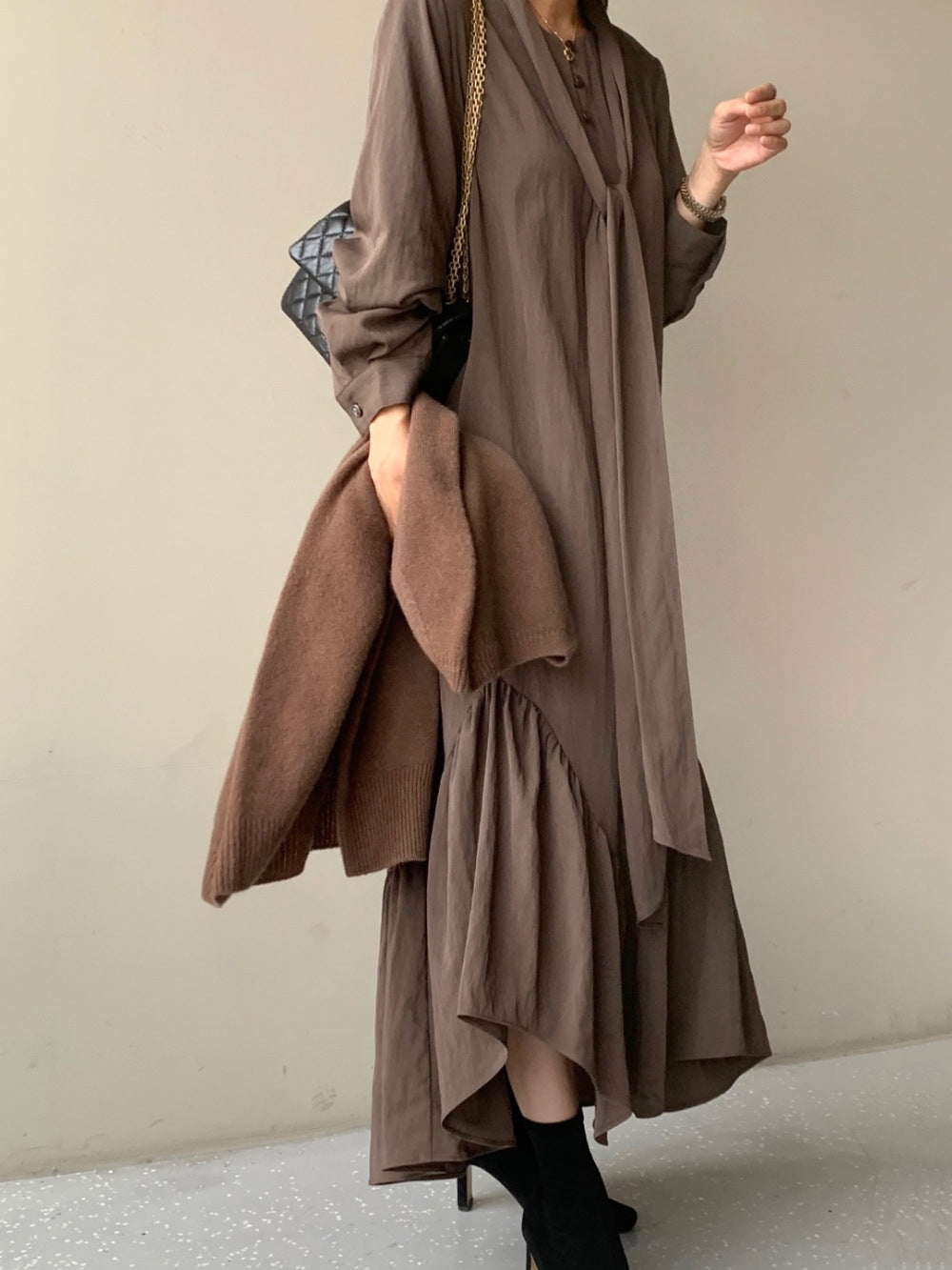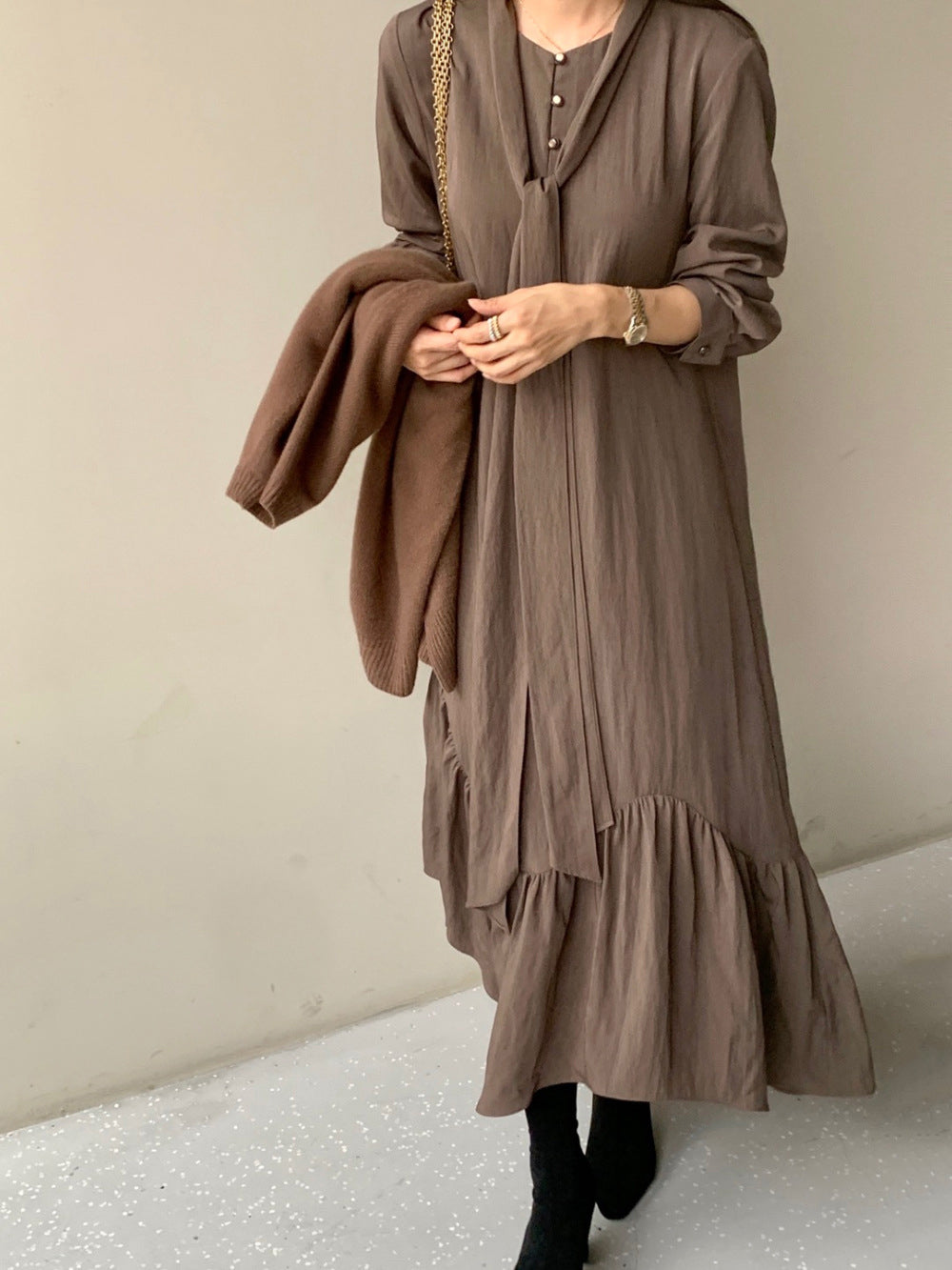 Bowtie collar sleeveless blouse + wide pants SET 2 colors