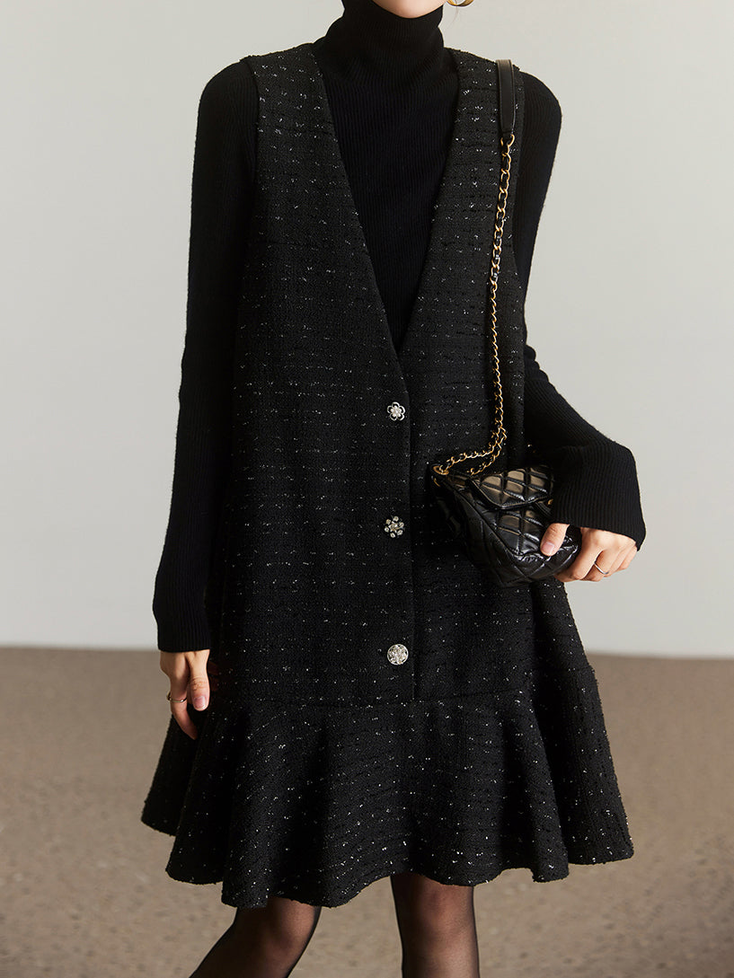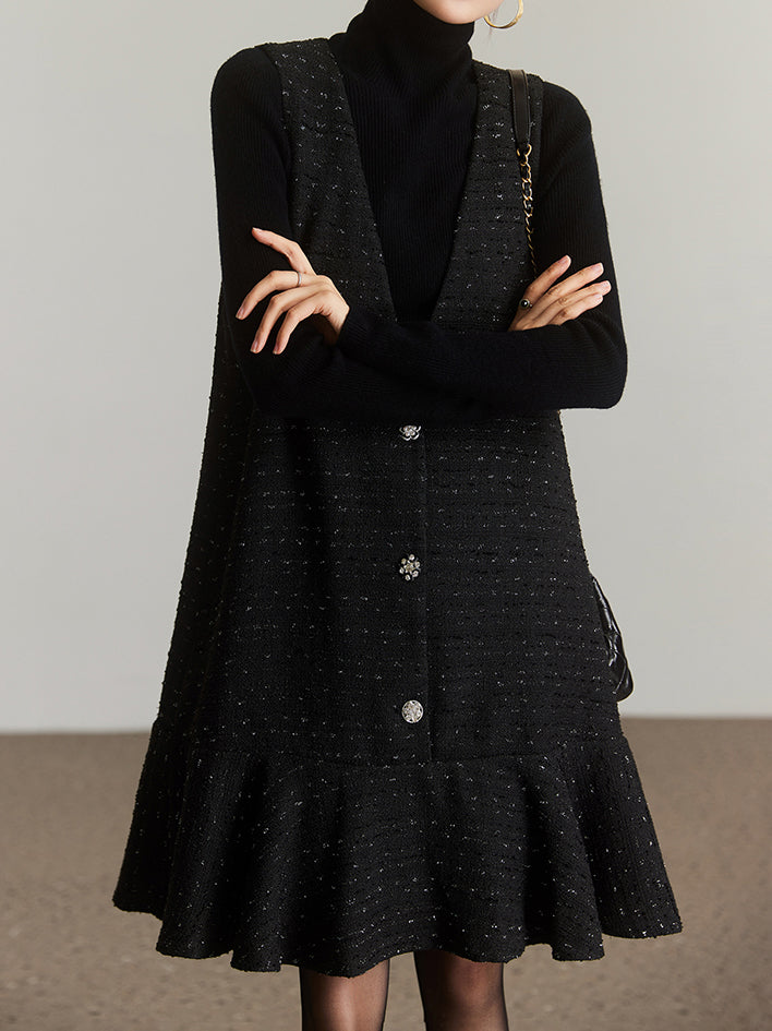 Floral Denim Cami Dress + Crochet Knit Bolero (Can be worn as a set)