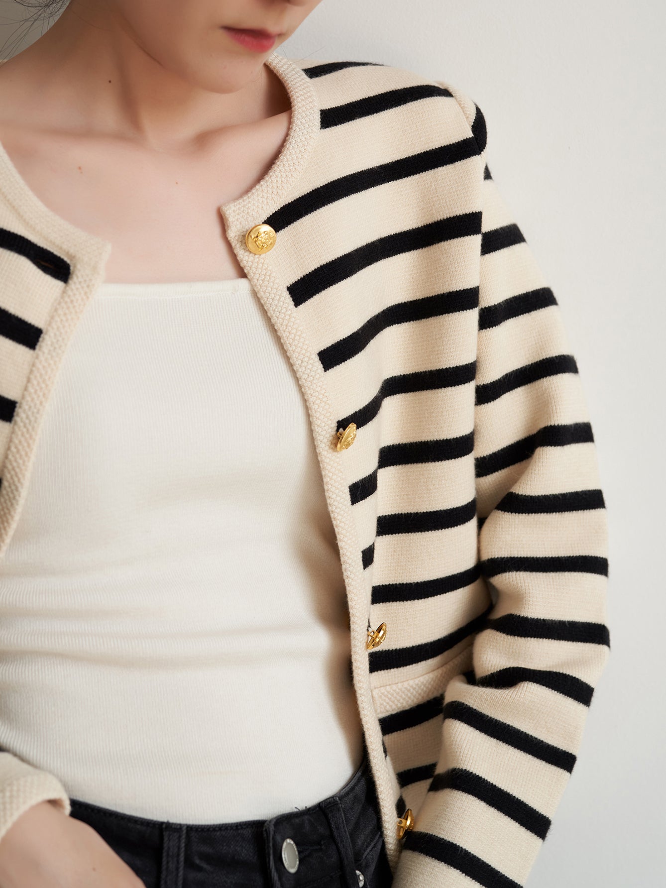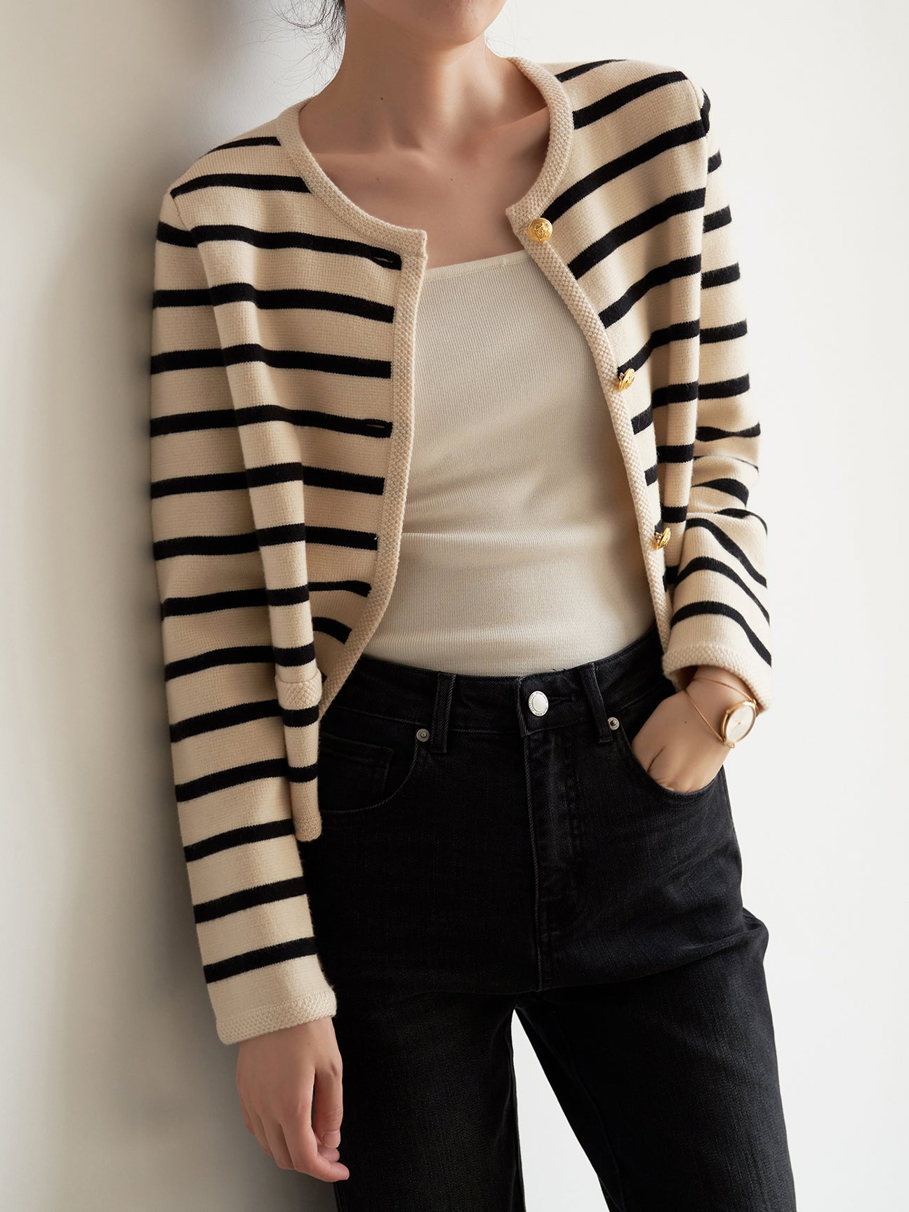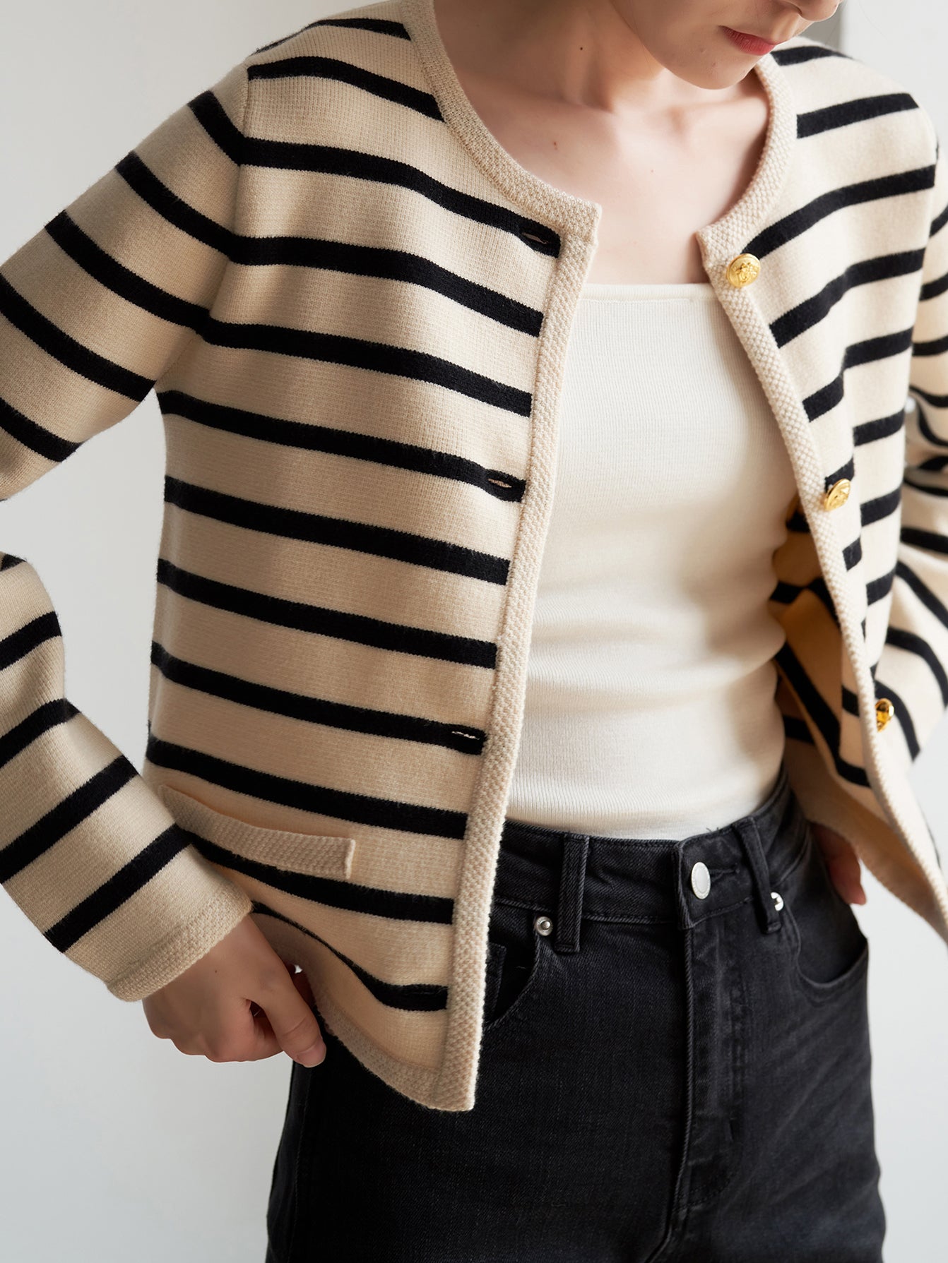 [ Border cardigan with jewel buttons on the front for a gorgeous look ]