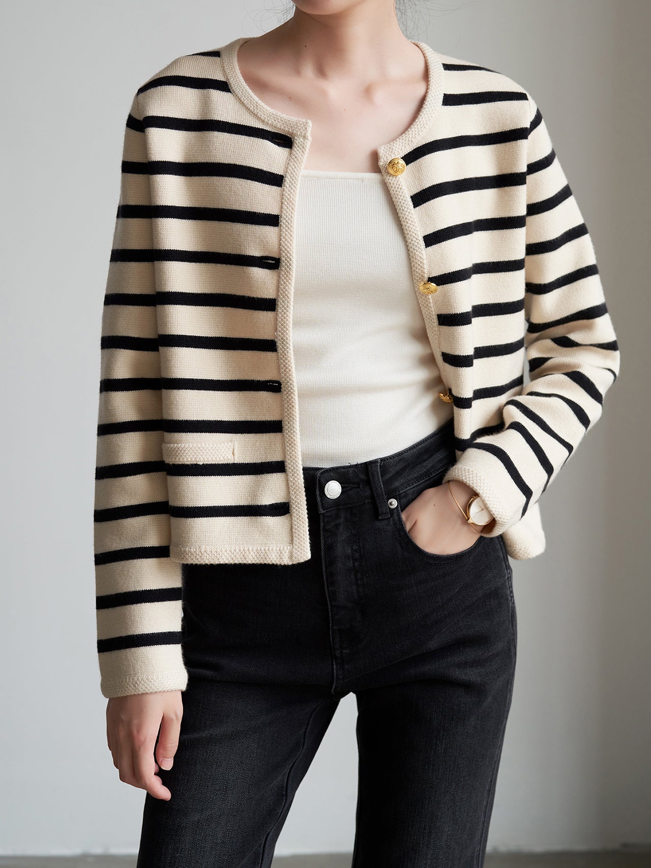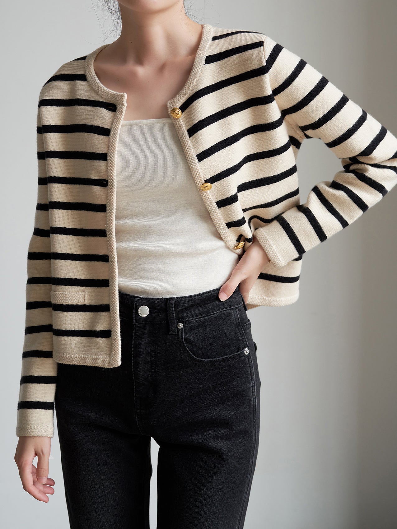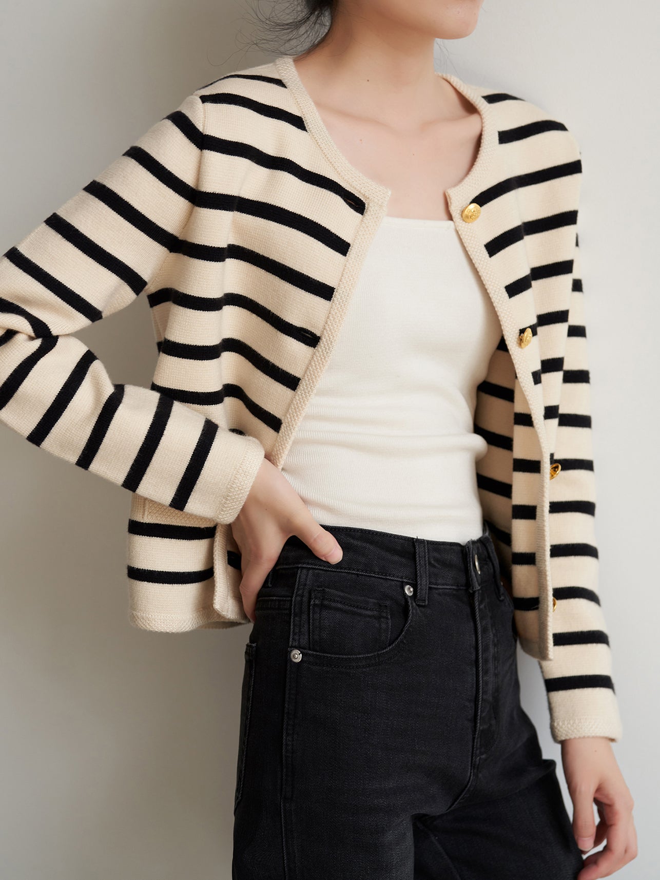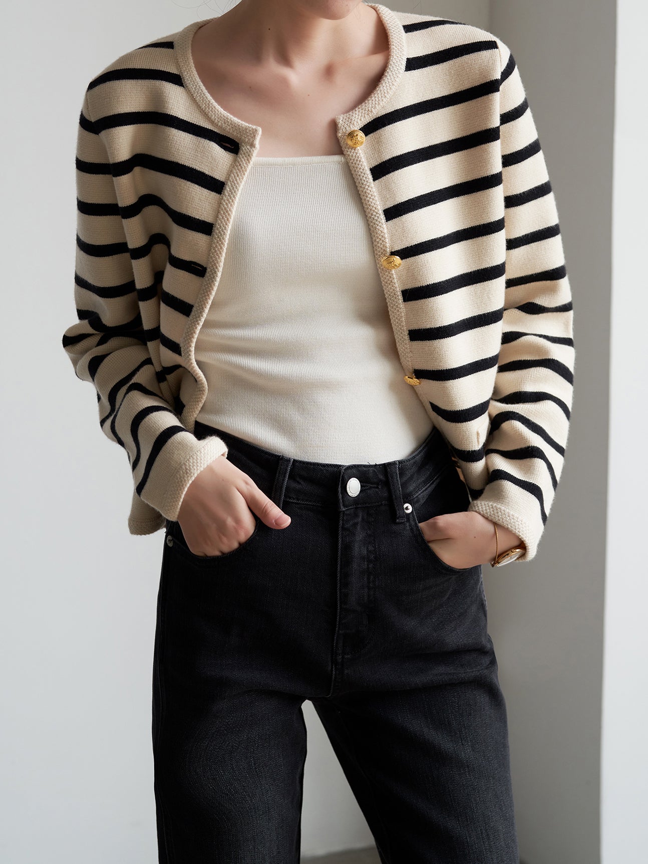 [ Border cardigan with jewel buttons on the front for a gorgeous look ]
