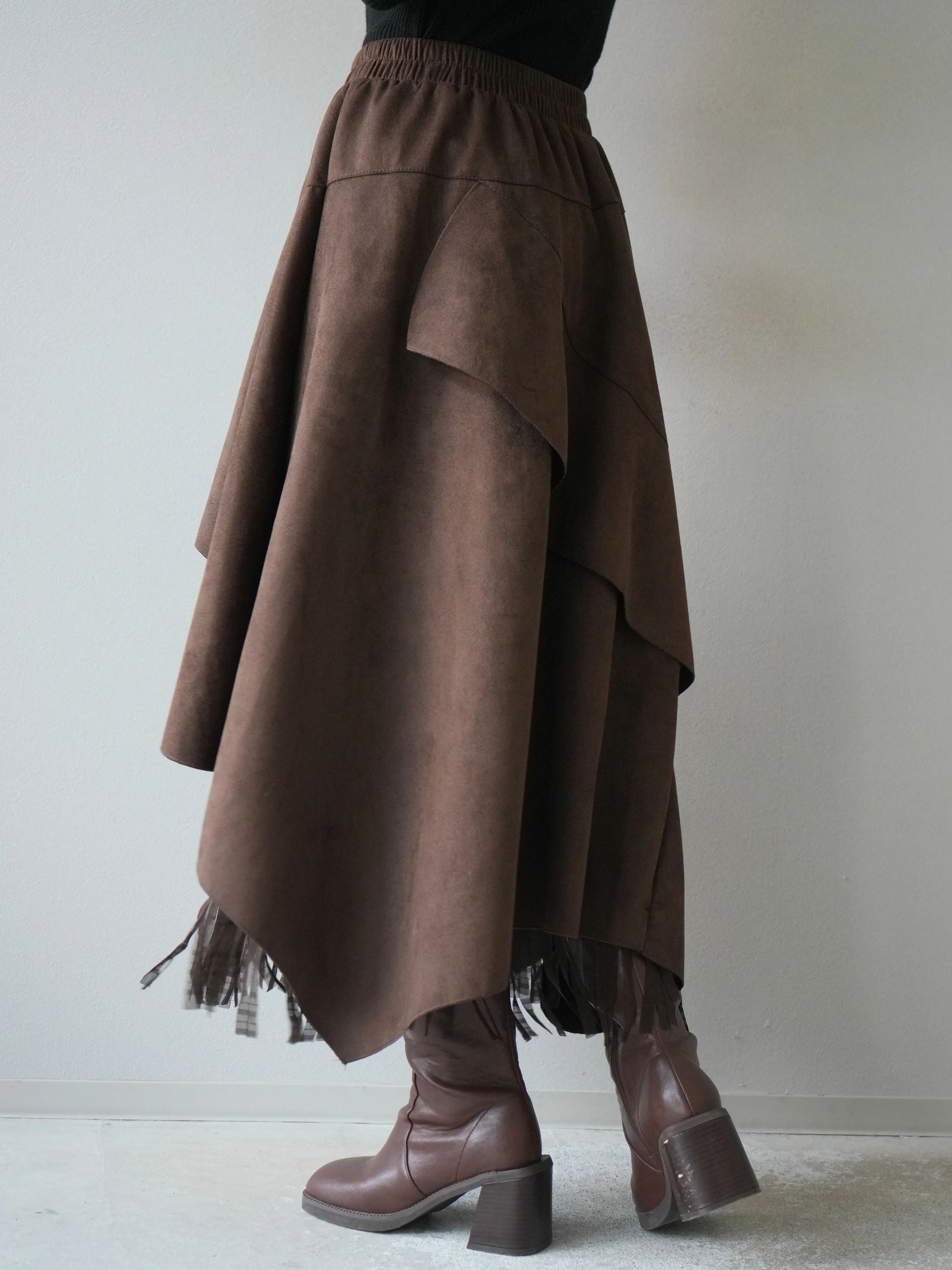 Asymmetrical suede skirt in two colors