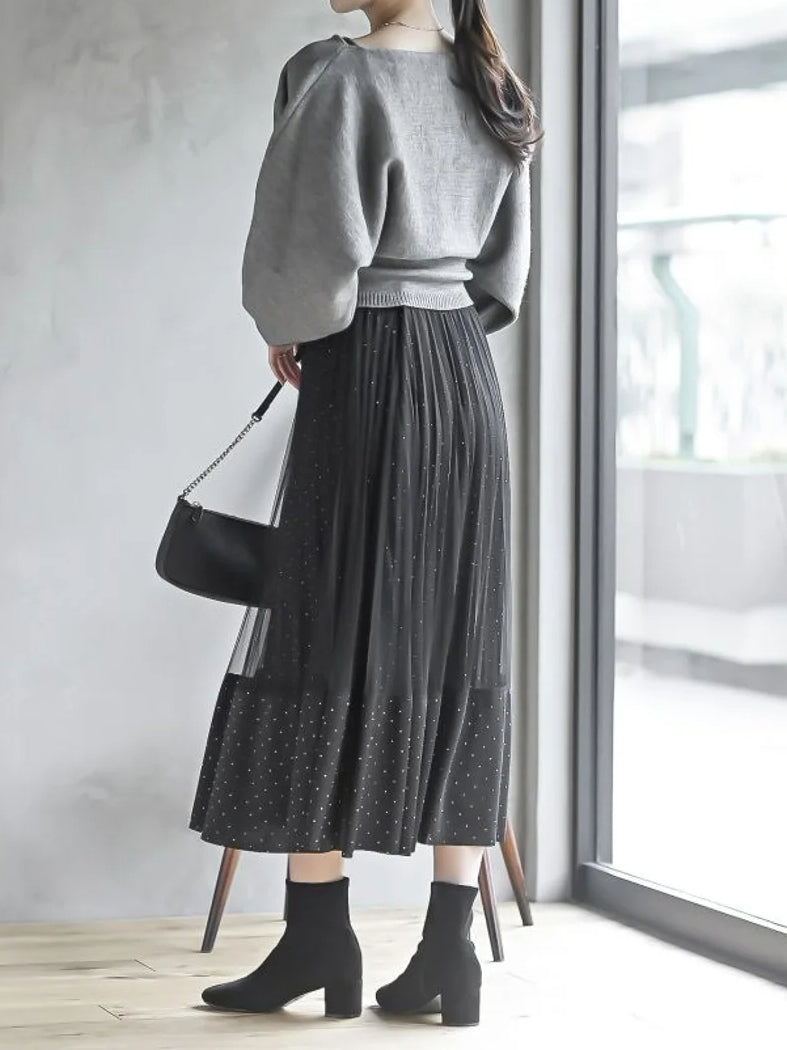☆Both are pleated, so they don't flare out too much and create an elegant silhouette.