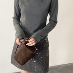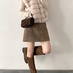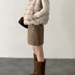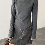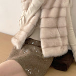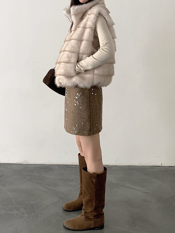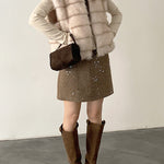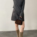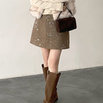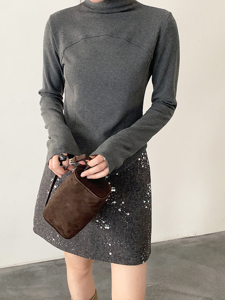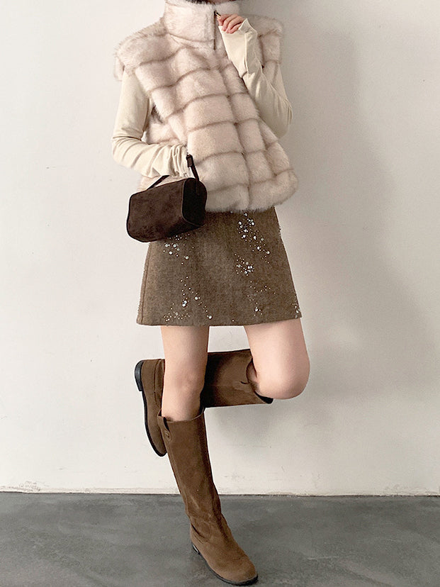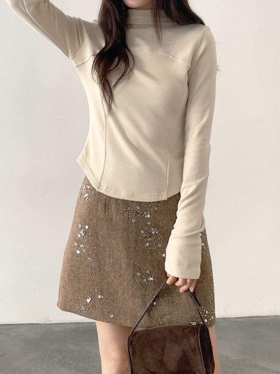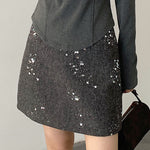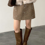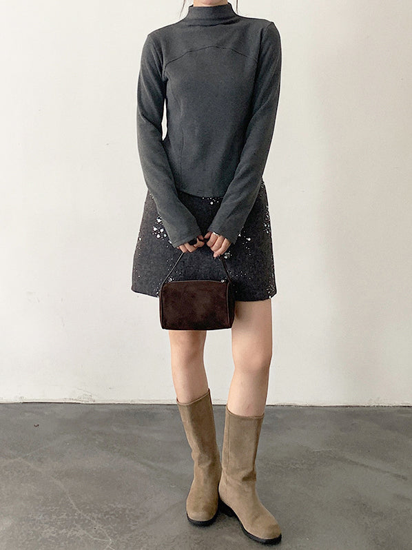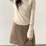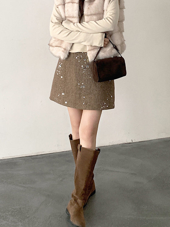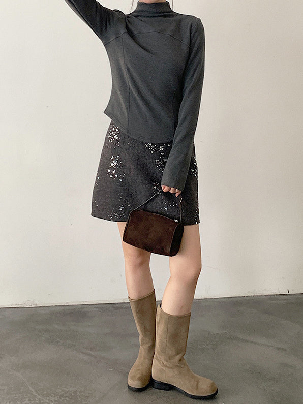 This expressive miniskirt is decorated with sequins and changes its shine depending on the angle.