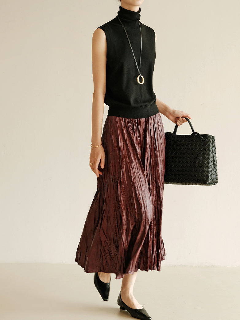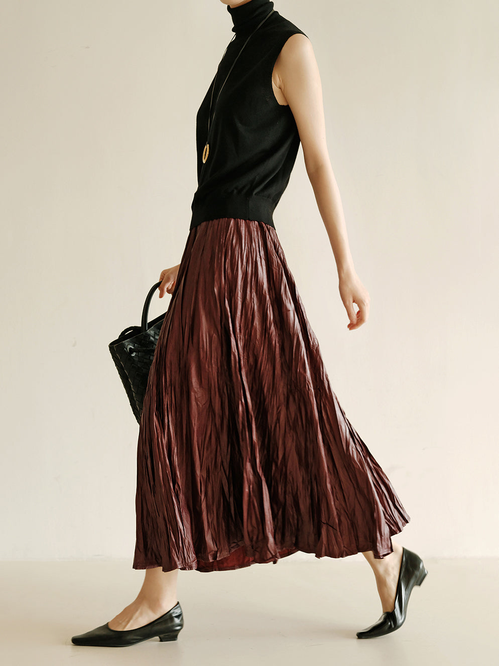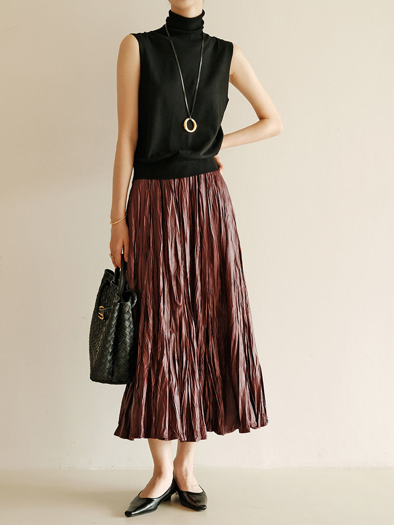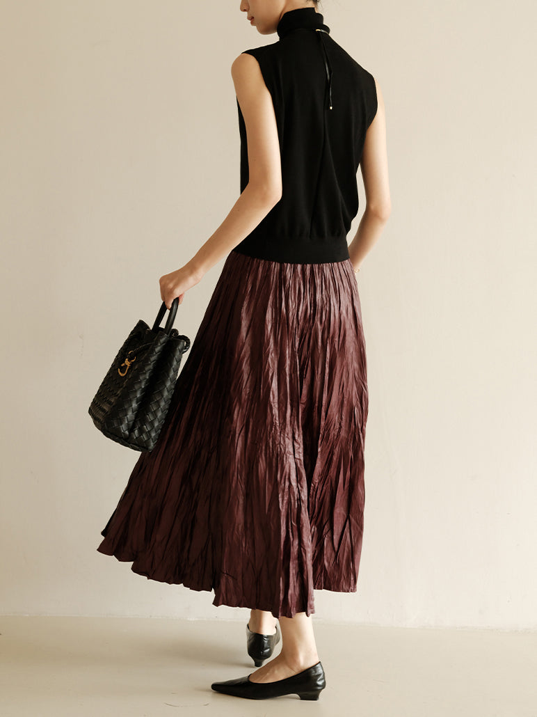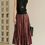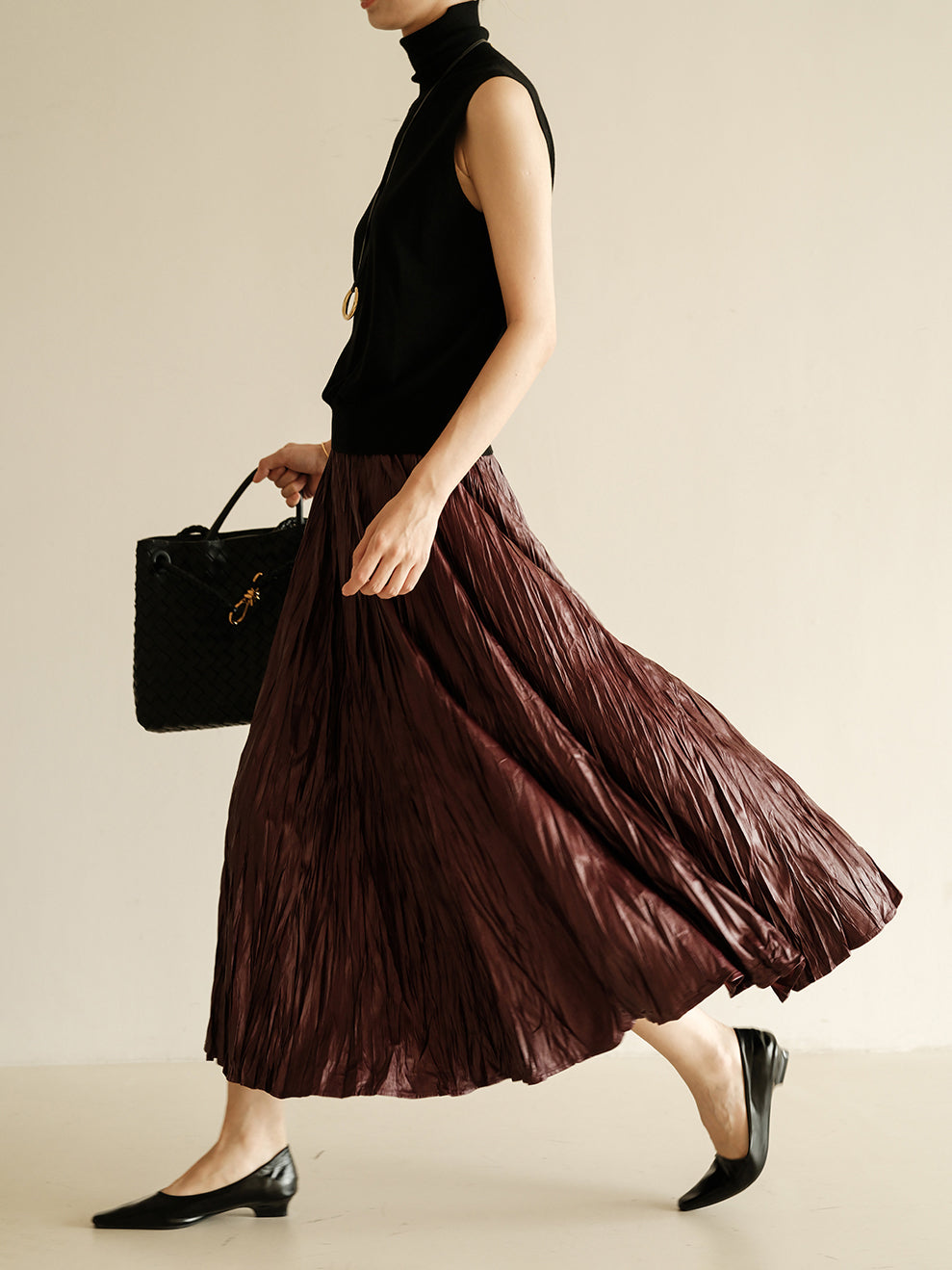A washer pleated skirt with just the right amount of sheen for a beautiful look.